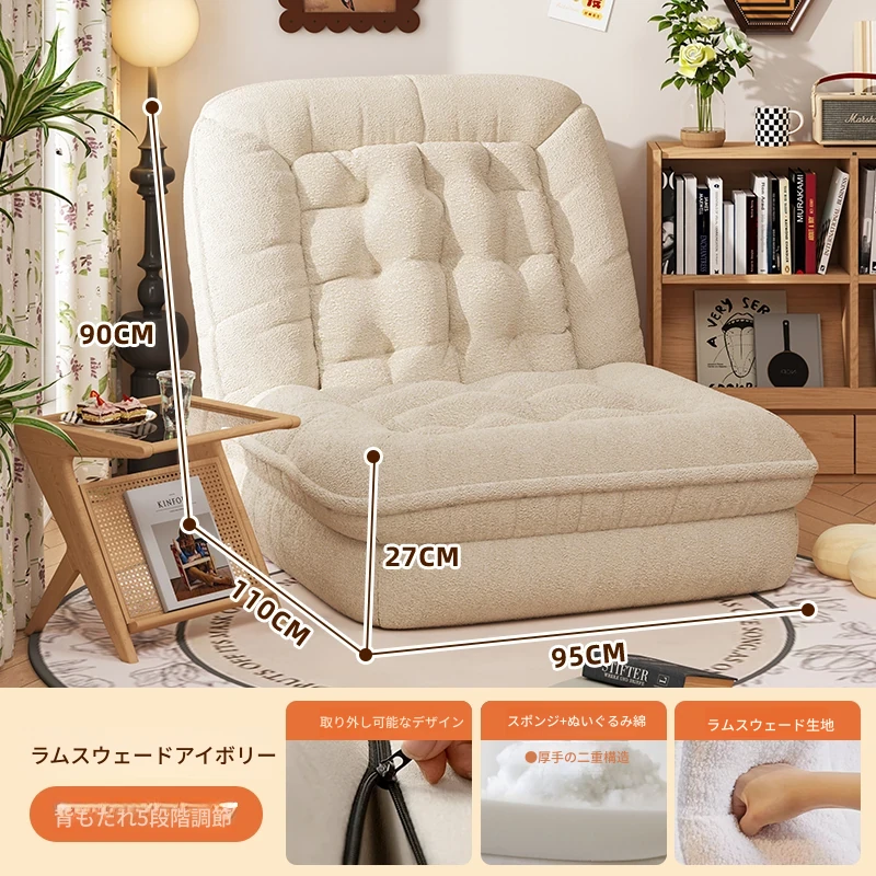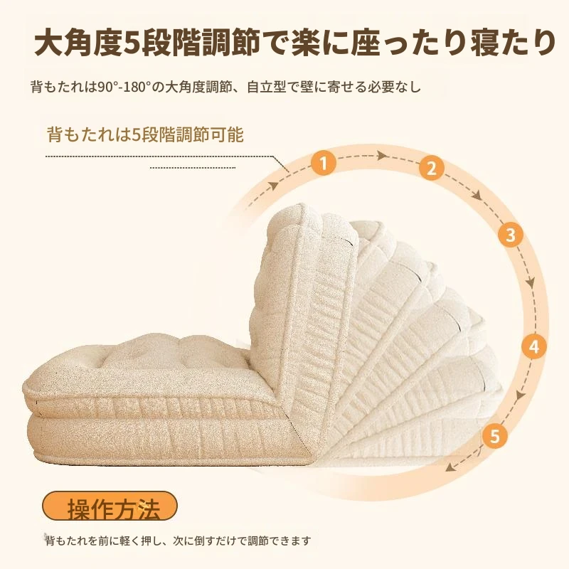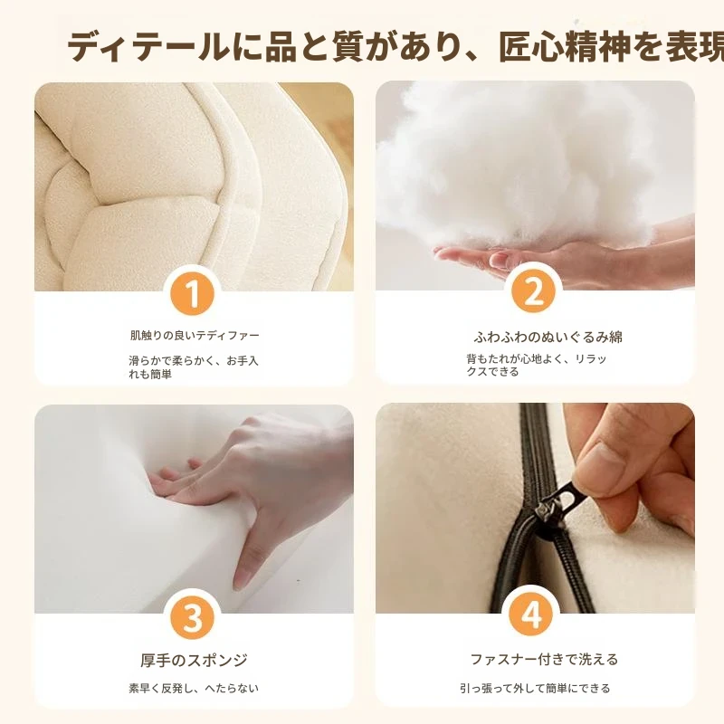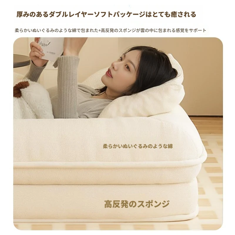 【展開178CM*95CM】肌に優しいラムボア生地-アイボリー【クッション+背もたれ付き】