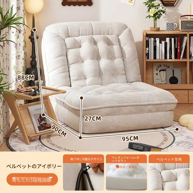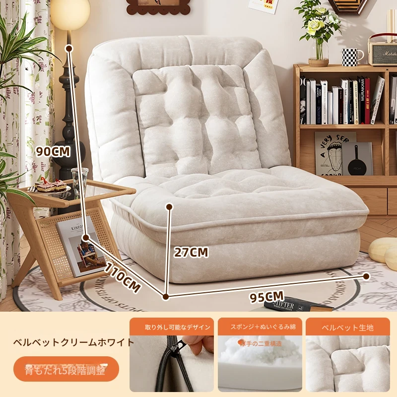 【展開178CM*95CM】肌触りの良いスエード生地-アイボリー【クッション+背もたれ付き】