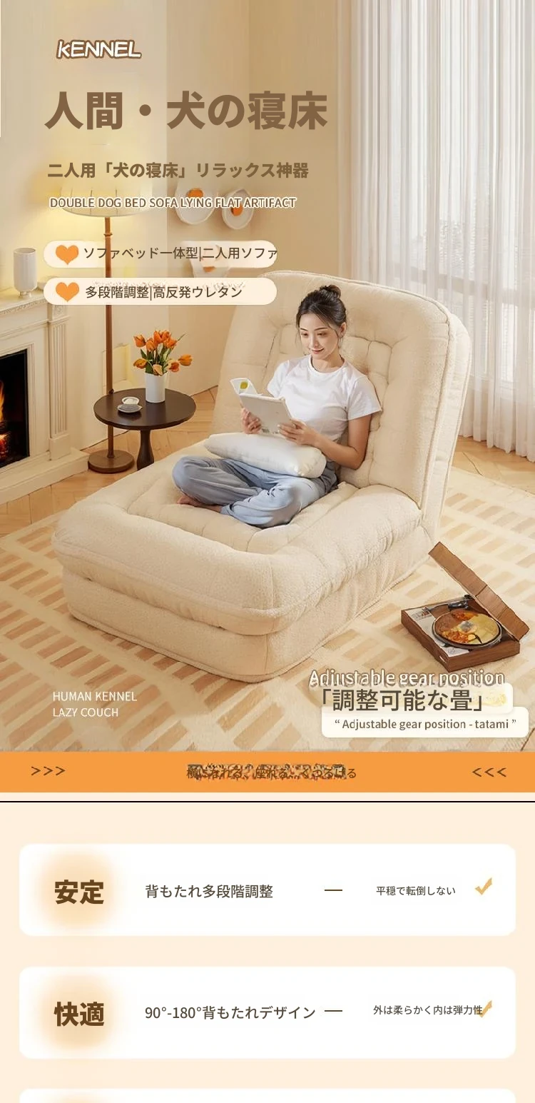 【香港送料無料】人間用犬用ベッド!リラックスできるソファ、寝転びながらくつろげる!折りたたみ式、シングルサイズでバルコニーや寝室にもぴったり!