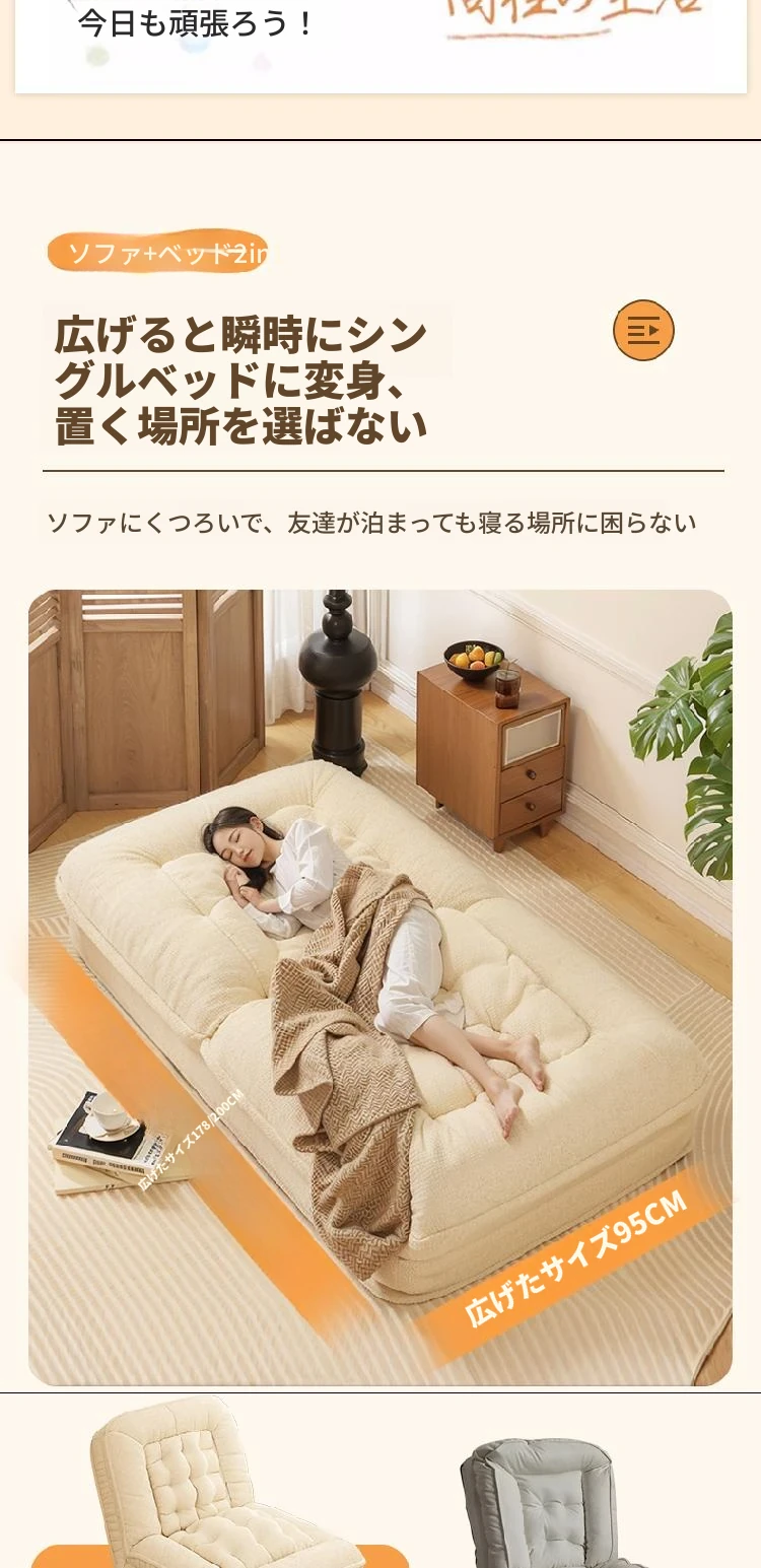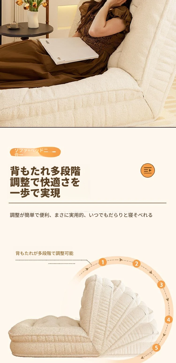 80%購入【展開200CM*95CM】肌に優しいラムボア生地-アイボリー【クッション+背もたれ付き】