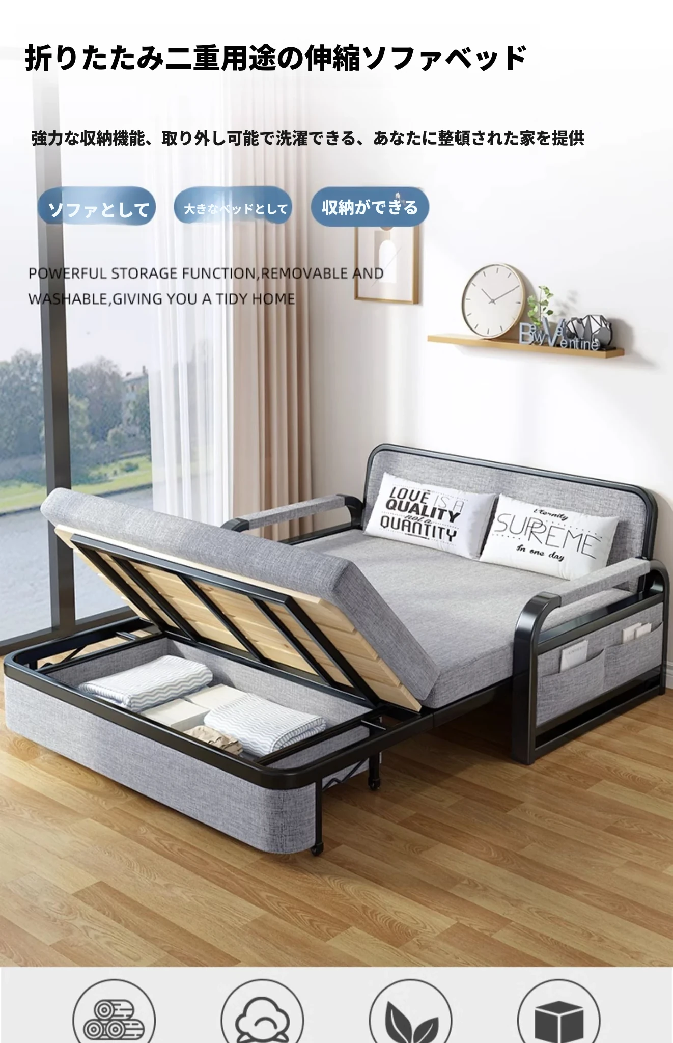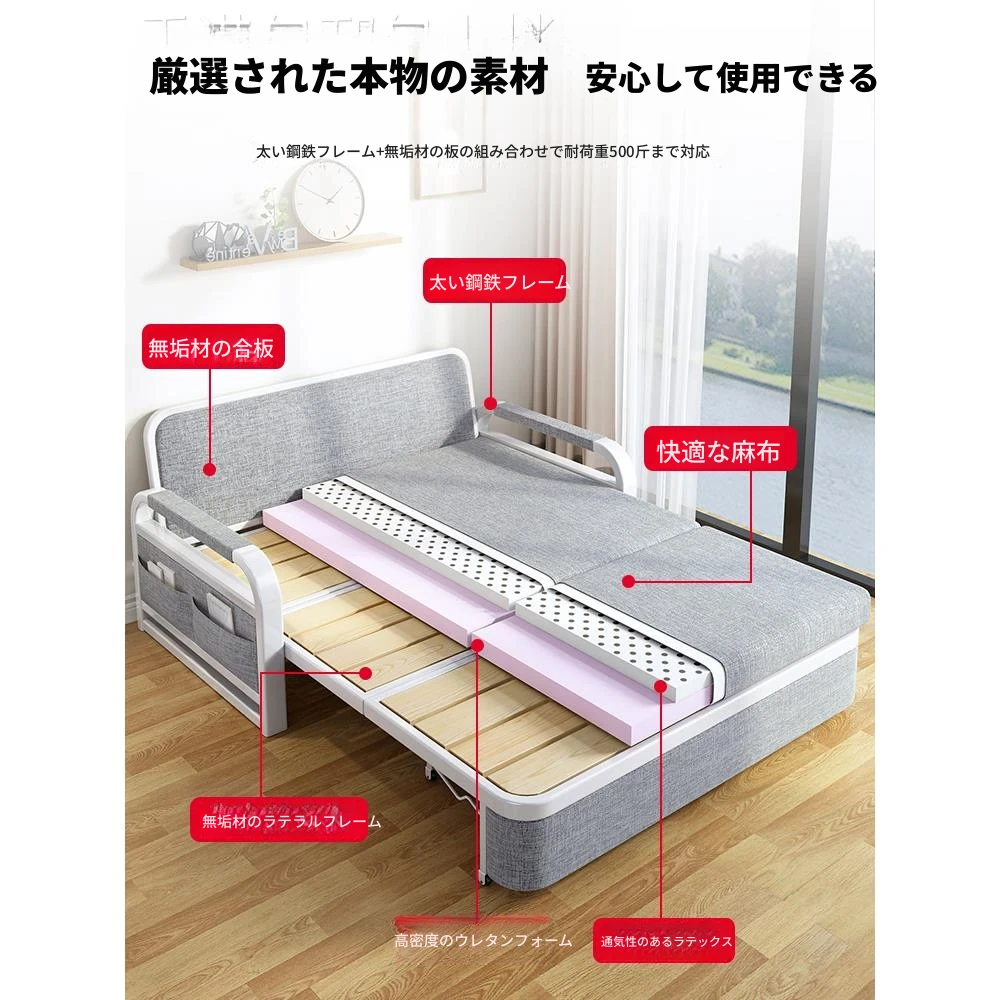 【香港送料無料】2022年版 ソファベッド 2WAY ダブルサイズ 小型住宅向け 人気デザイン バルコニーにぴったりの多機能伸縮ベッド!快適な空間を実現!