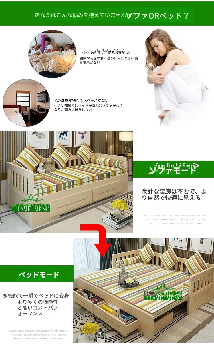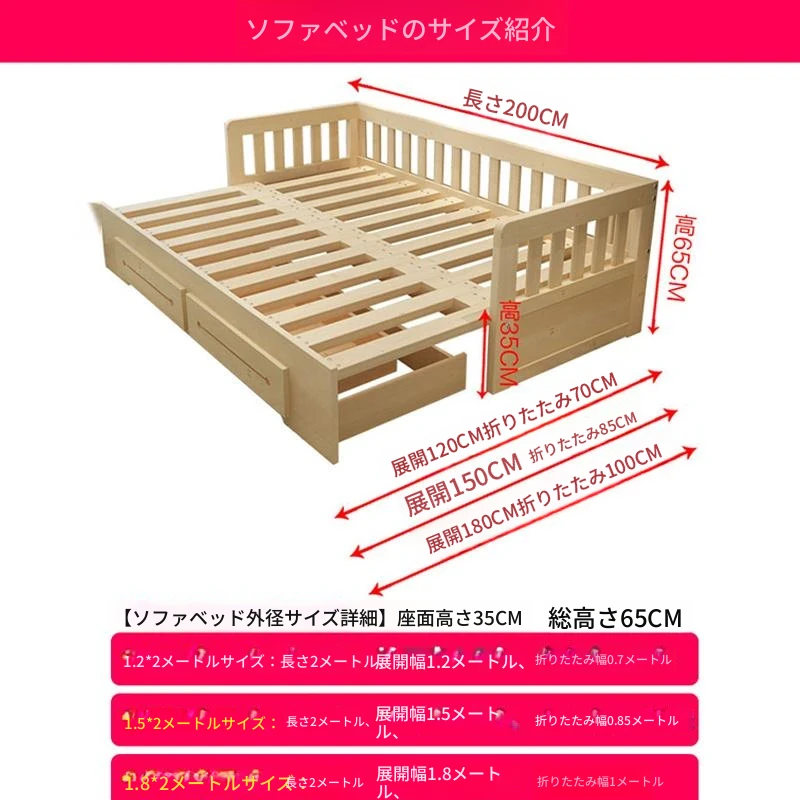 【香港送料無料】折りたたみ式の実木ソファベッド!小型スペースにもぴったりな多機能1.5m/1.8mリビング用ソファ♪ 快適な眠りとくつろぎを実現!