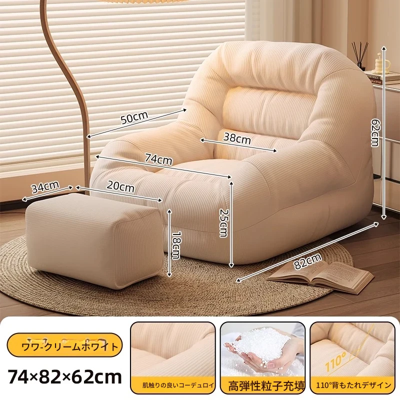 二人用❤クリームホワイト【肌触りの良いコーデュロイ】長時間座ってもへたらない