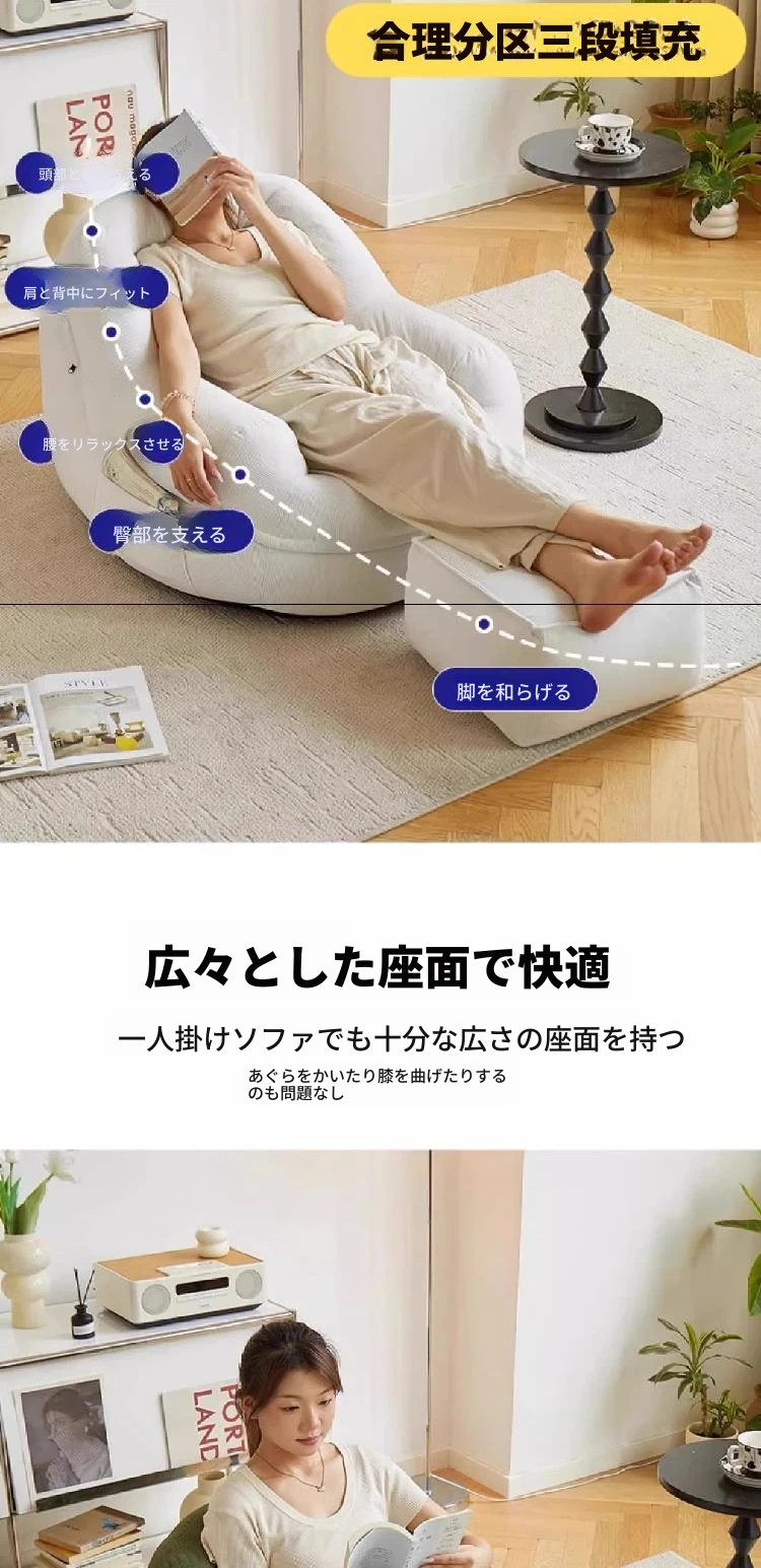 【香港送料無料】リラックスソファ - 寝転んでくつろげる!リビングやバルコニーに最適な快適なラウンジチェア。お昼寝や読書にぴったりな、あなたの癒しスペースを提供します!