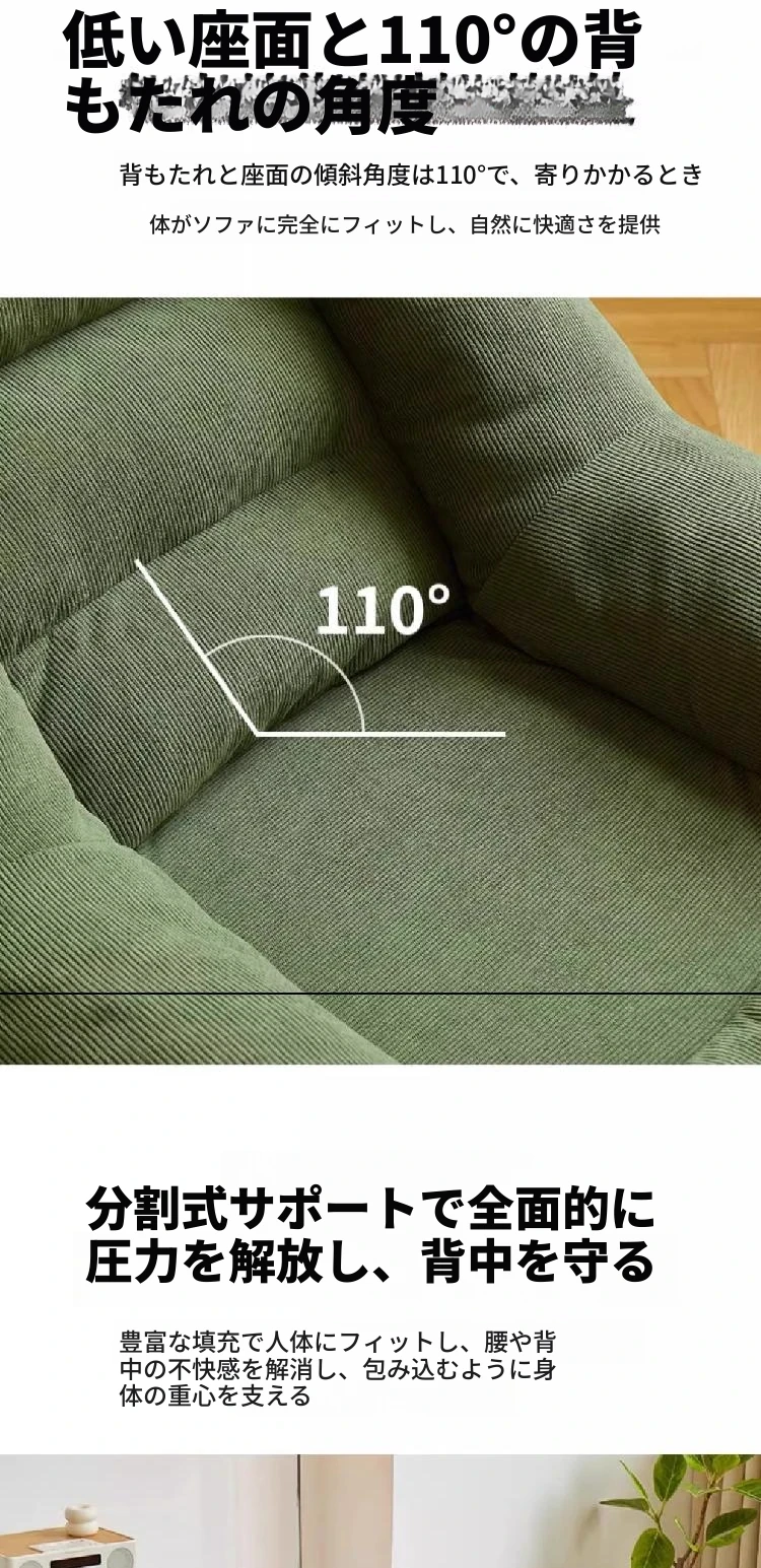 二人用❤オリーブグリーン【肌触りの良いコーデュロイ】長時間座ってもへたらない