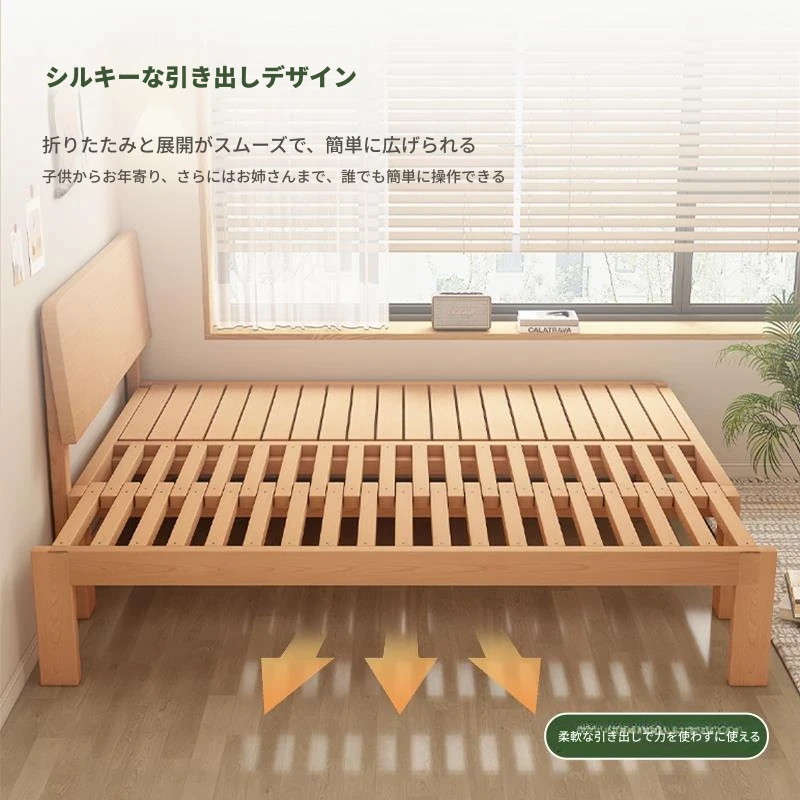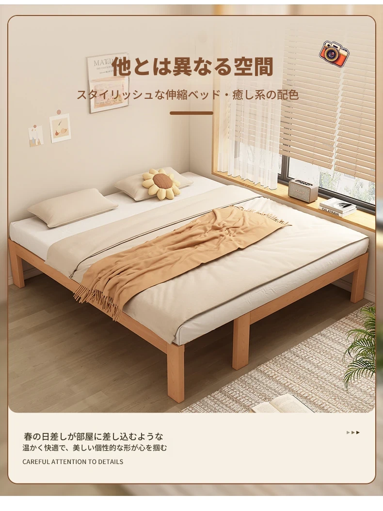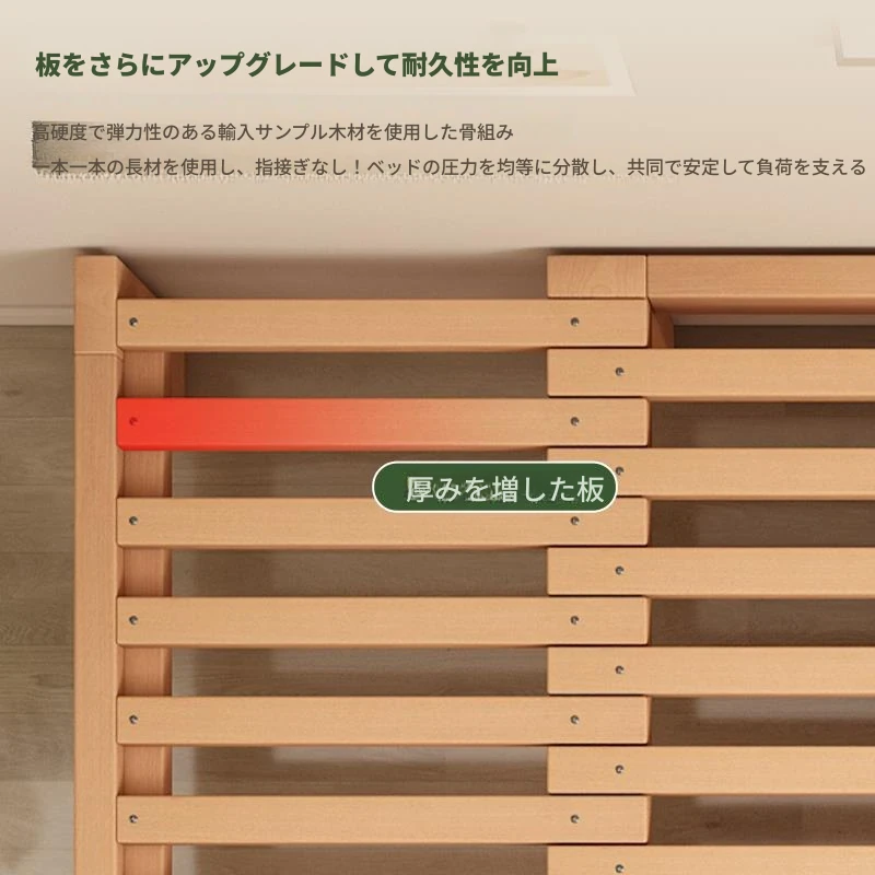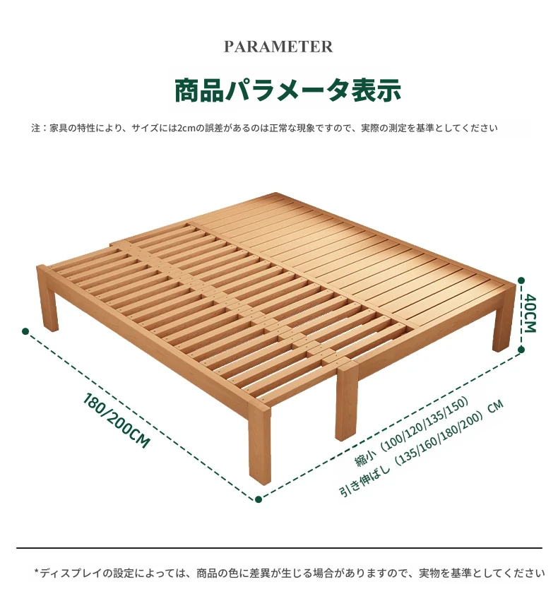 全ビーチ材 長さ200 幅(120-160) 高さ40+マットレス (取り付け込み)