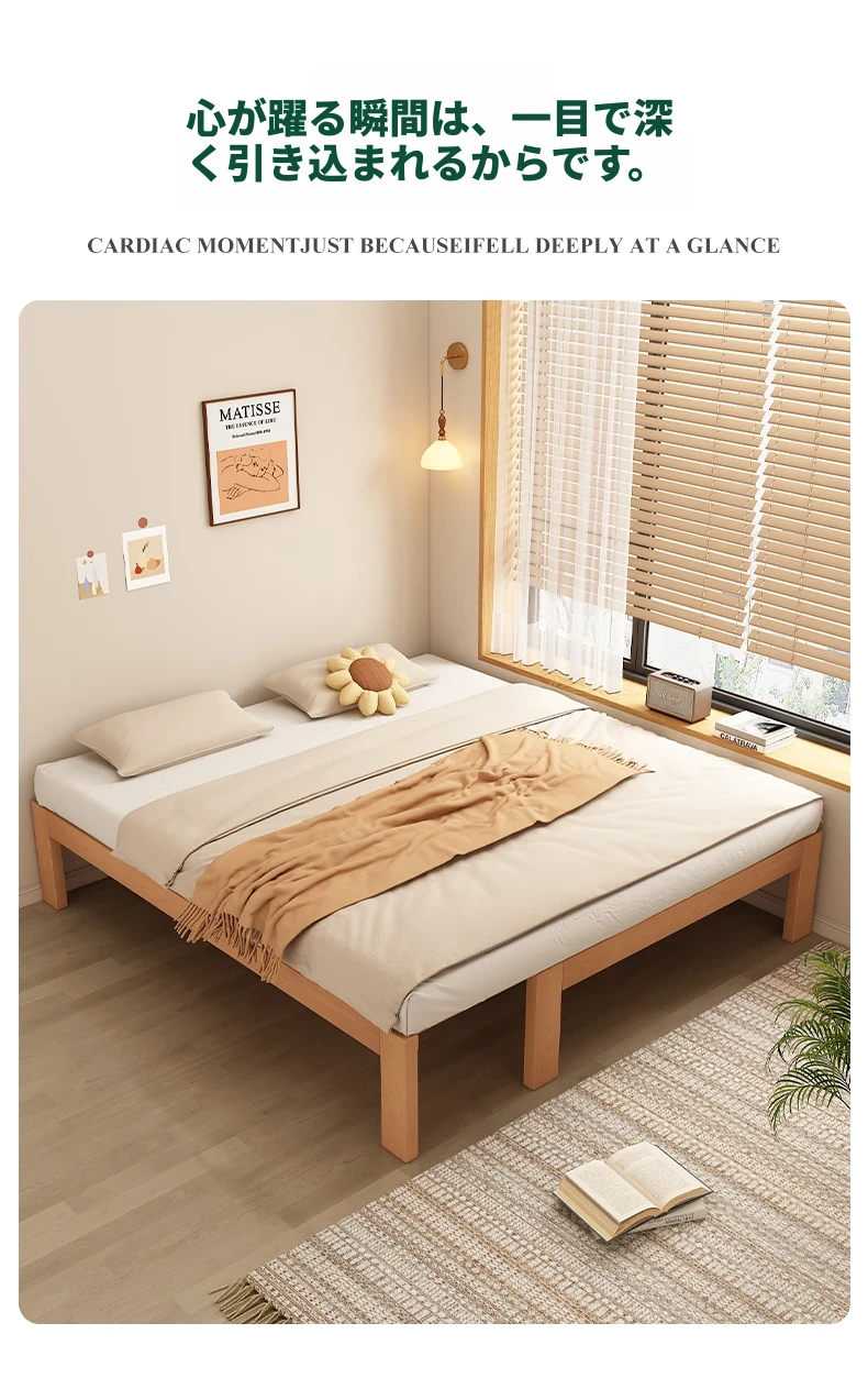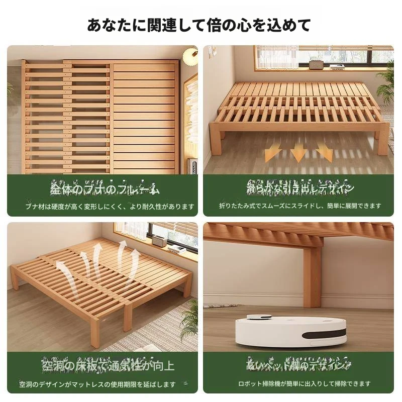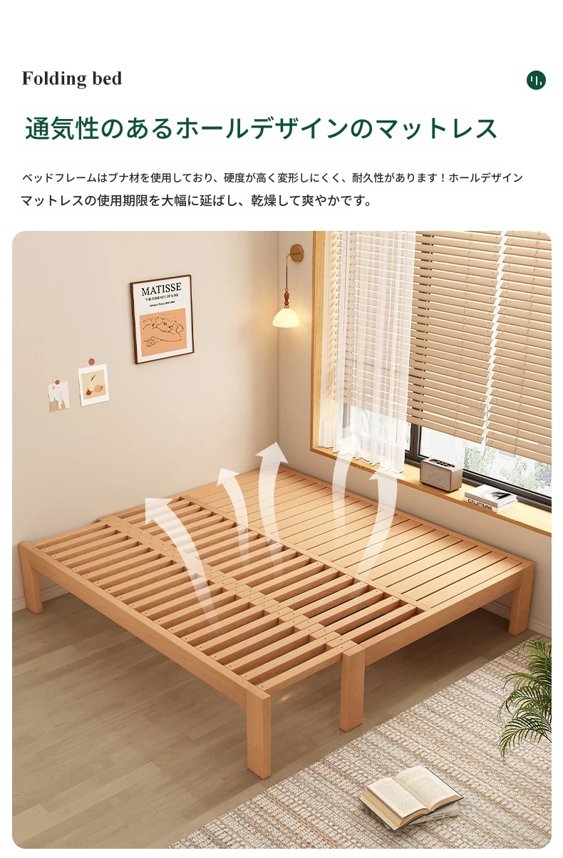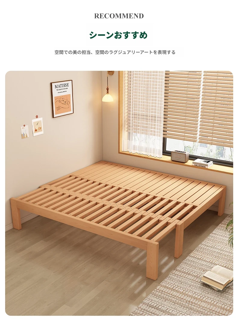全ビーチ材 長さ200 幅(120-160) 高さ40+マットレス (取り付け込み)