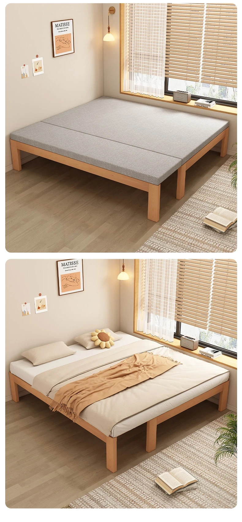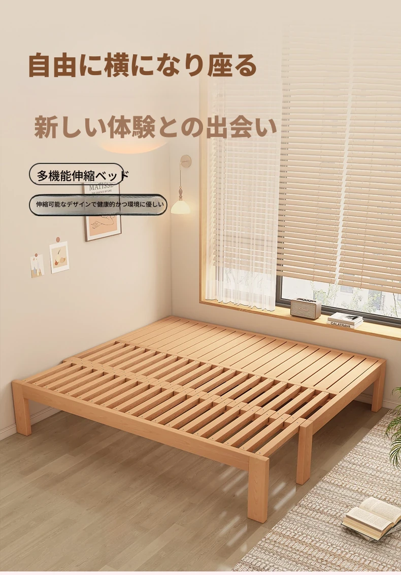【香港送料無料】全ての榉木使用!伸縮可能なソファベッド★折りたたみ式・二用途の小型タタミベッド!高級感溢れる無垢材で、スペースを有効活用!快適な眠りをお届けします。