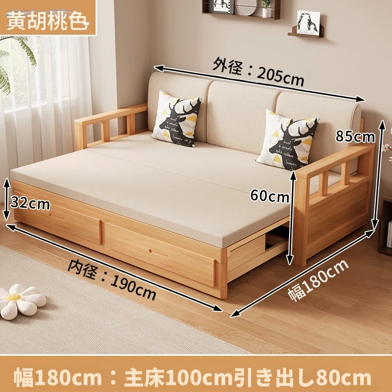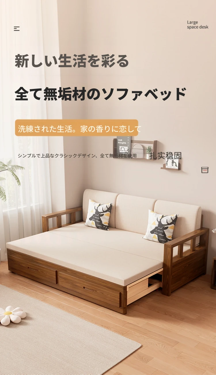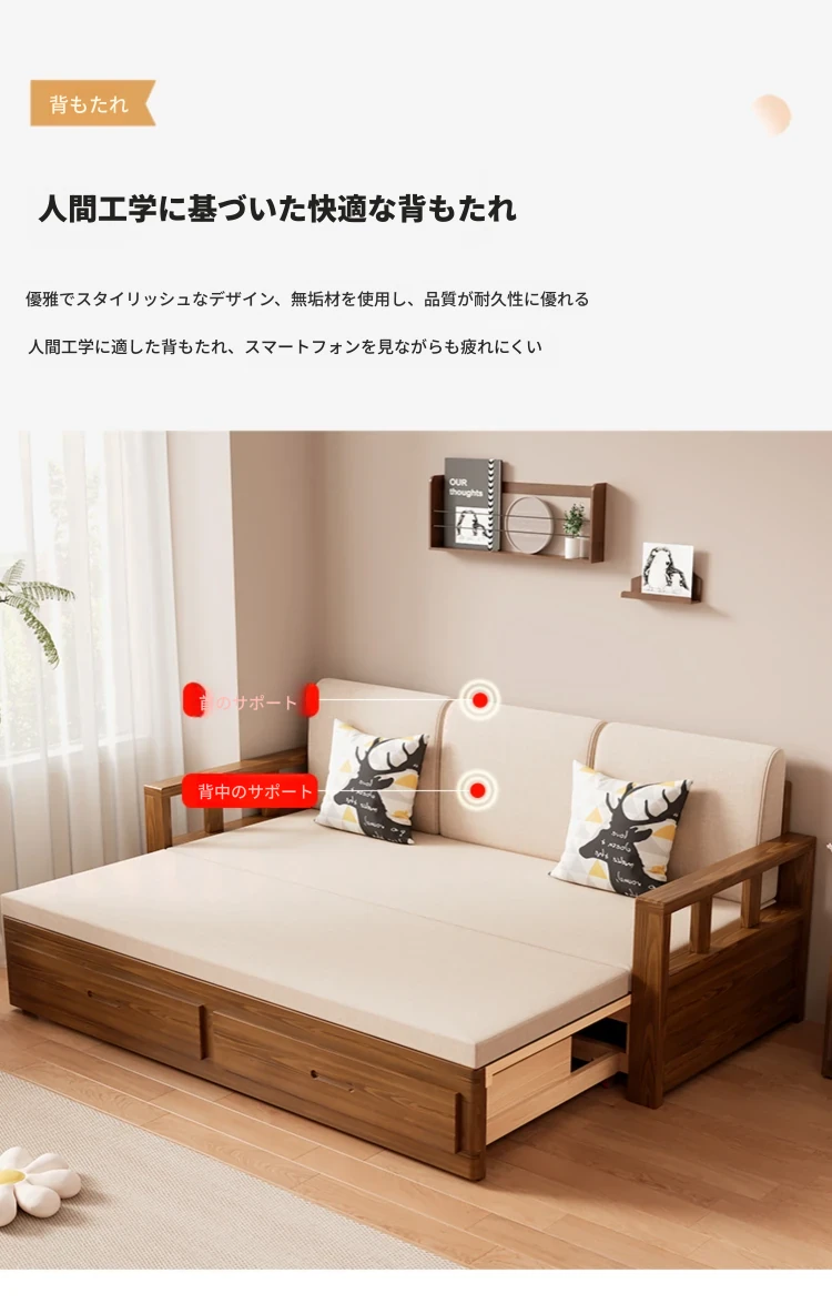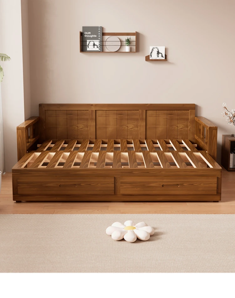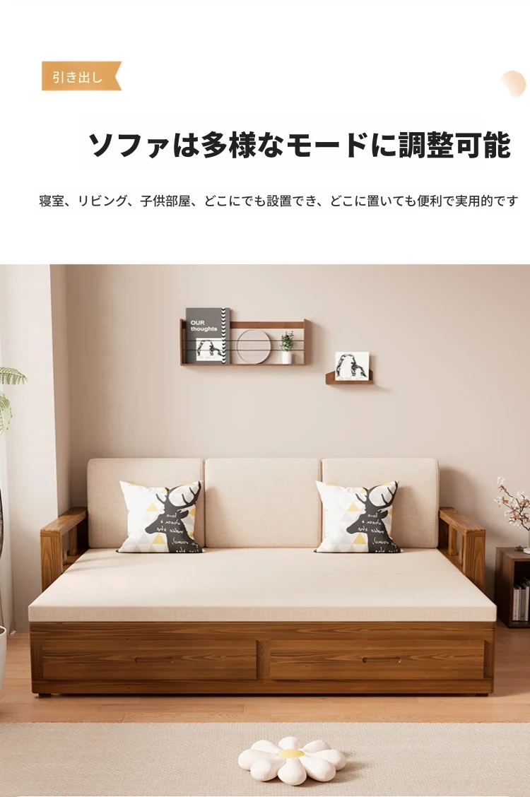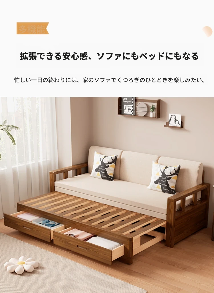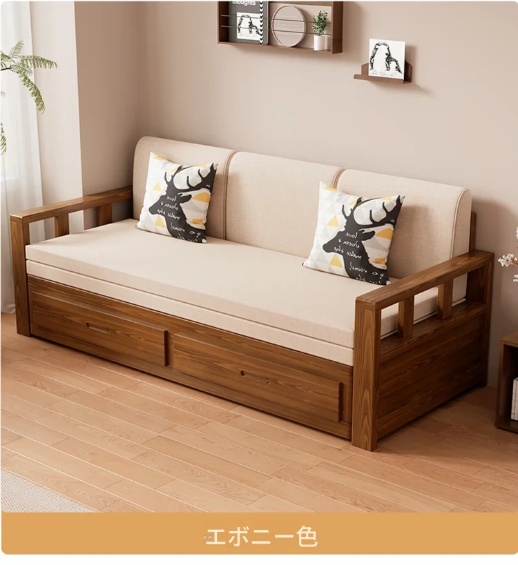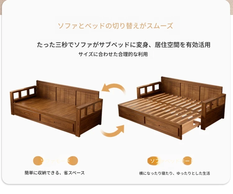 【香港送料無料】多機能折りたたみ式木製ソファベッド - 中式デザインのスリムなリビングルーム用、コンパクトスペースにも最適!