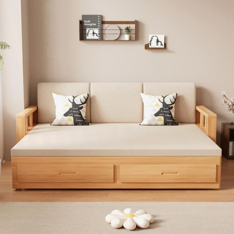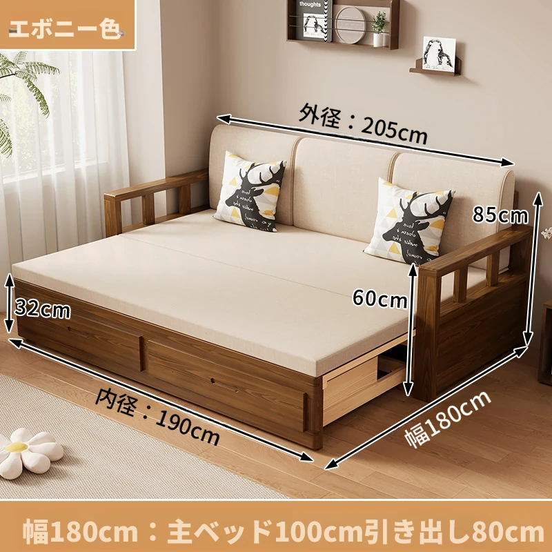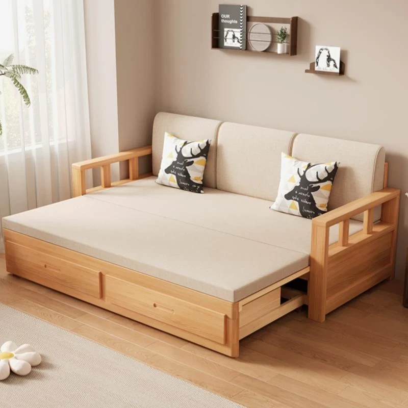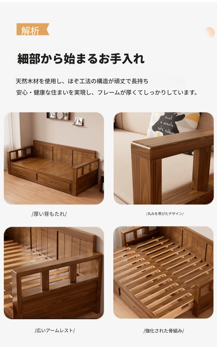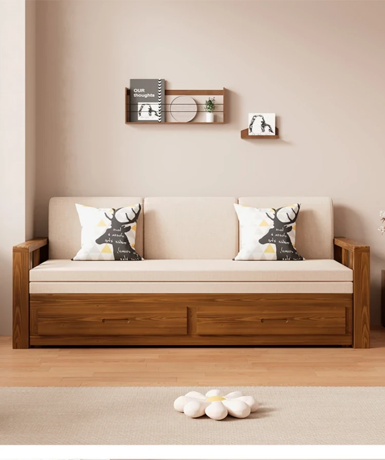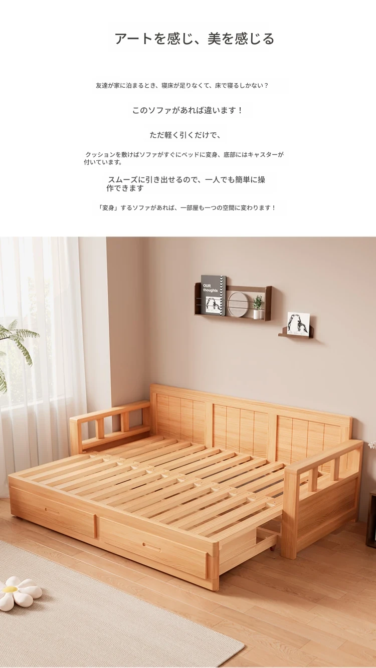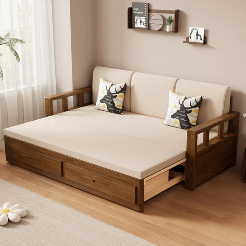 【香港送料無料】多機能折りたたみ式木製ソファベッド - 中式デザインのスリムなリビングルーム用、コンパクトスペースにも最適!