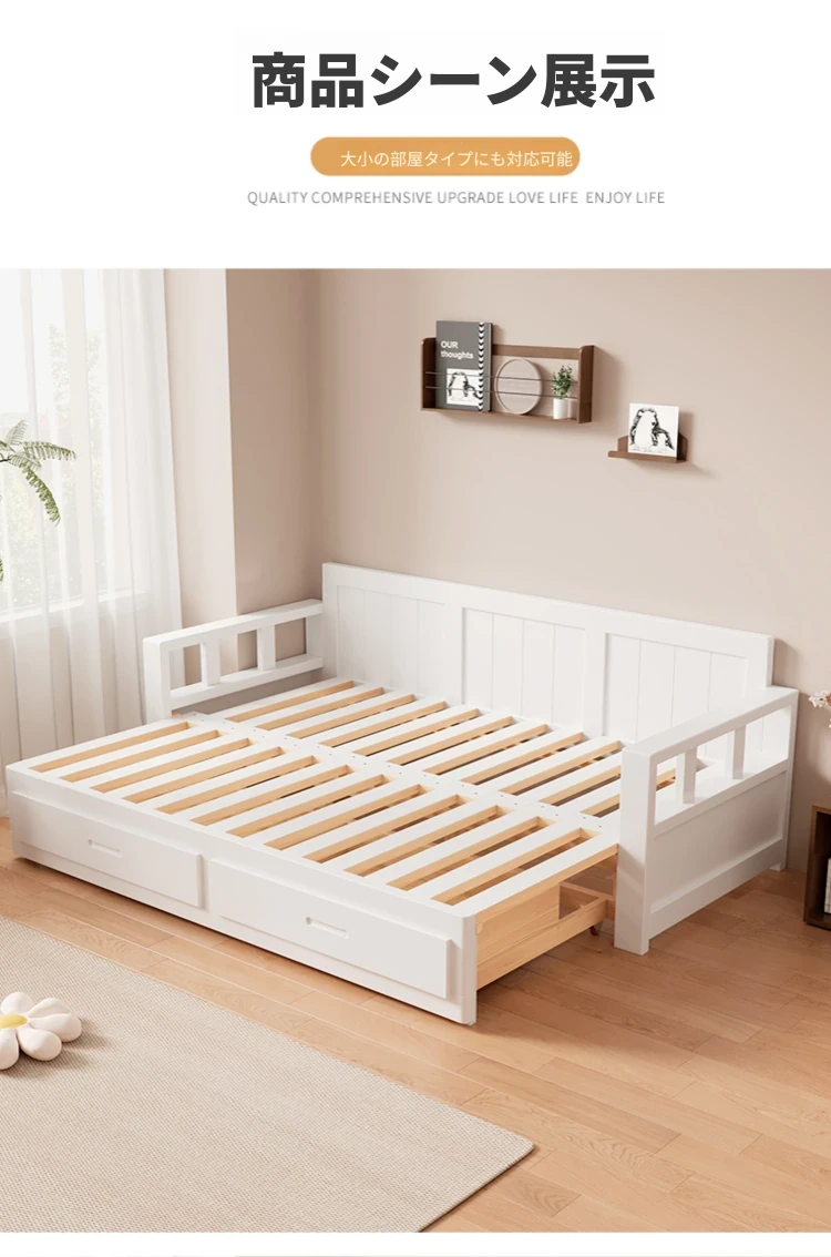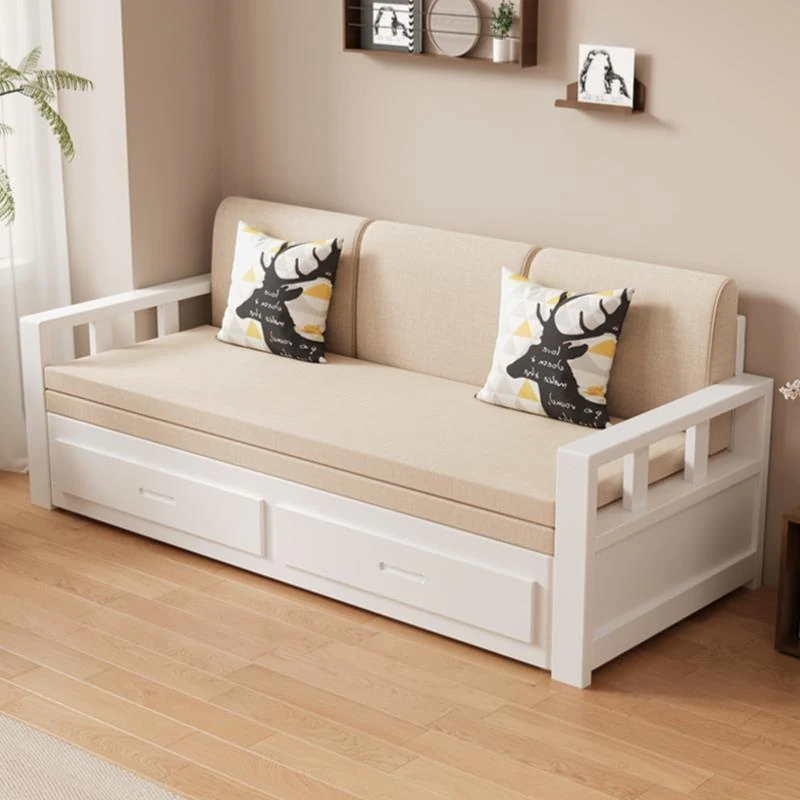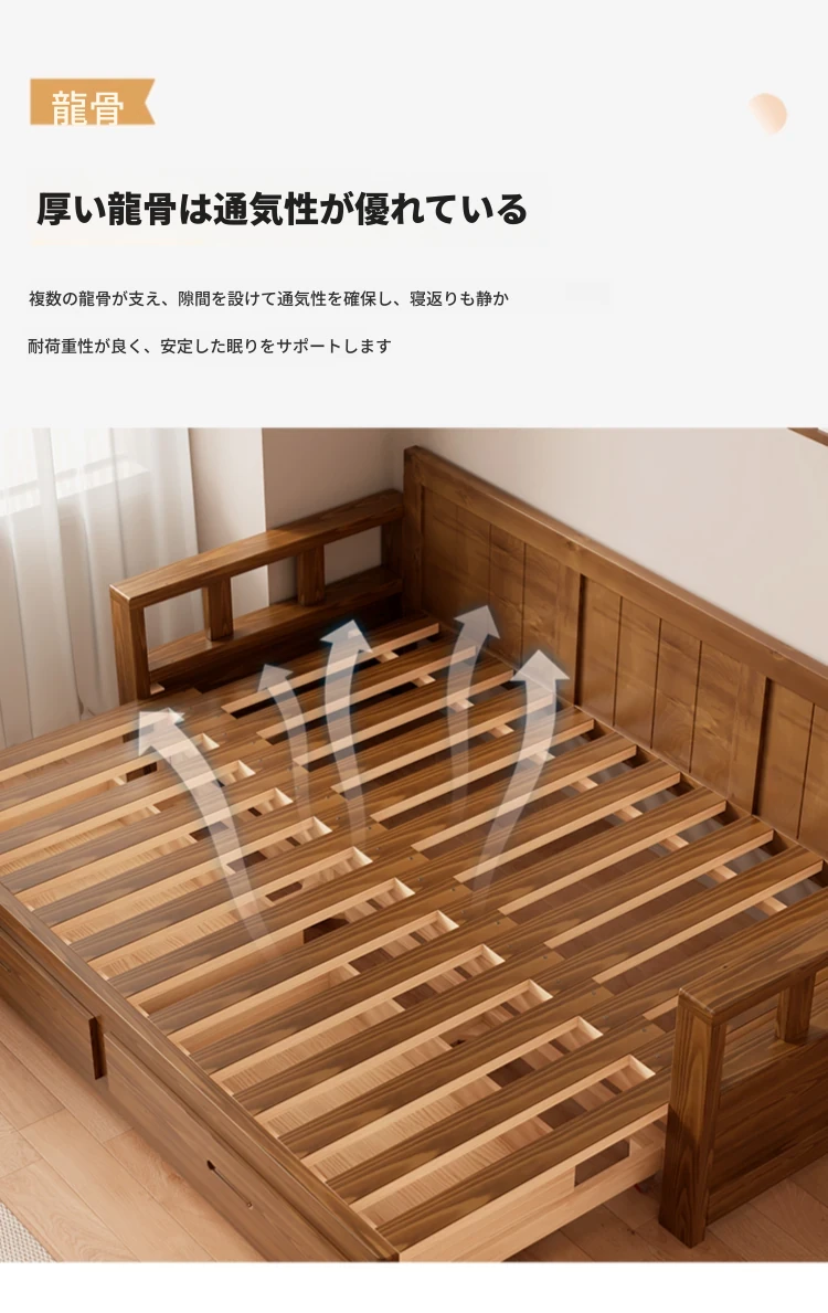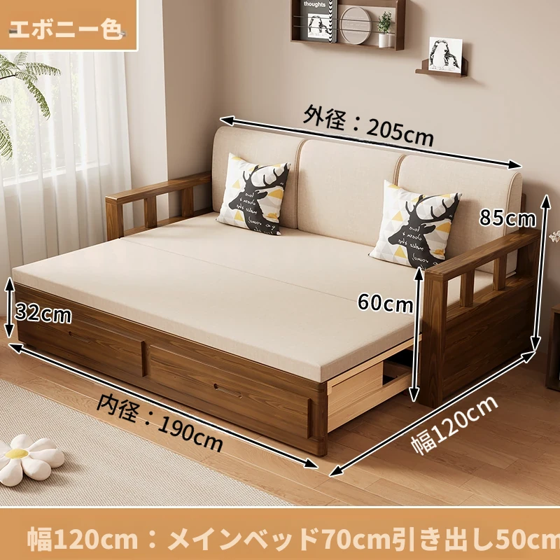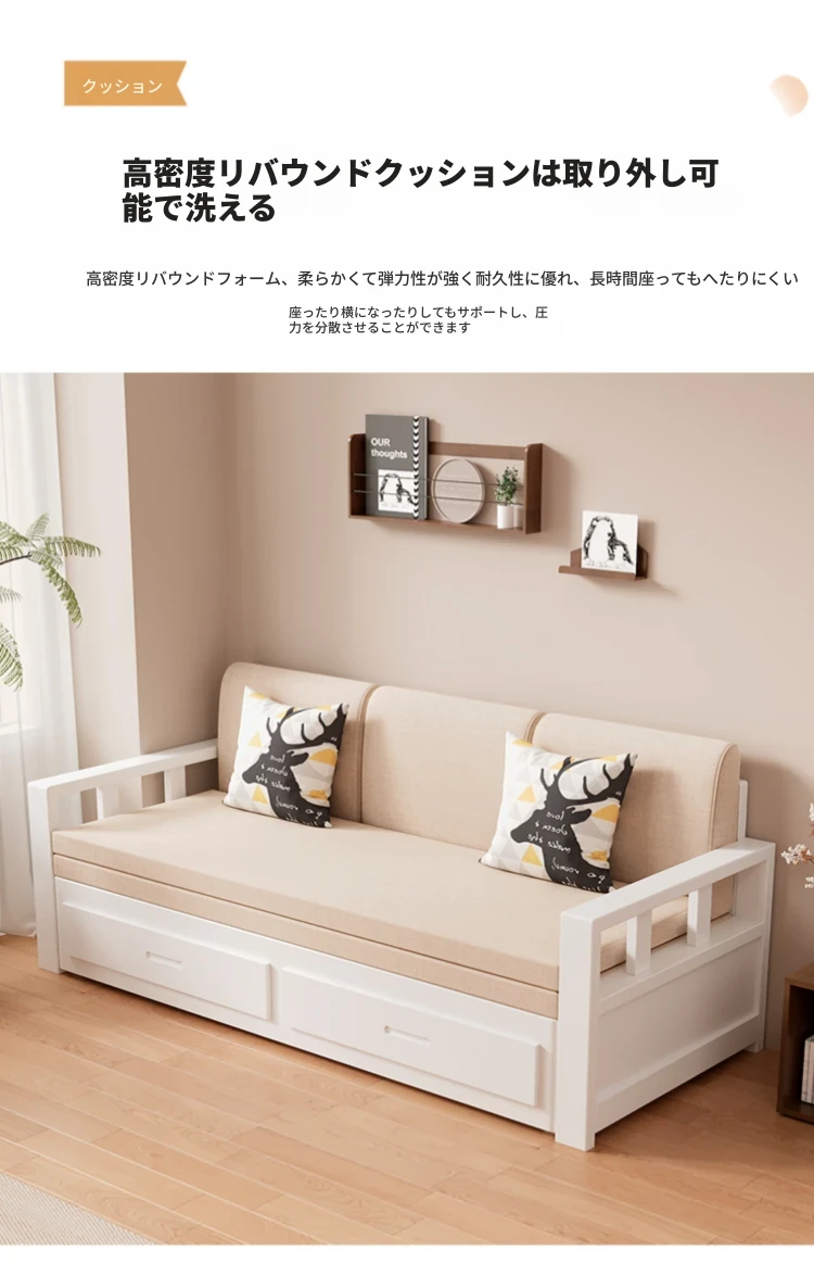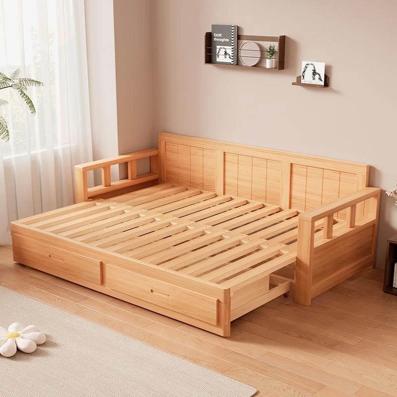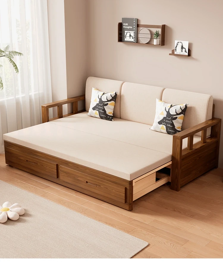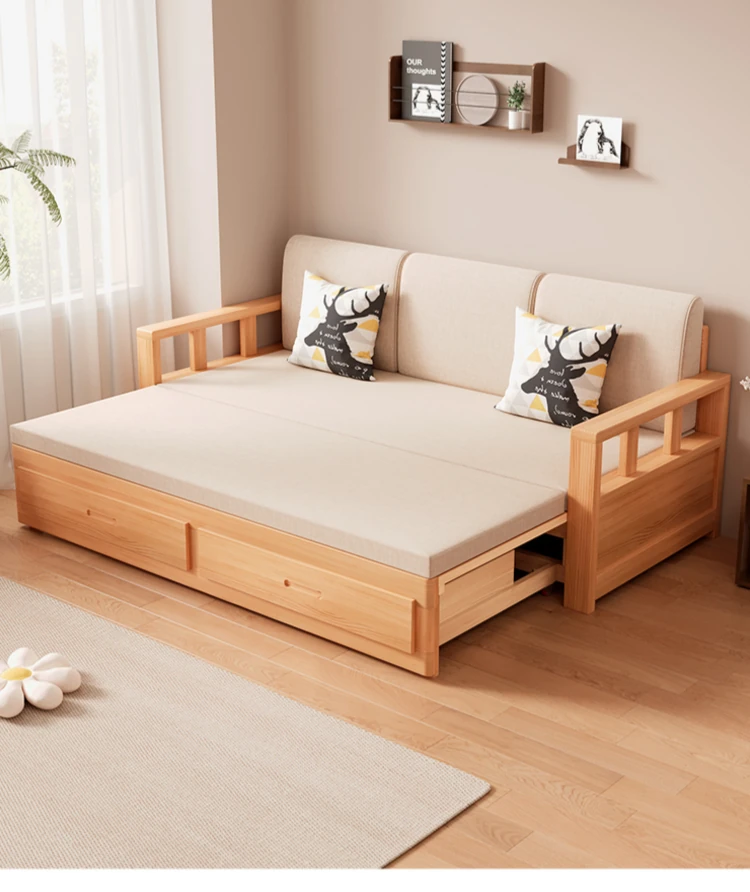 【香港送料無料】多機能折りたたみ式木製ソファベッド - 中式デザインのスリムなリビングルーム用、コンパクトスペースにも最適!
