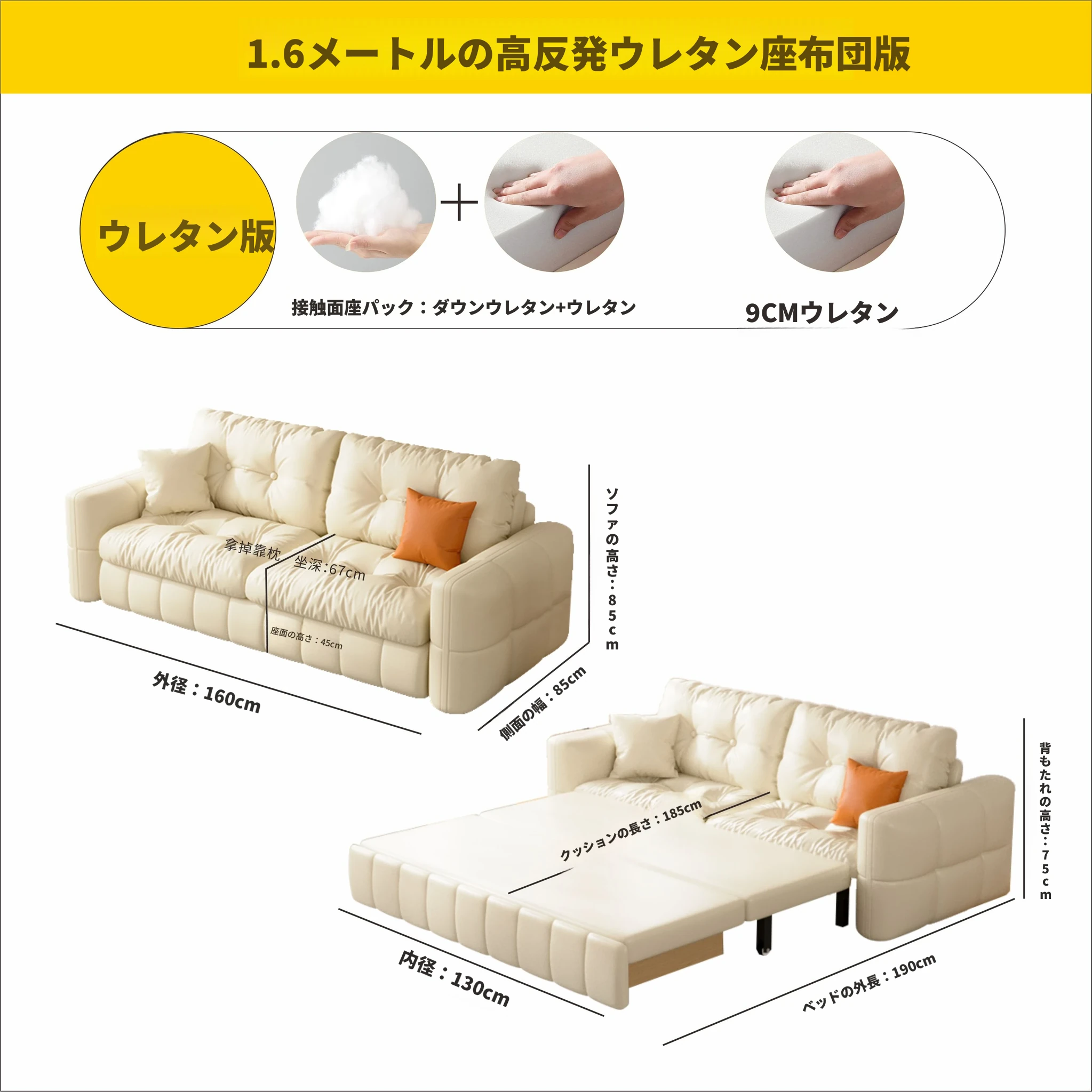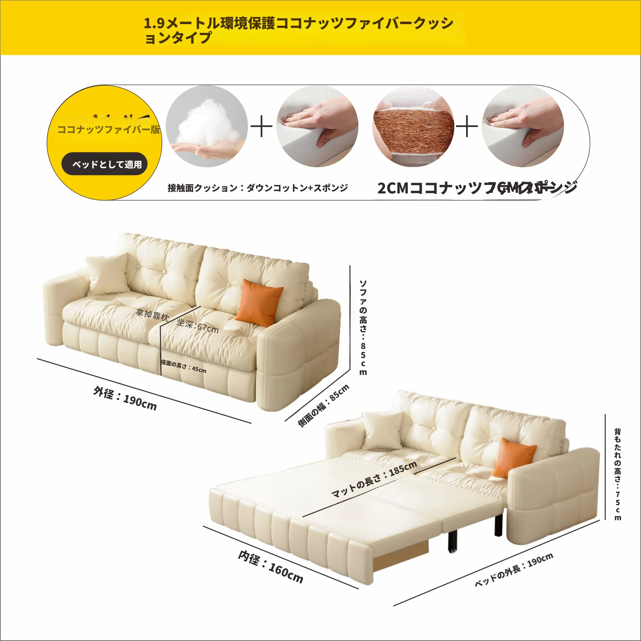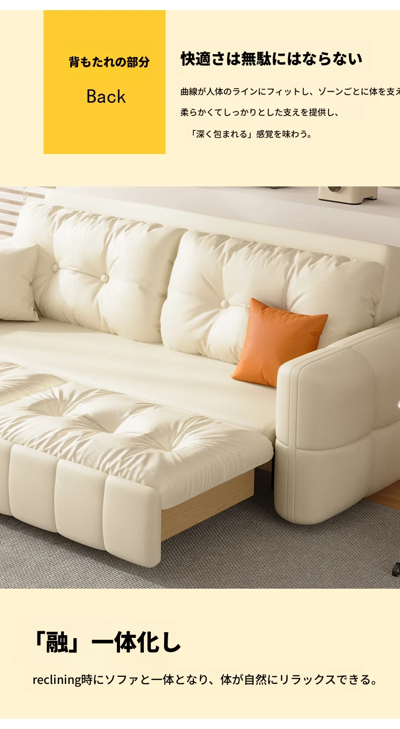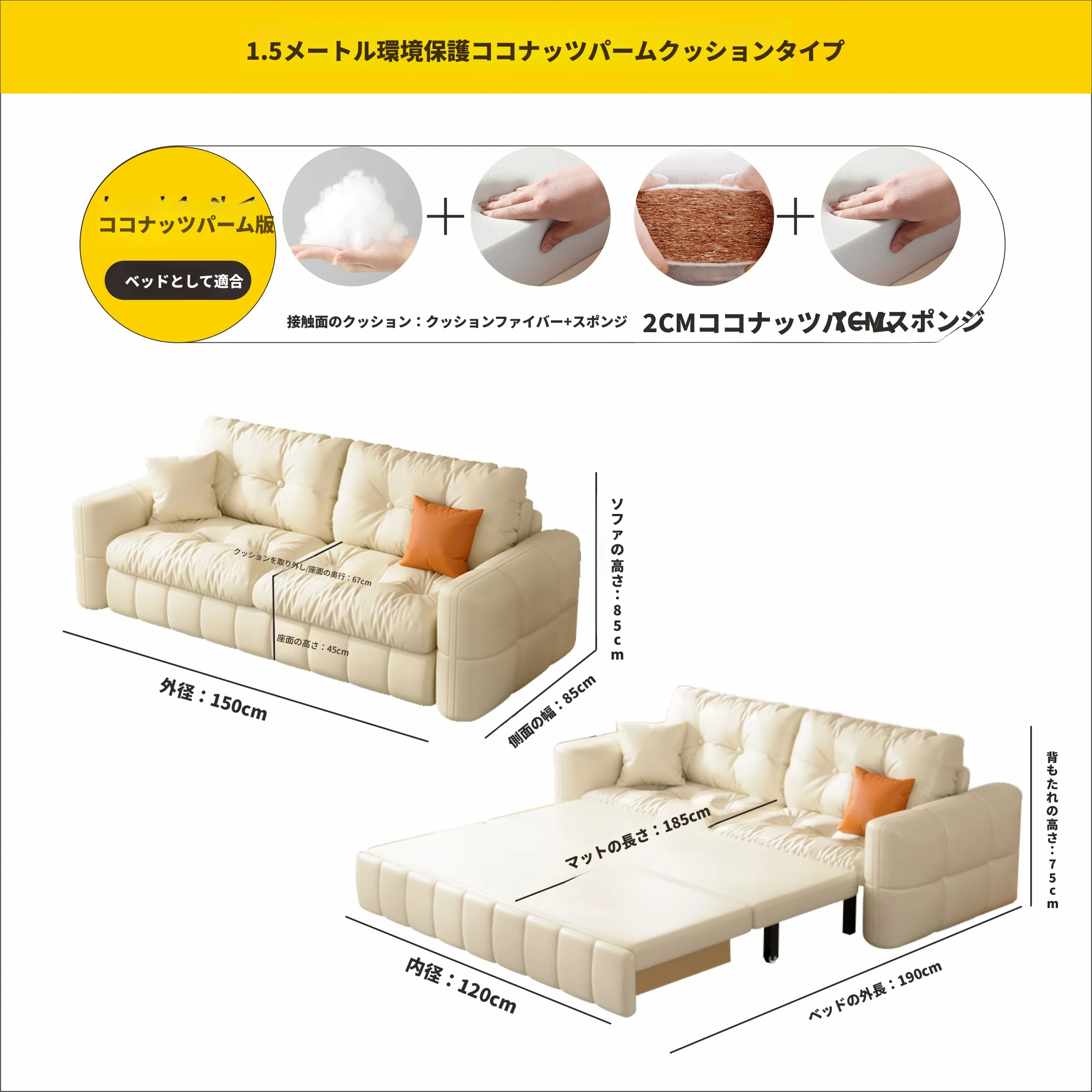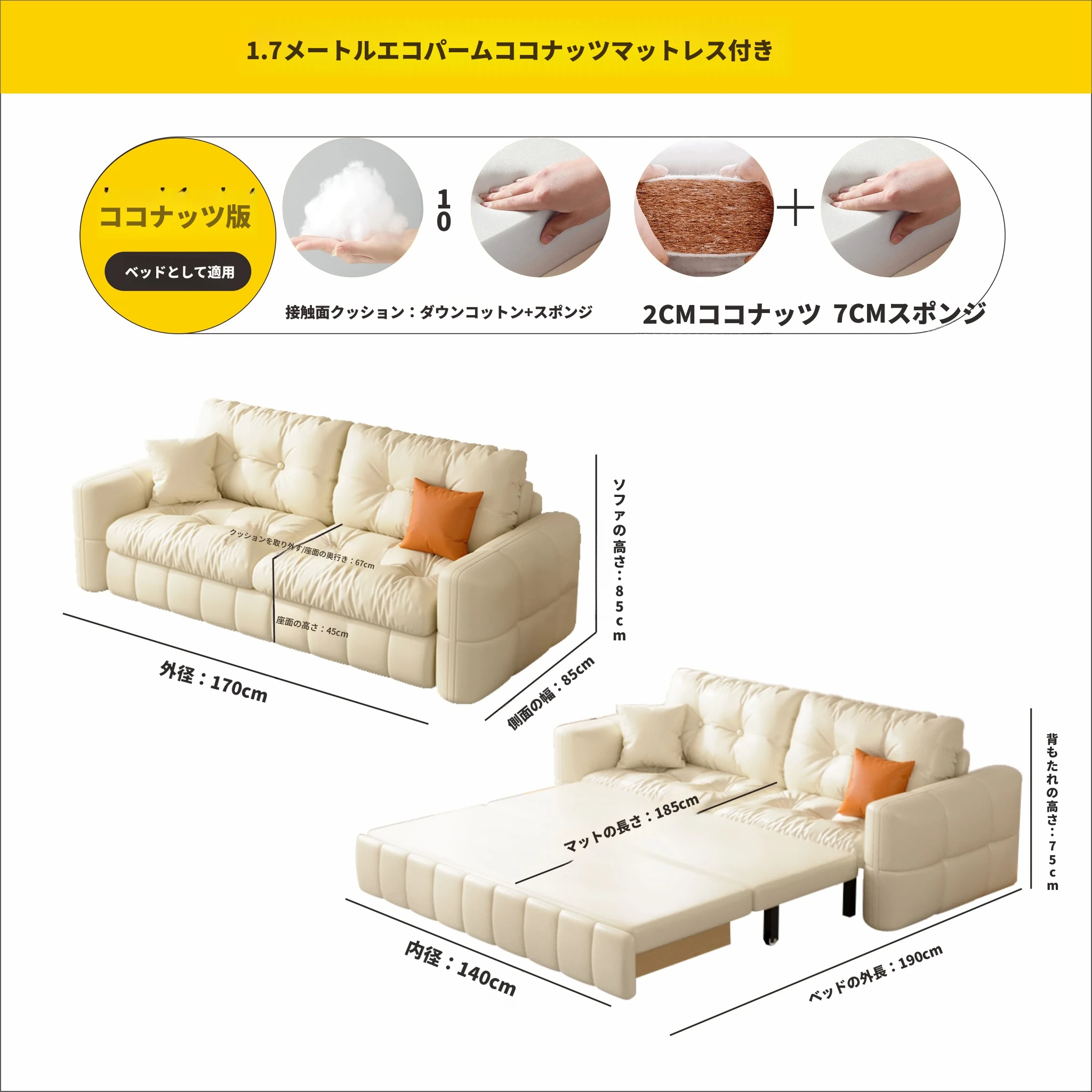 フランス風クリームカラーの猫抓皮折りたたみソファベッド - 多機能・コンパクトデザインで小型住居に最適!プッシュ&プル一体型で新登場!快適なくつろぎ空間をお楽しみください。