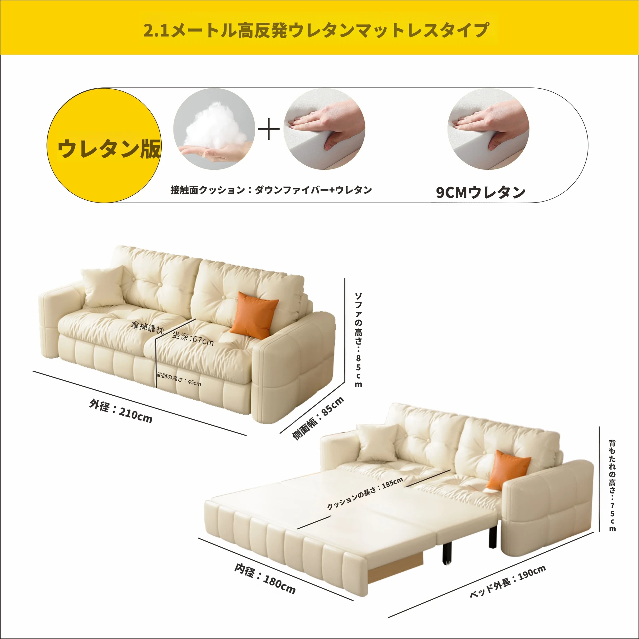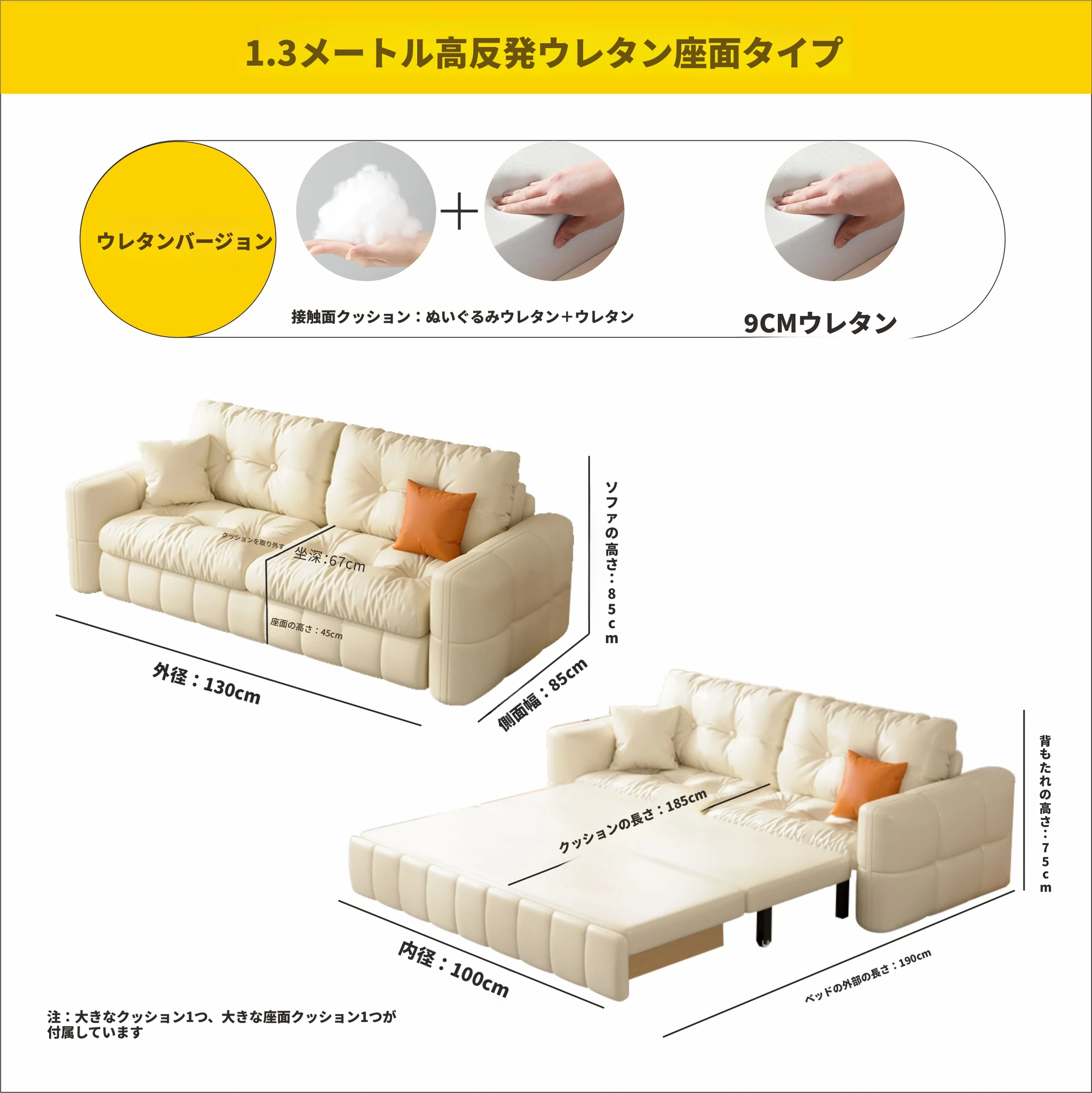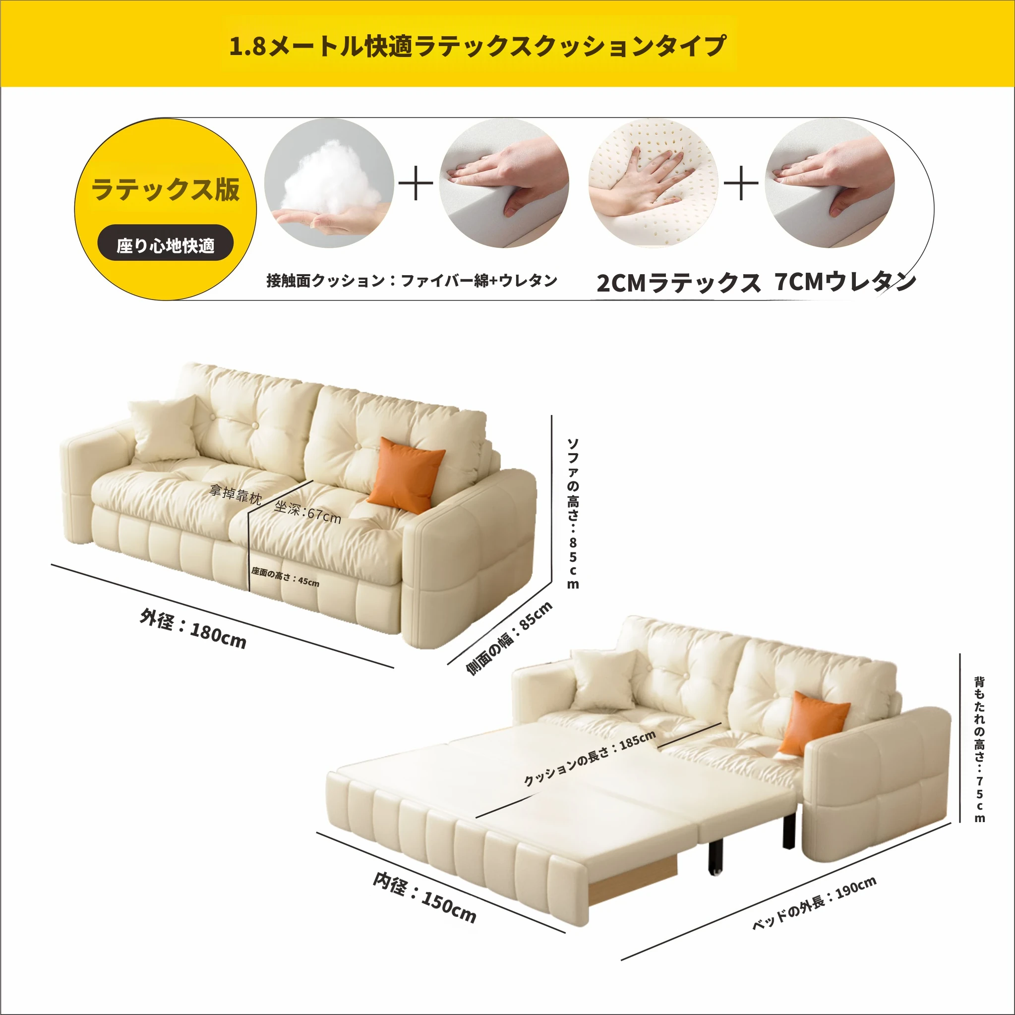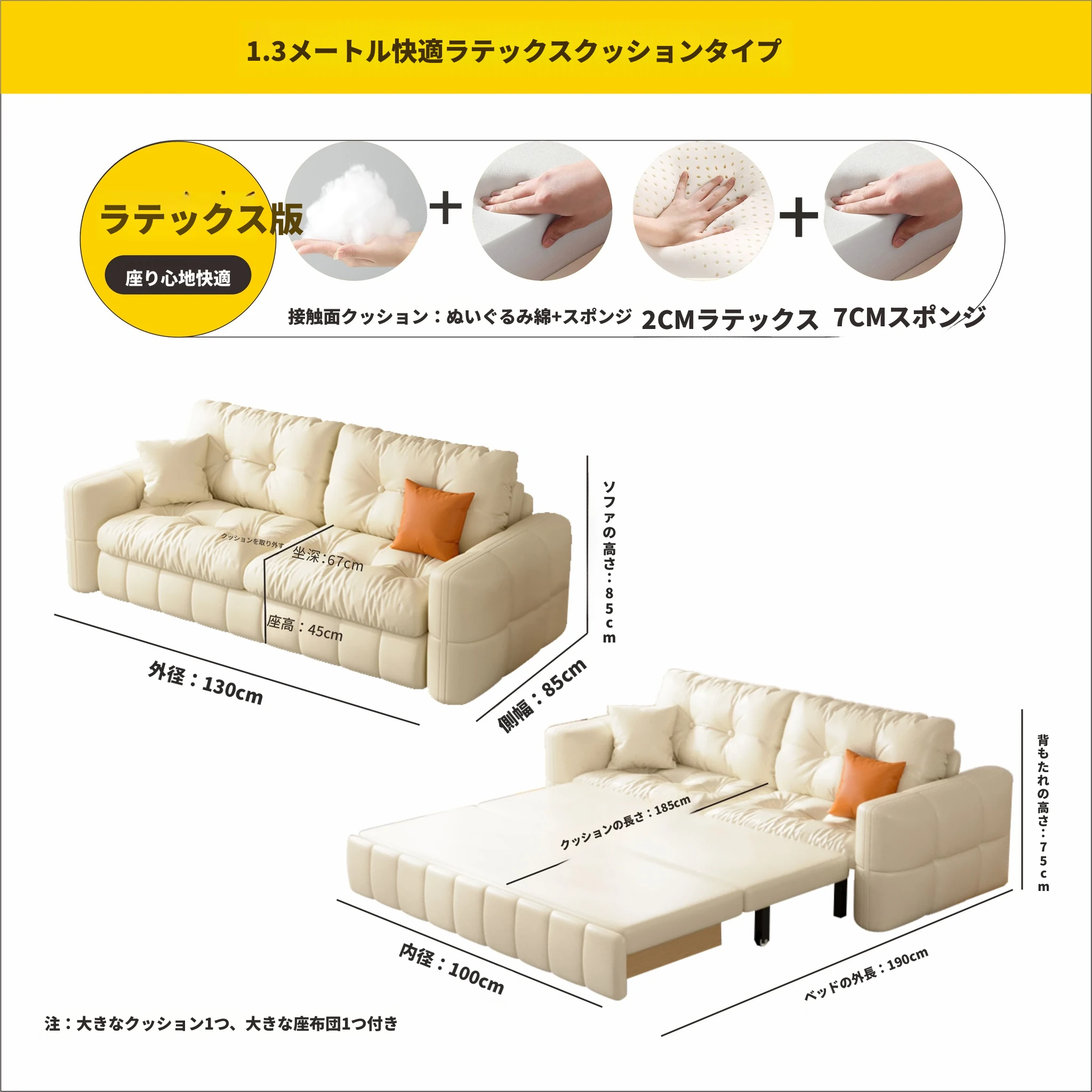 フランス風クリームカラーの猫抓皮折りたたみソファベッド - 多機能・コンパクトデザインで小型住居に最適!プッシュ&プル一体型で新登場!快適なくつろぎ空間をお楽しみください。