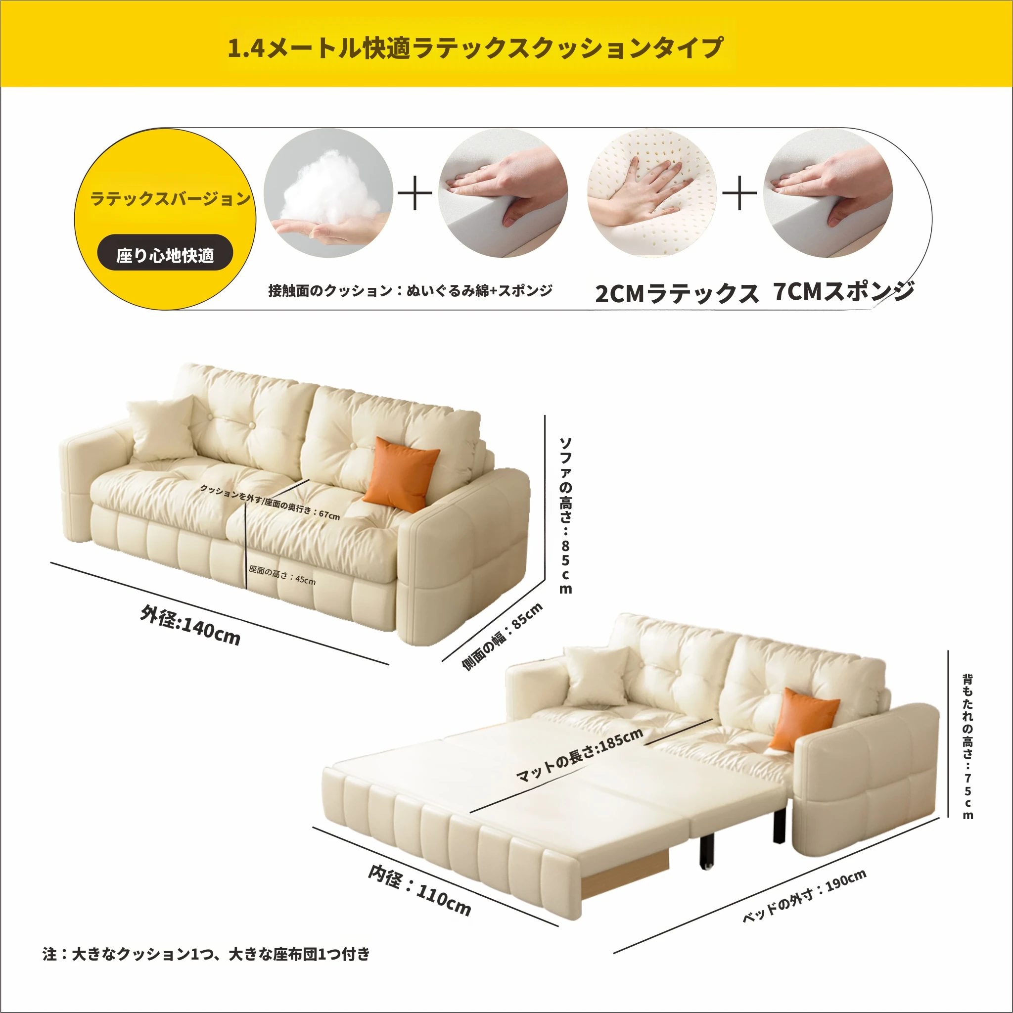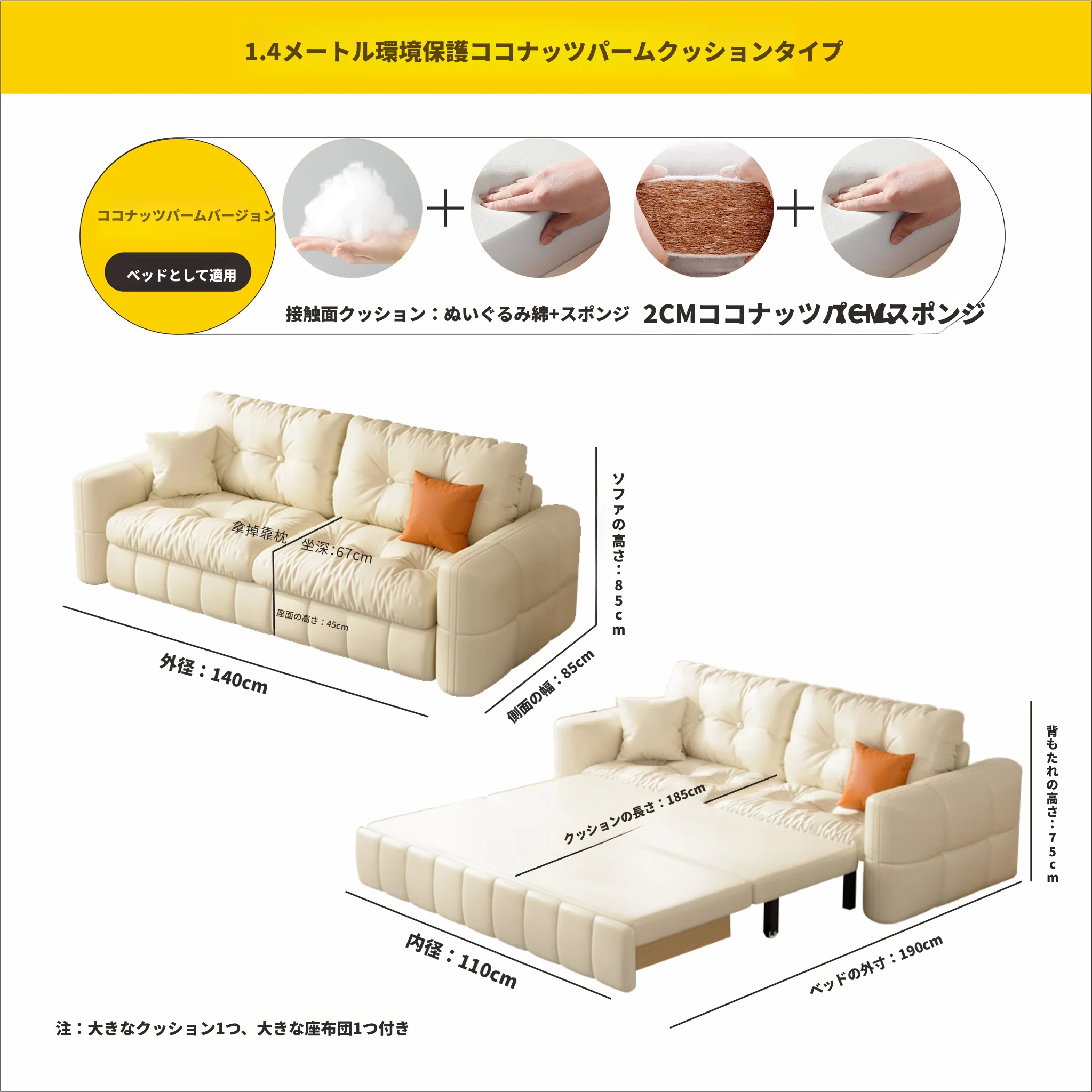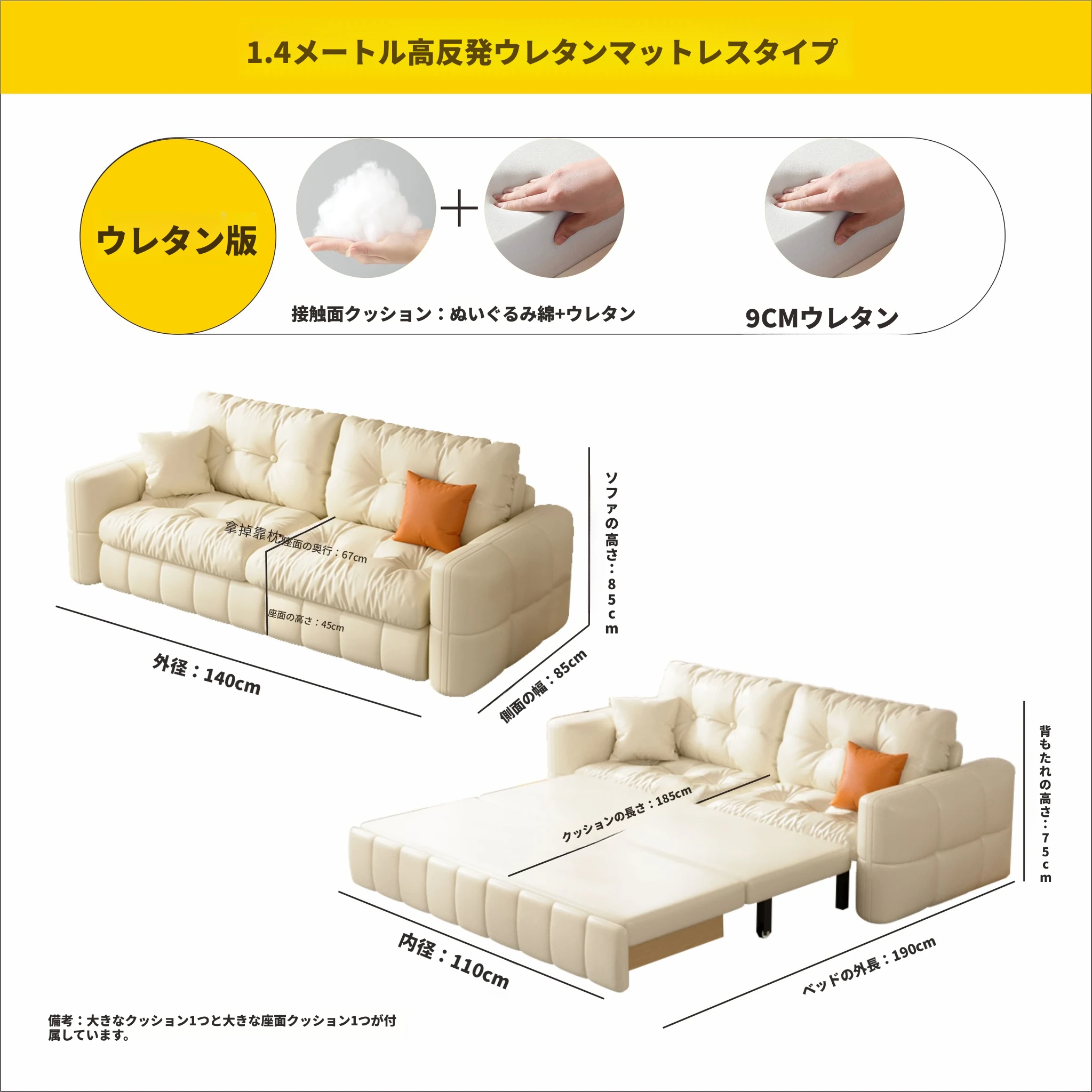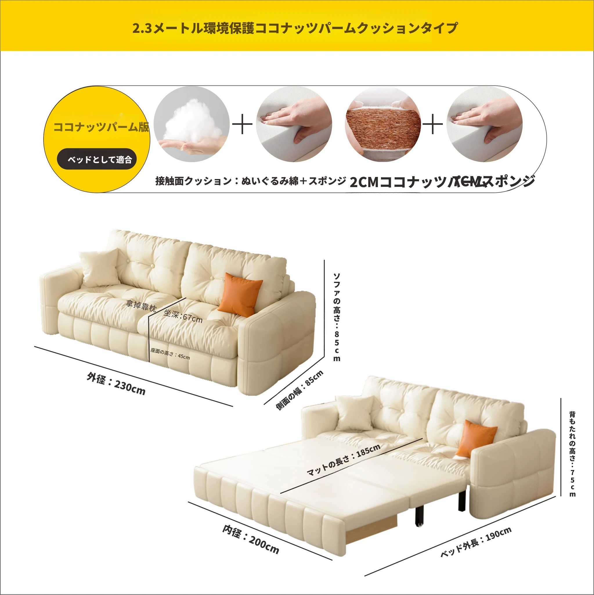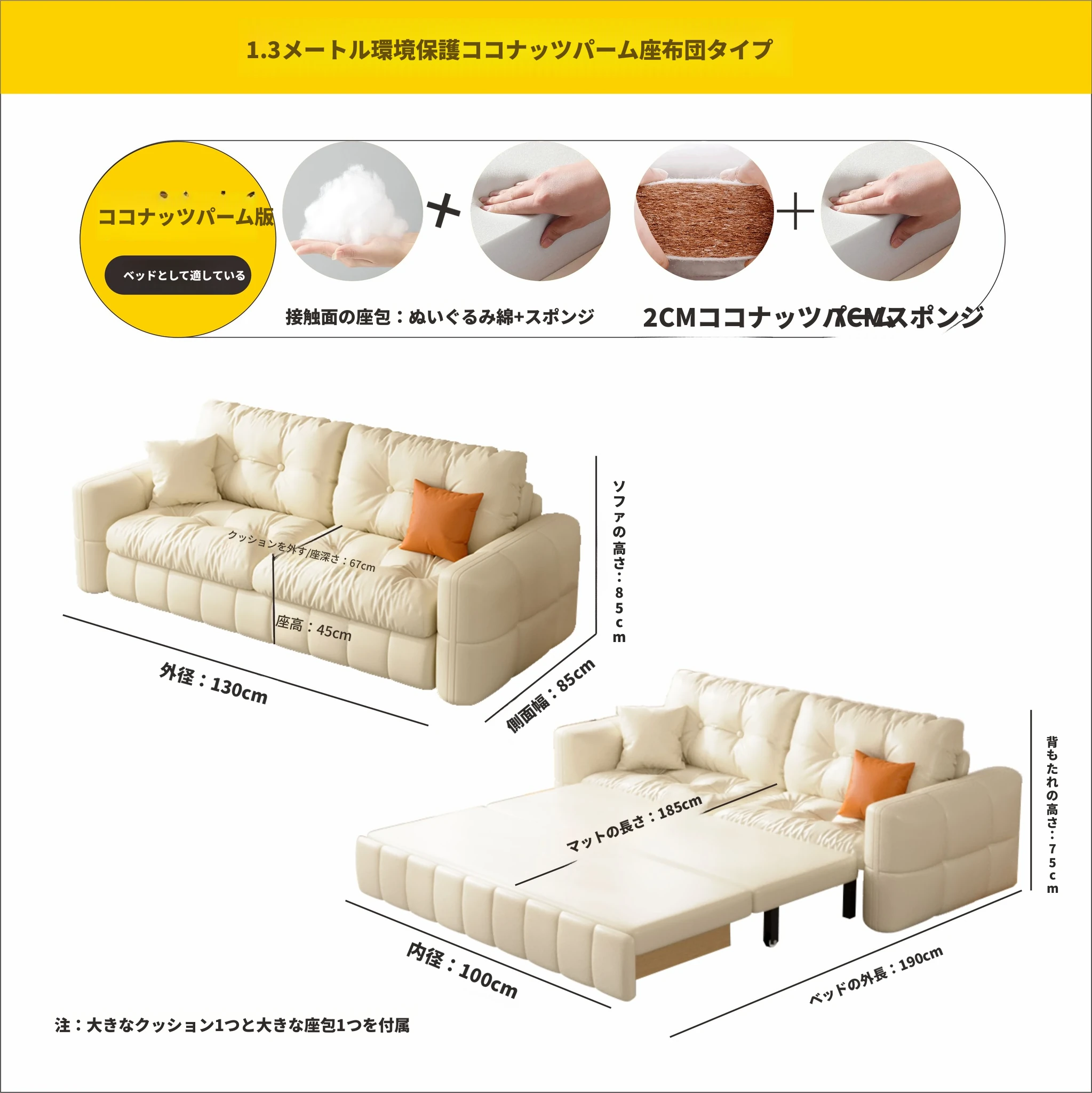 フランス風クリームカラーの猫抓皮折りたたみソファベッド - 多機能・コンパクトデザインで小型住居に最適!プッシュ&プル一体型で新登場!快適なくつろぎ空間をお楽しみください。