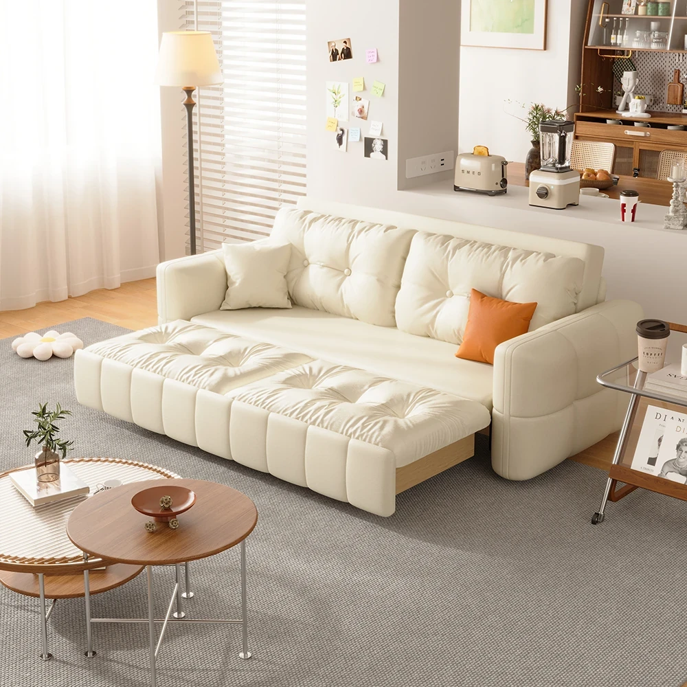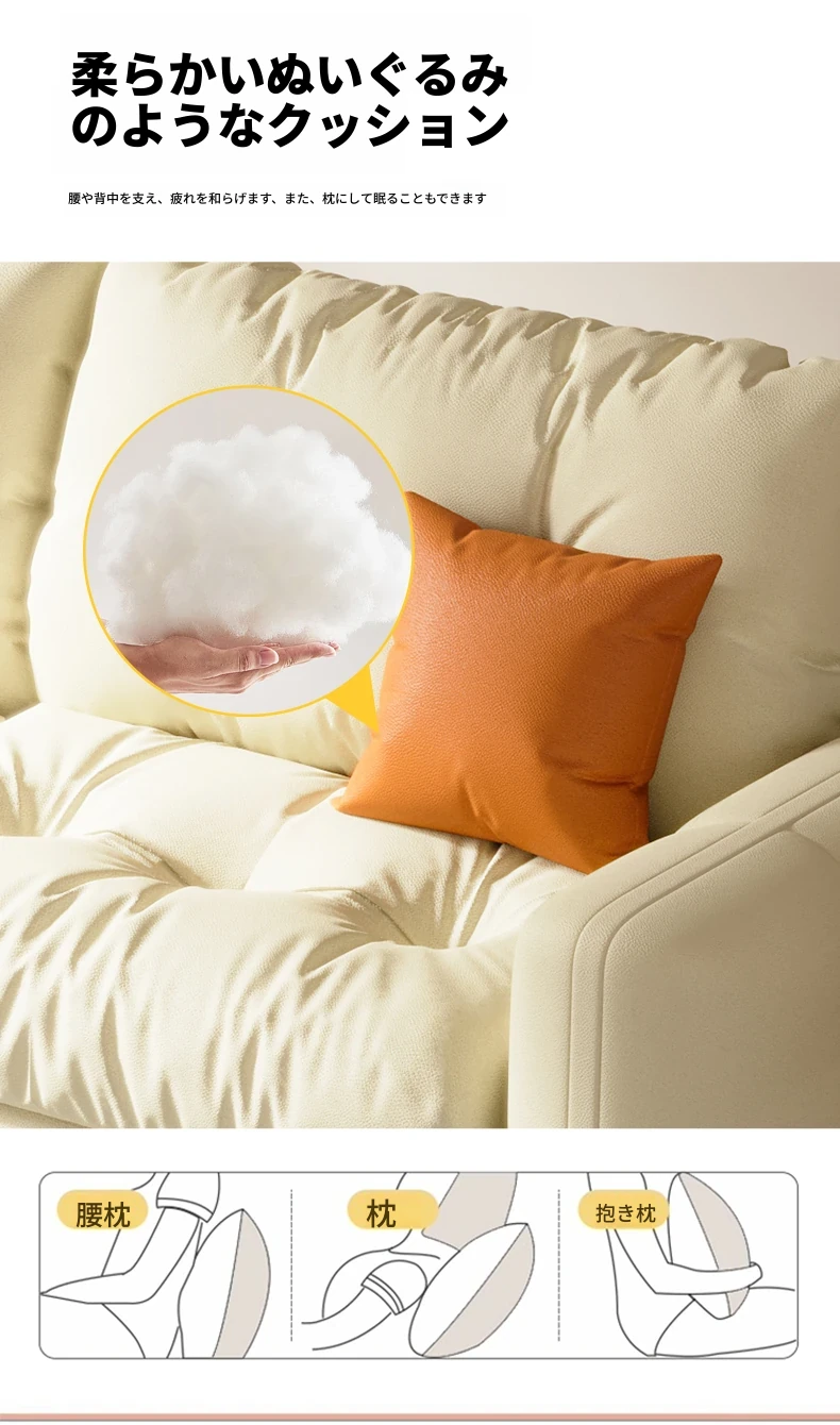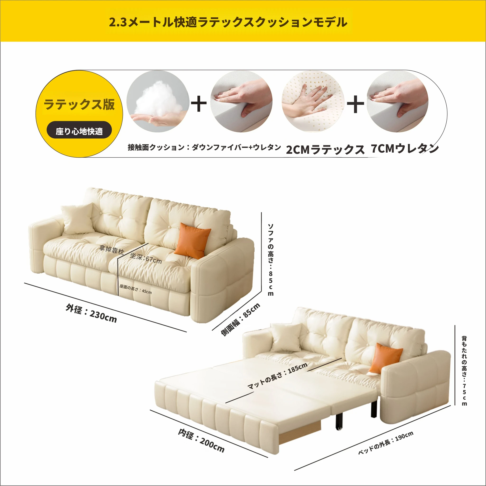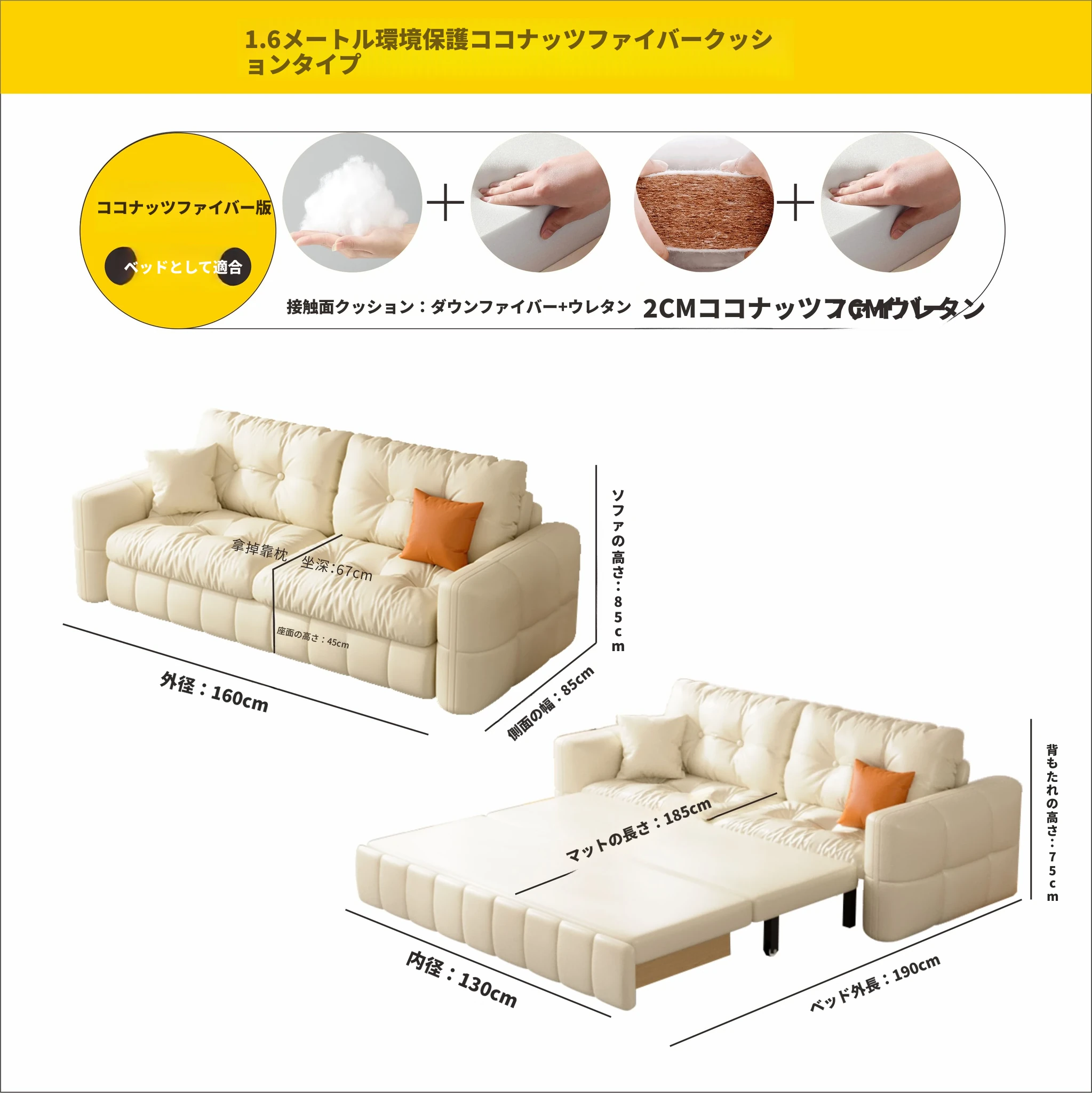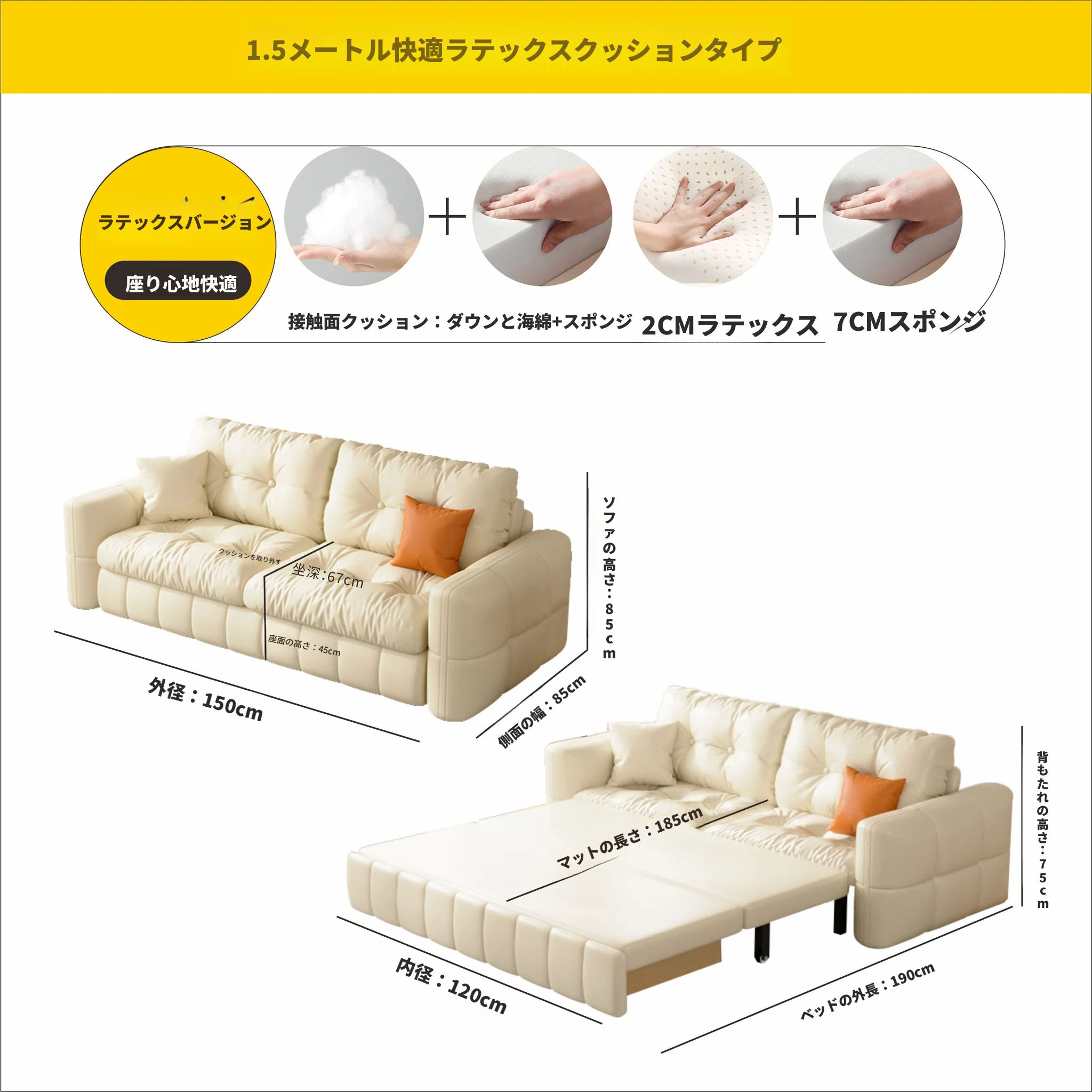 フランス風クリームカラーの猫抓皮折りたたみソファベッド - 多機能・コンパクトデザインで小型住居に最適!プッシュ&プル一体型で新登場!快適なくつろぎ空間をお楽しみください。