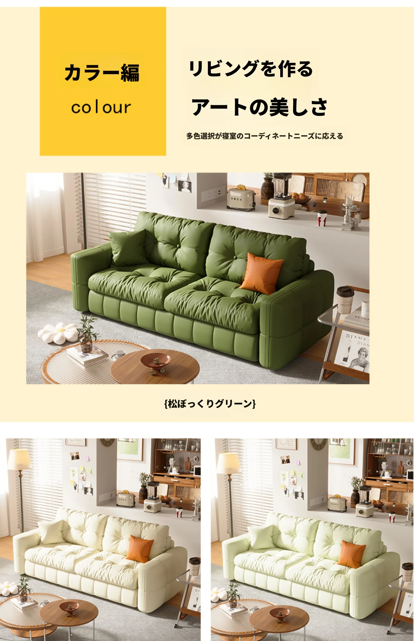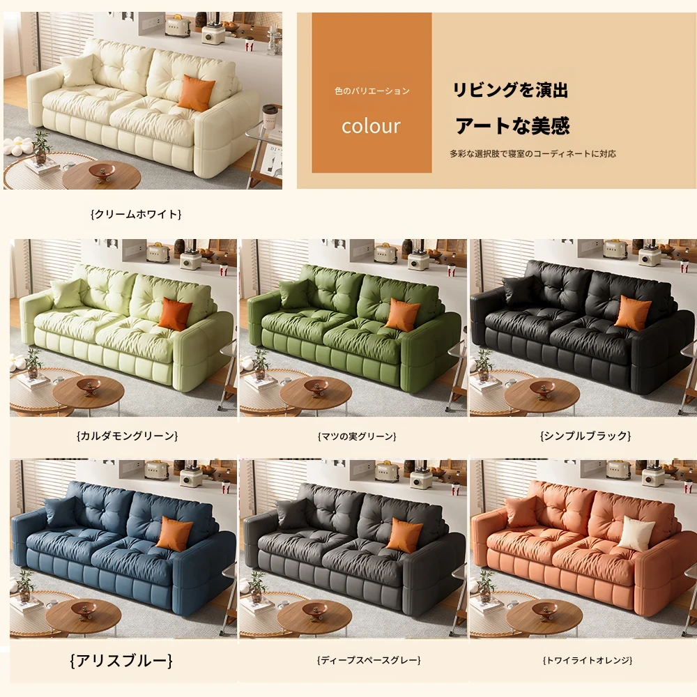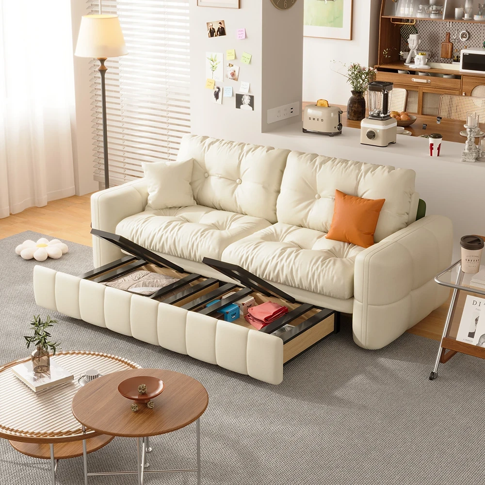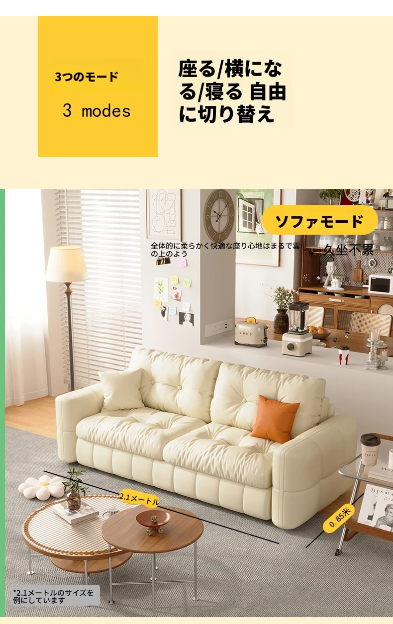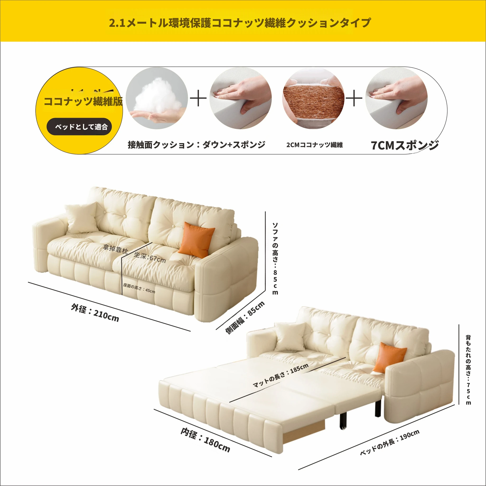 フランス風クリームカラーの猫抓皮折りたたみソファベッド - 多機能・コンパクトデザインで小型住居に最適!プッシュ&プル一体型で新登場!快適なくつろぎ空間をお楽しみください。