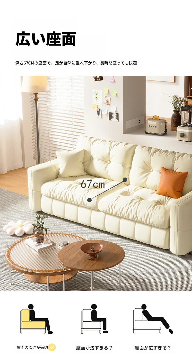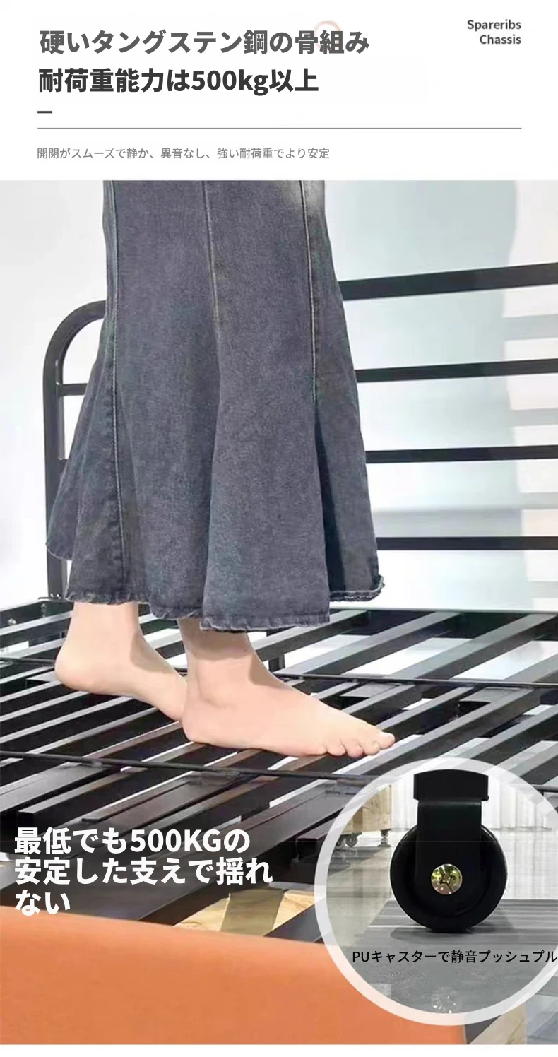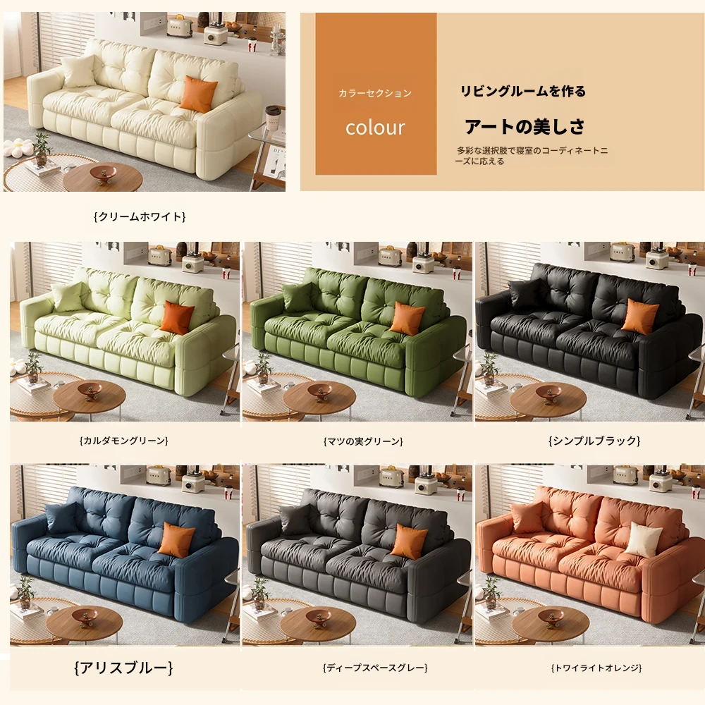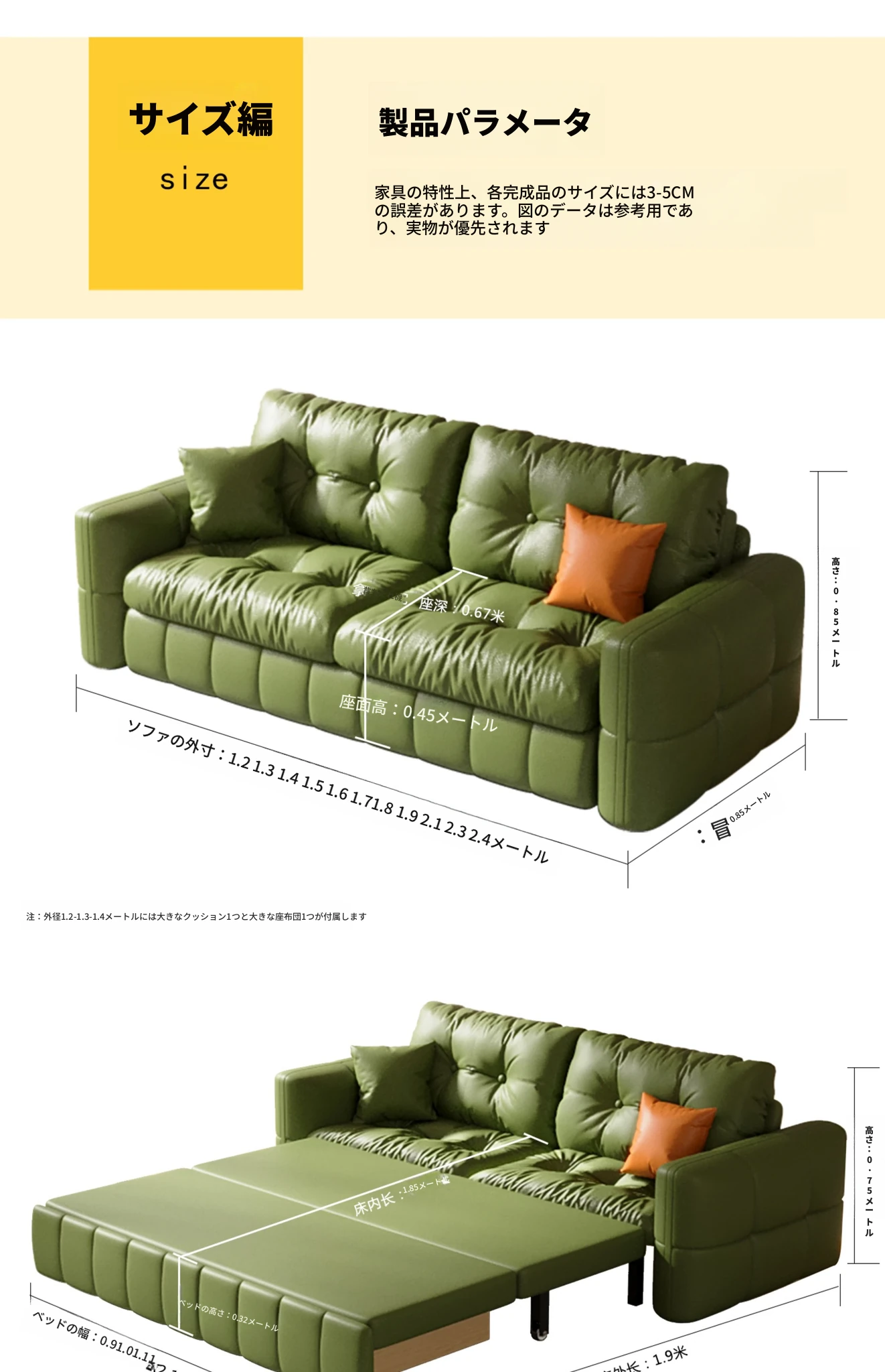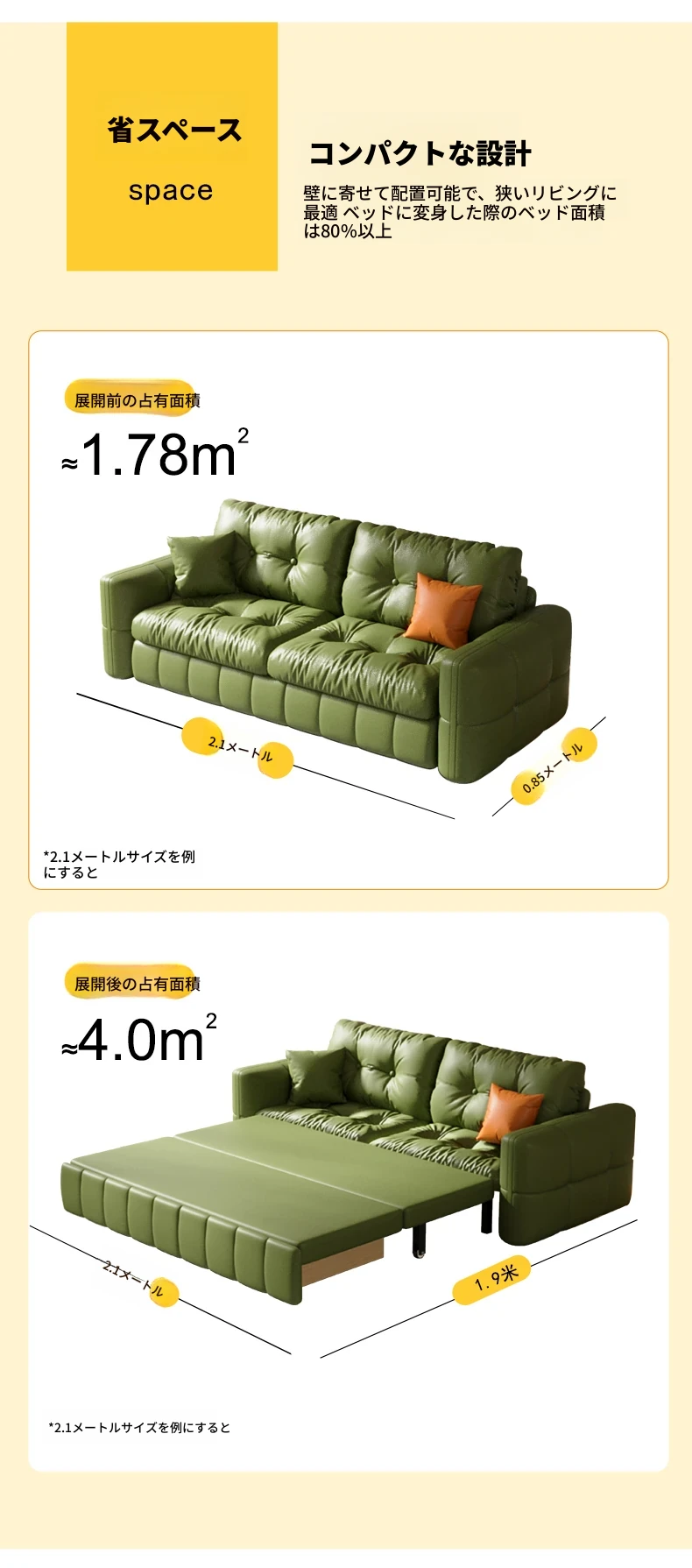 フランス風クリームカラーの猫抓皮折りたたみソファベッド - 多機能・コンパクトデザインで小型住居に最適!プッシュ&プル一体型で新登場!快適なくつろぎ空間をお楽しみください。