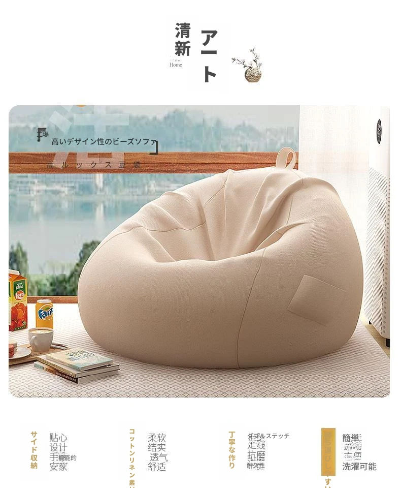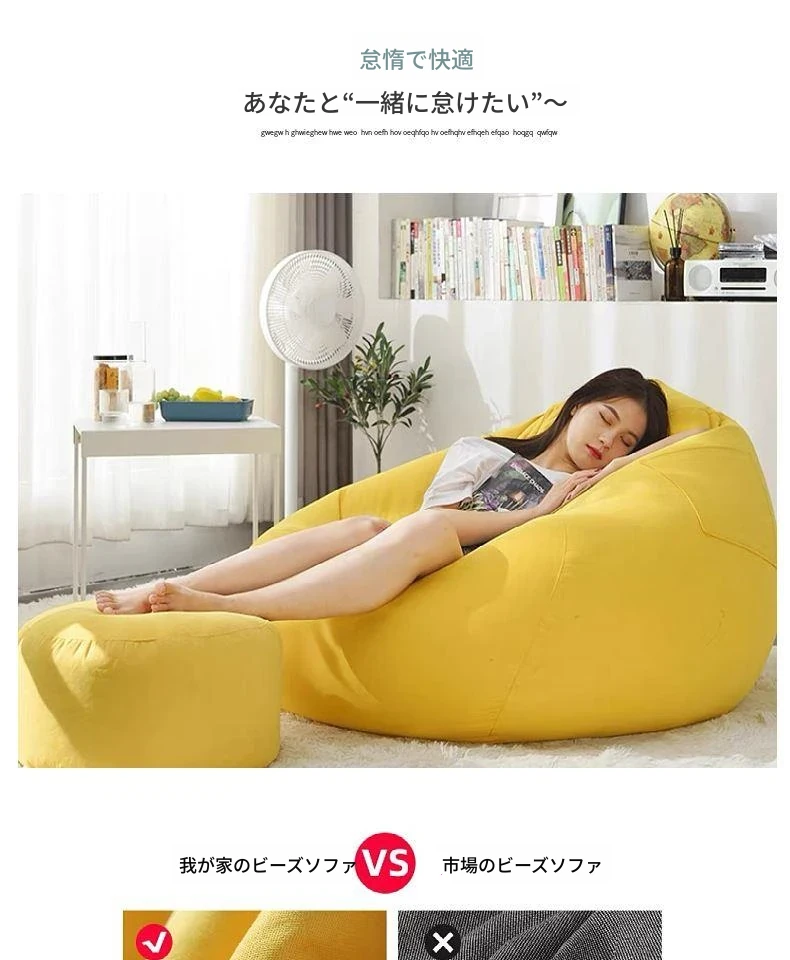 楽々ソファ 大型コットンマメ袋カバー 着脱可能な内カバー付き 一人用 円形 くつろげる寝椅子 どこでもリラックス!洗えるカバーで清潔感もバッチリ!