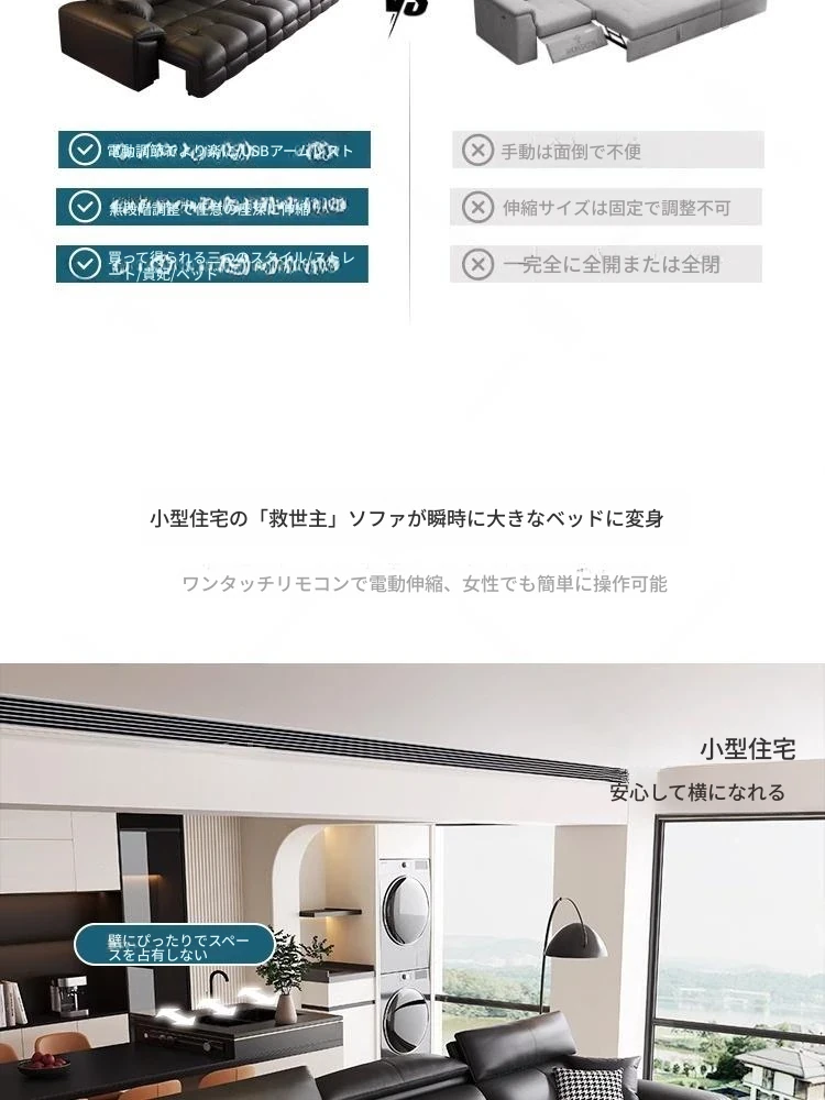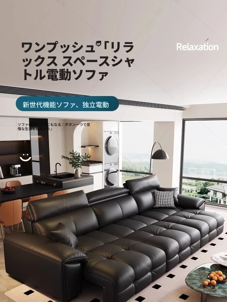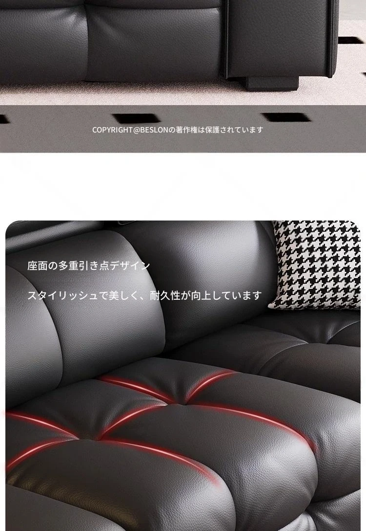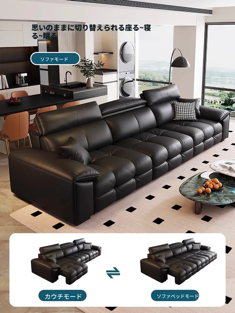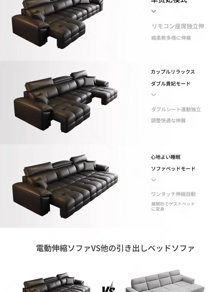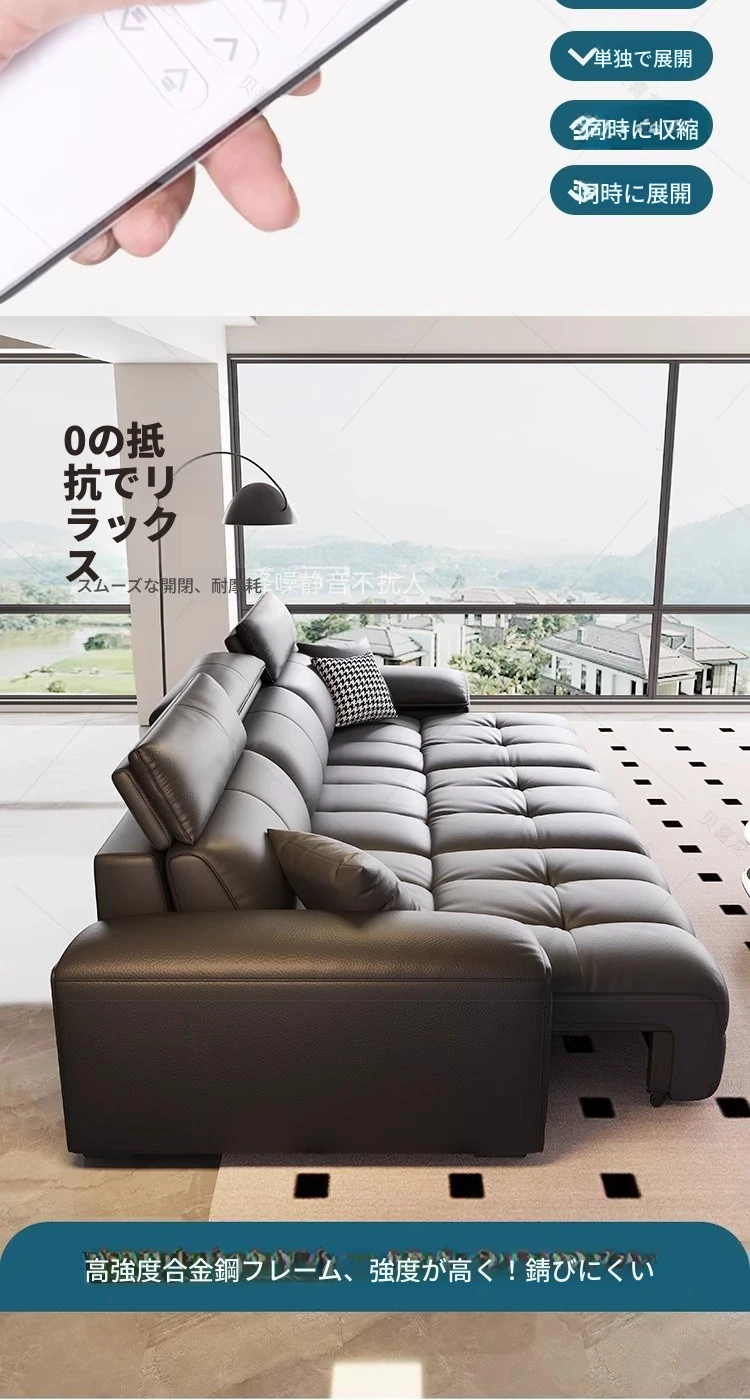 グーフェイ イタリアン本革電動ソファ シンプルでモダンなリビングにぴったり!多機能で伸縮可能な二用ソファベッド、快適な3人掛けでお客様をおもてなし。
