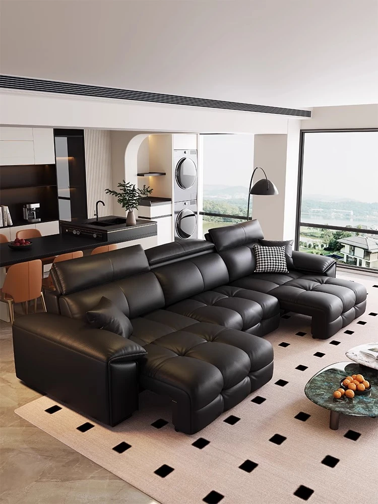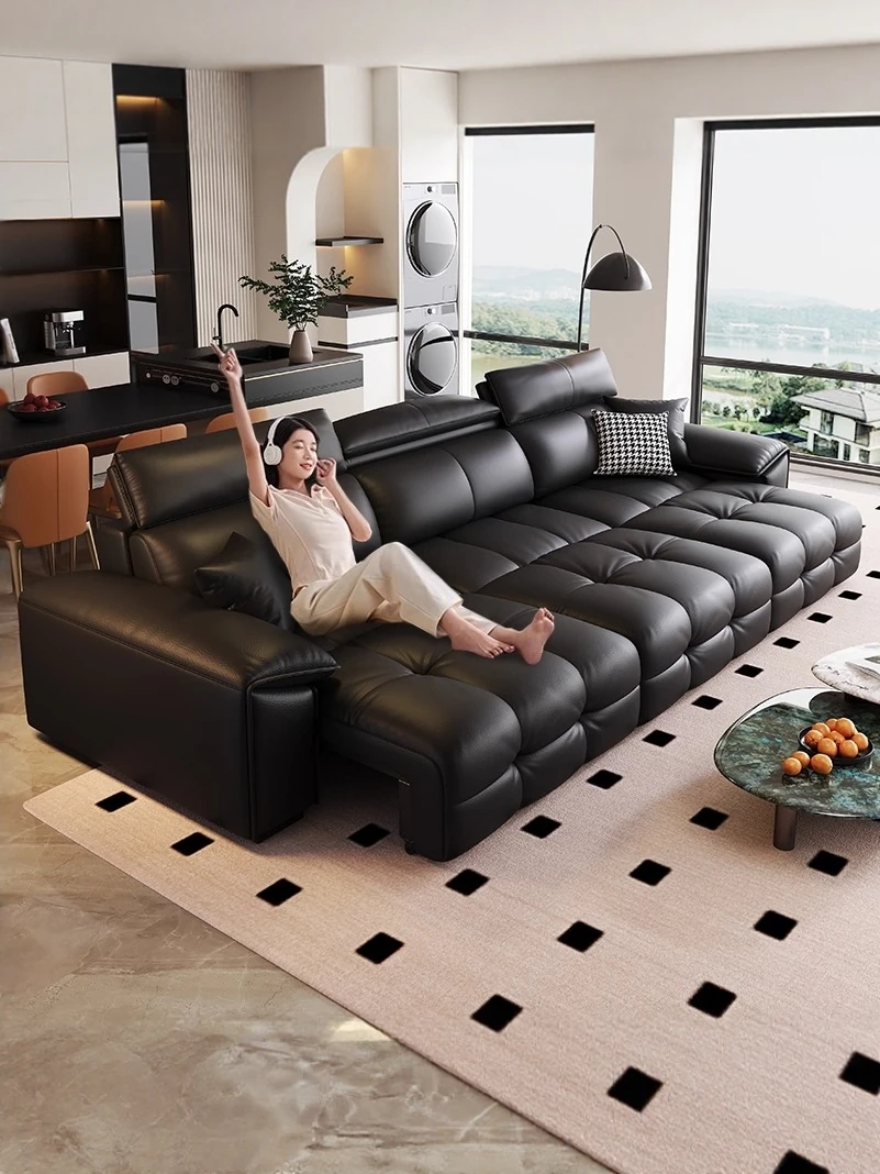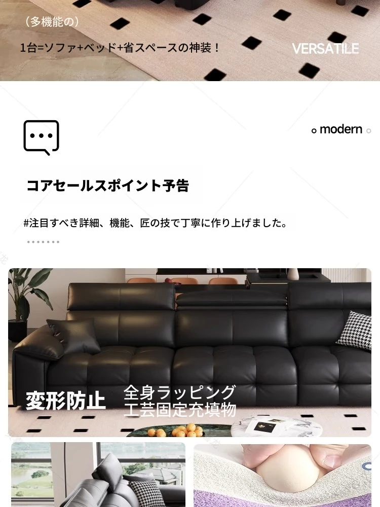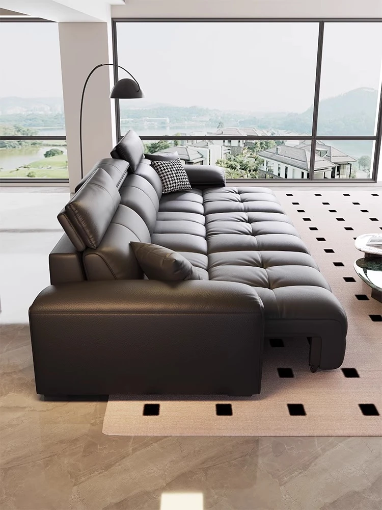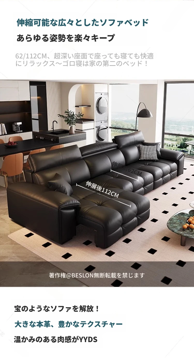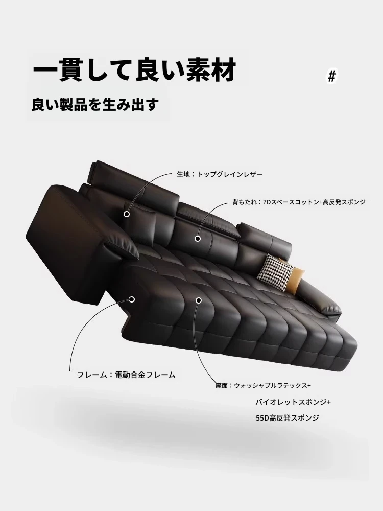 グーフェイ イタリアン本革電動ソファ シンプルでモダンなリビングにぴったり!多機能で伸縮可能な二用ソファベッド、快適な3人掛けでお客様をおもてなし。