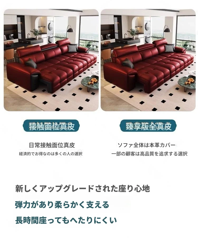 接触面本革【中厚半青柔らかい細摔頭層本革】ラグジュアリーモデル