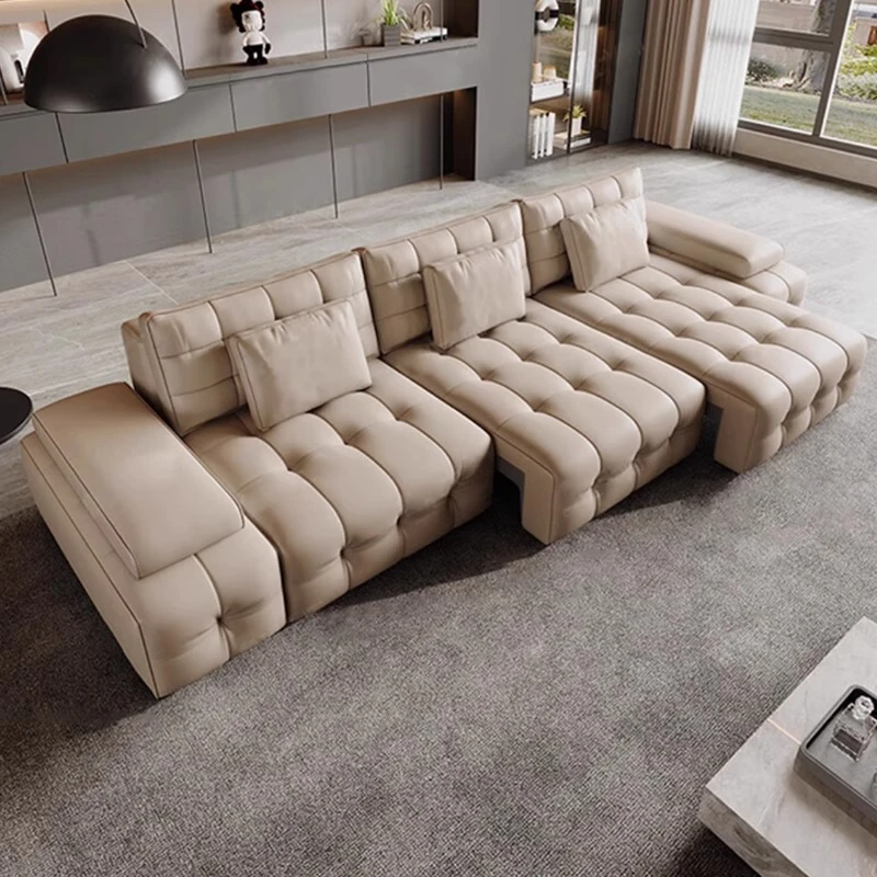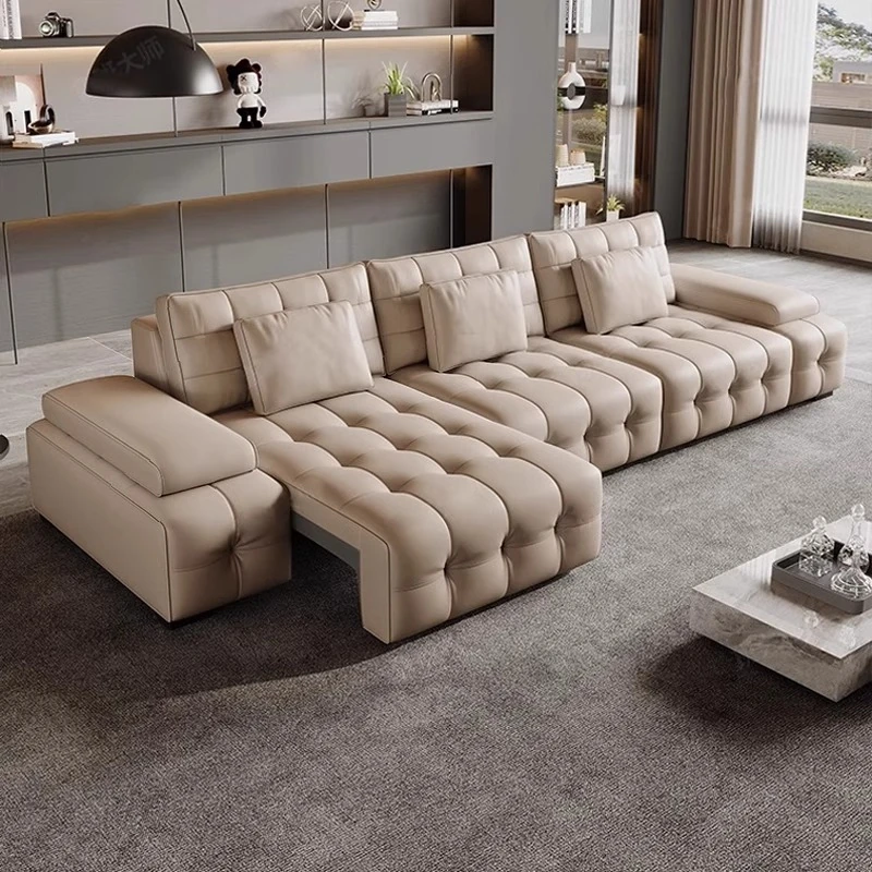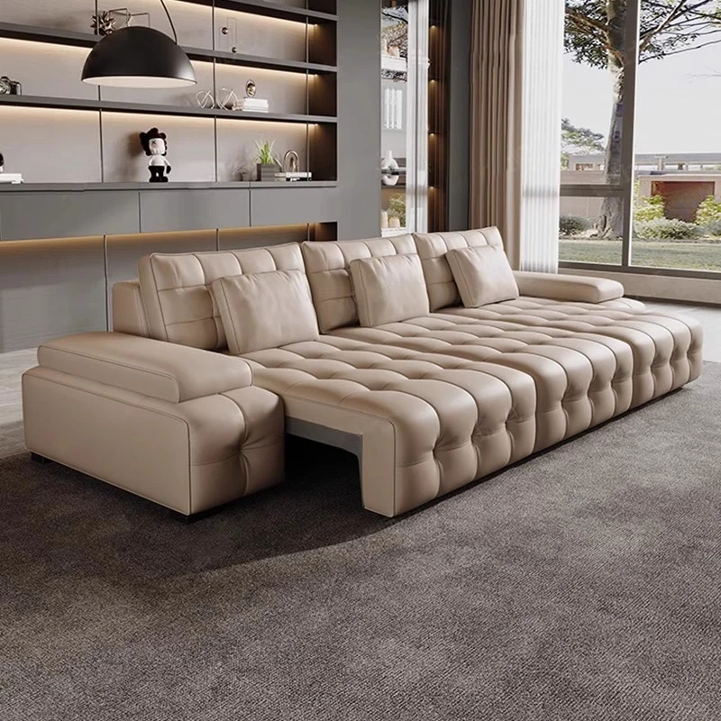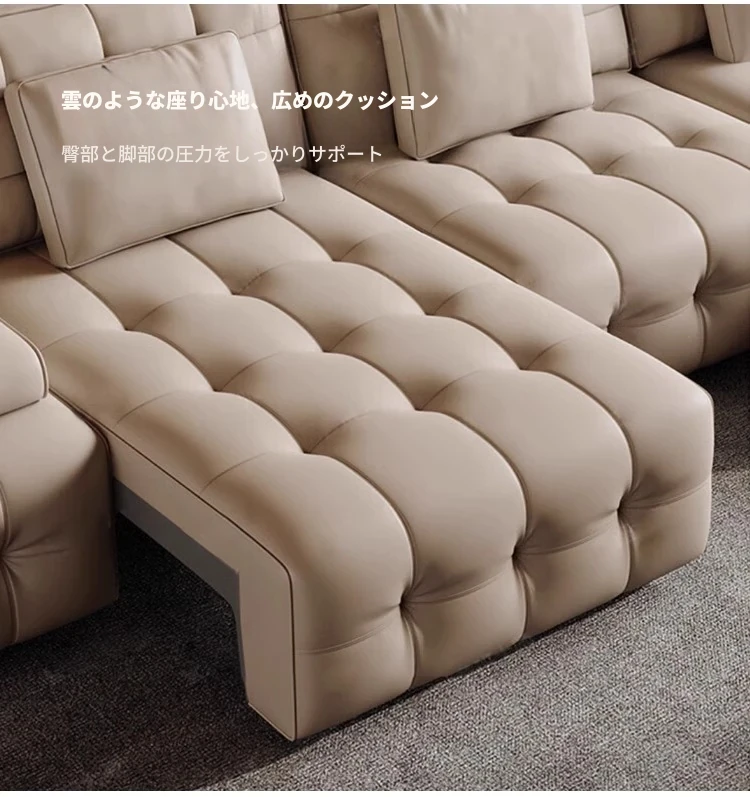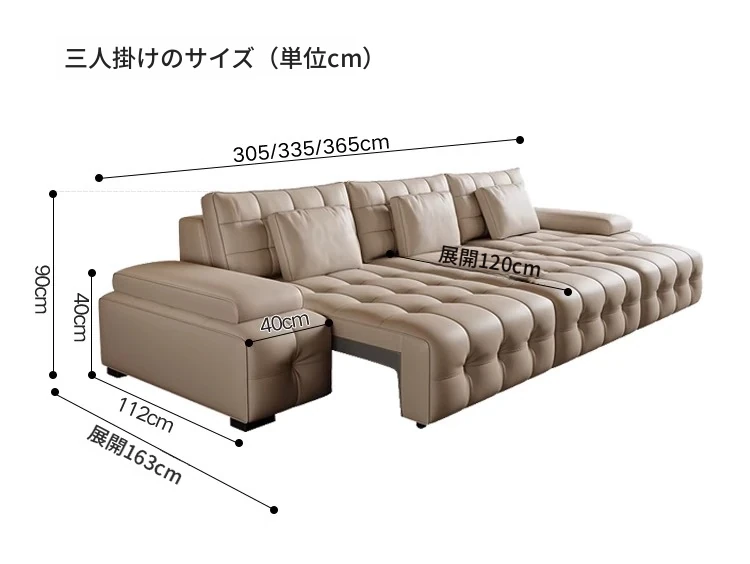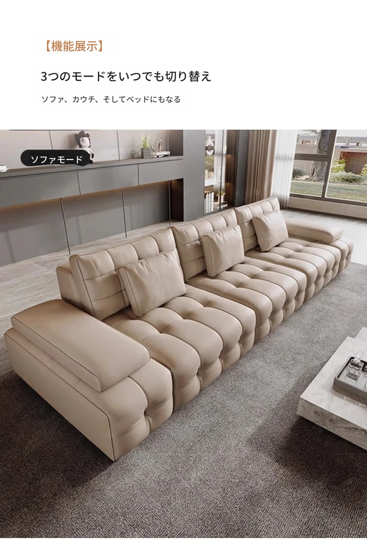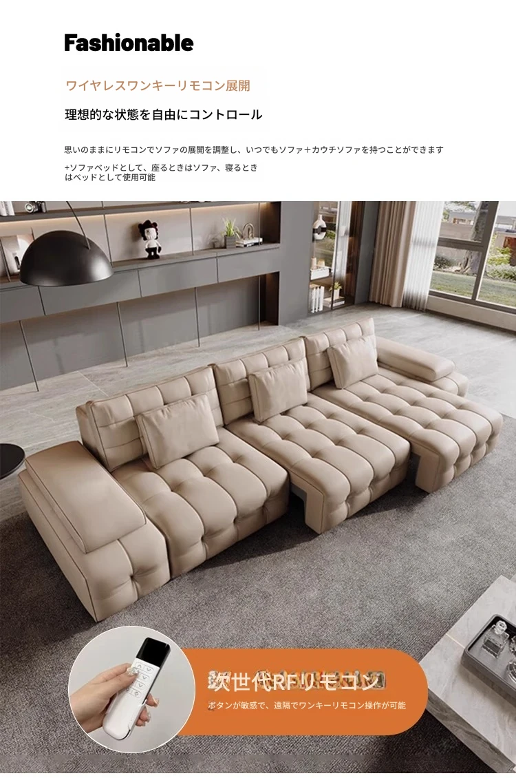 グフィ・ローレンス電動本革ソファ|シンプルモダンなデザイン|高級牛皮使用|伸縮機能付き|リビングに最適な2WAYソファベッド