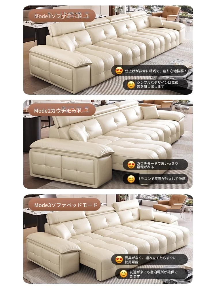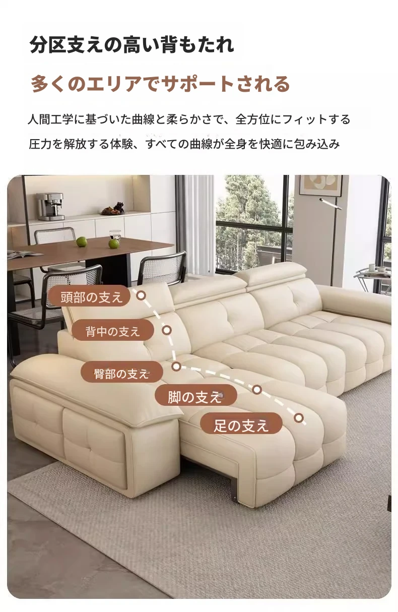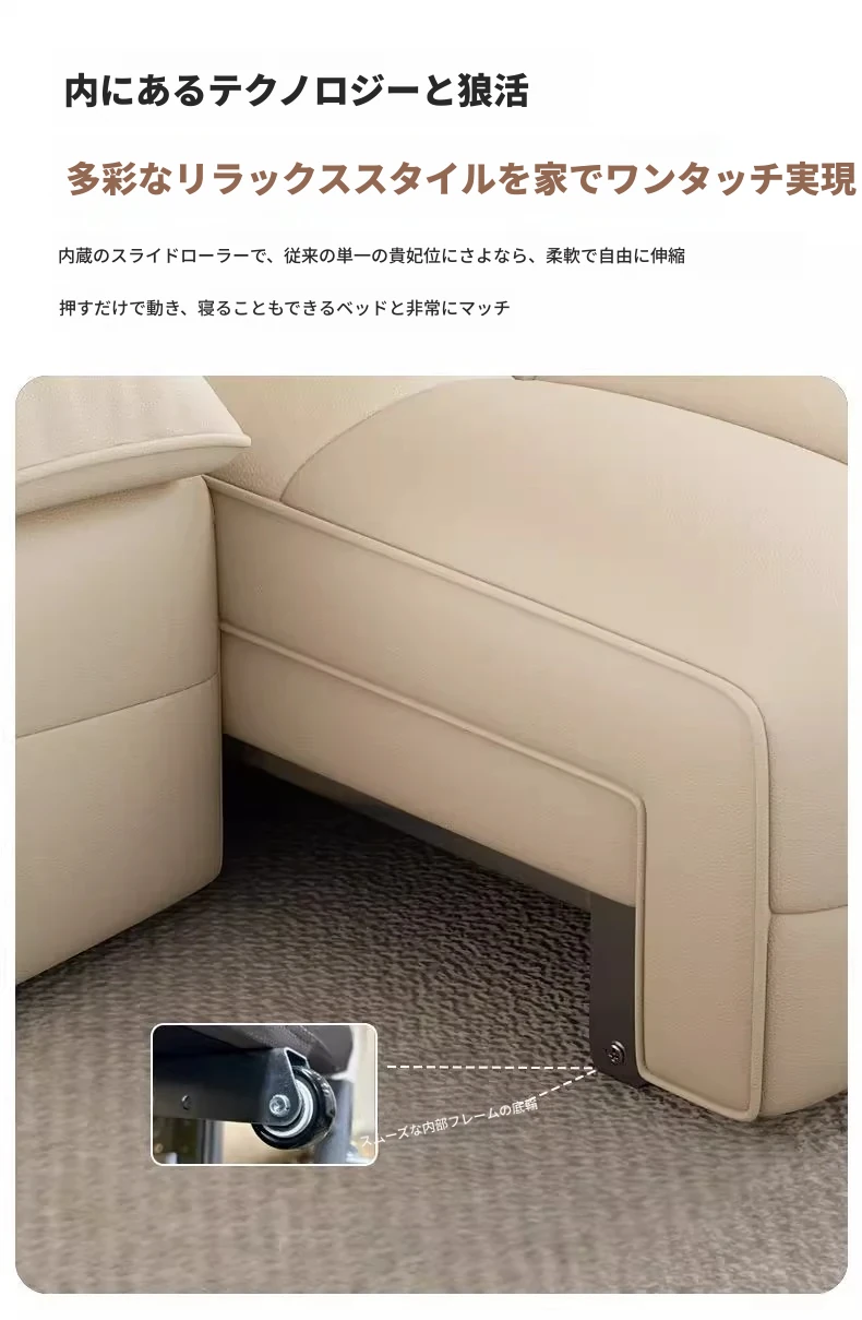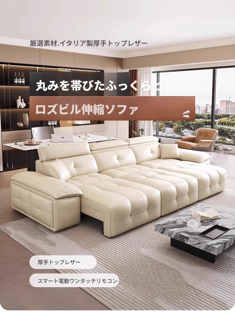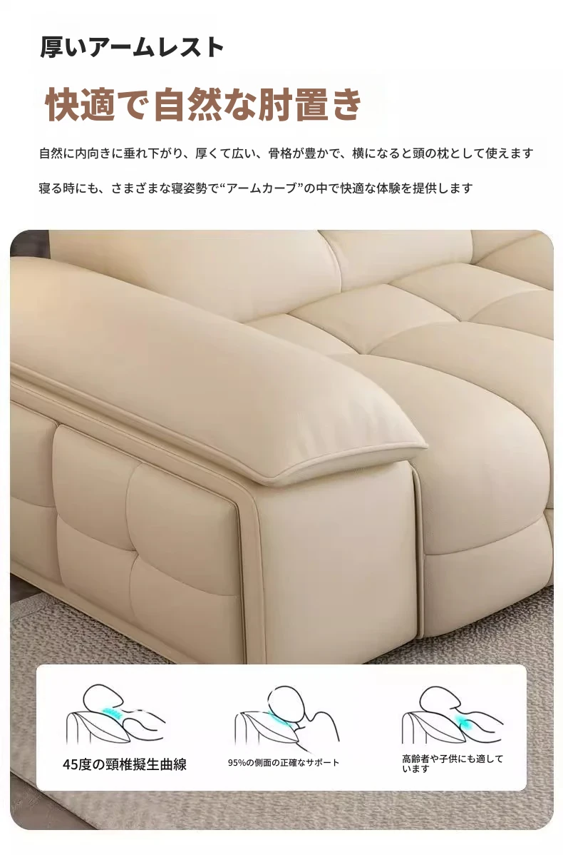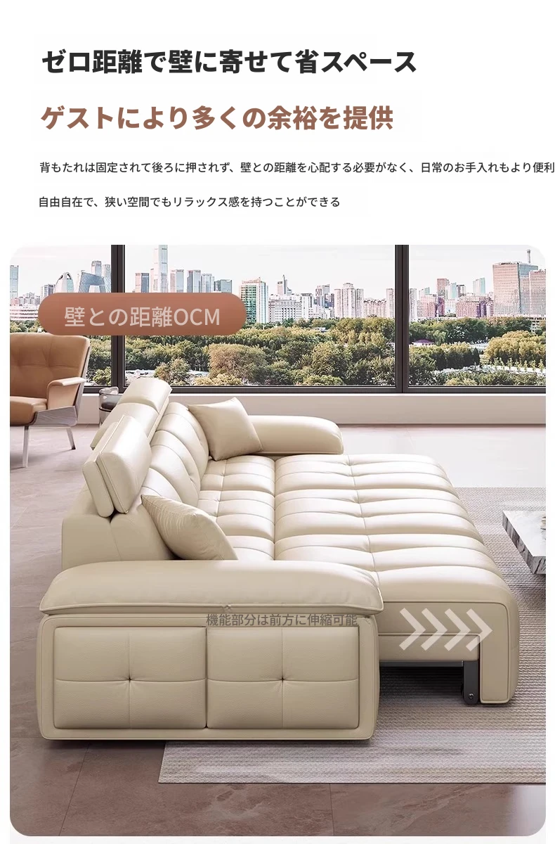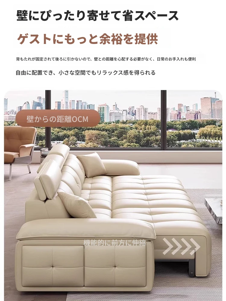 グーフェイ レトロクリーム風 電動本革ソファ リビング用 モダンシンプル 機能的 伸縮式2WAYソファベッド - 快適な眠りとおしゃれな空間を実現!