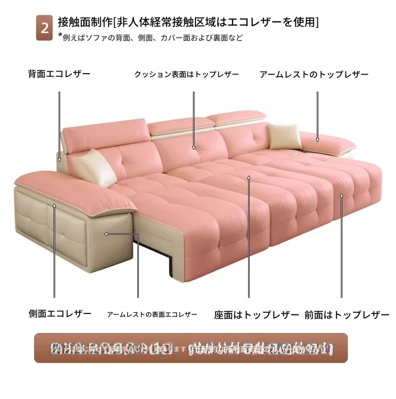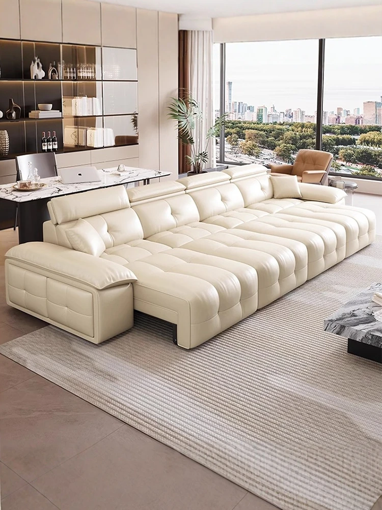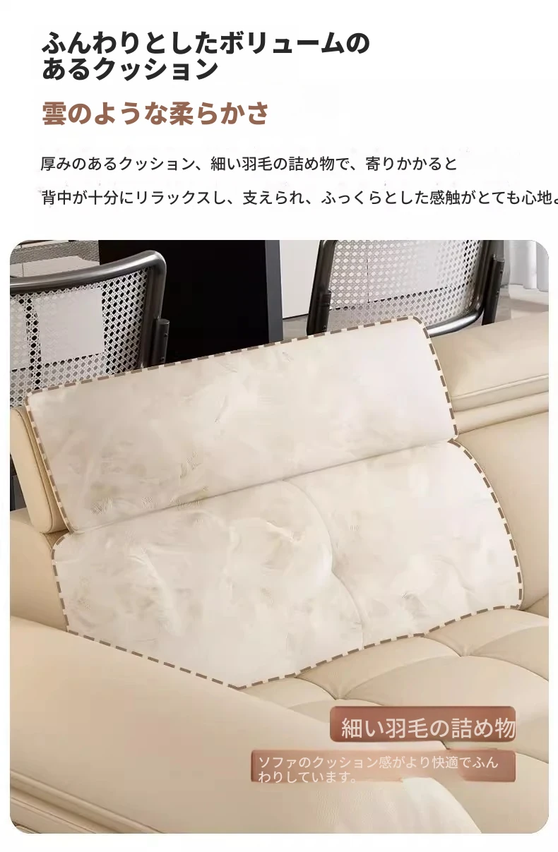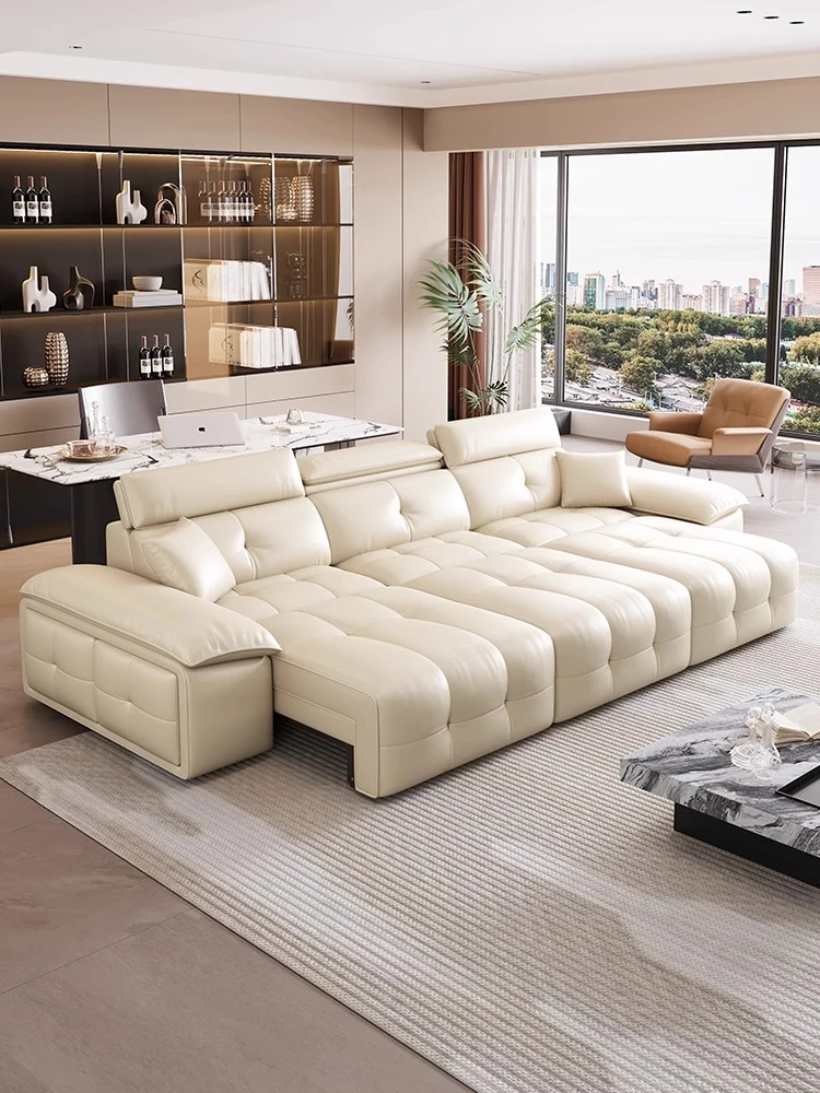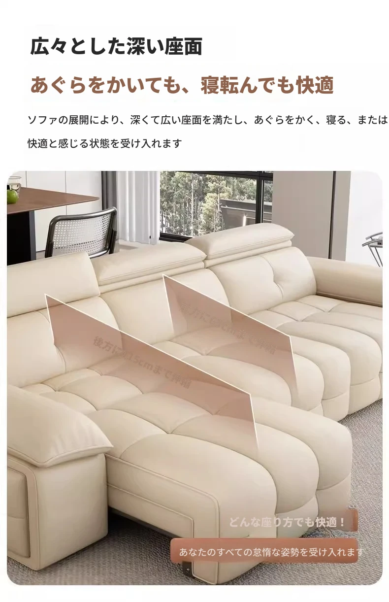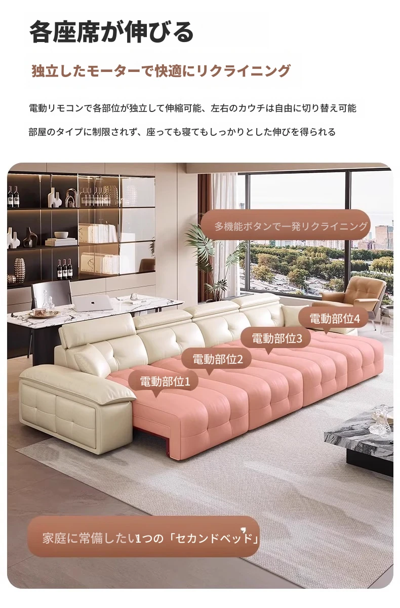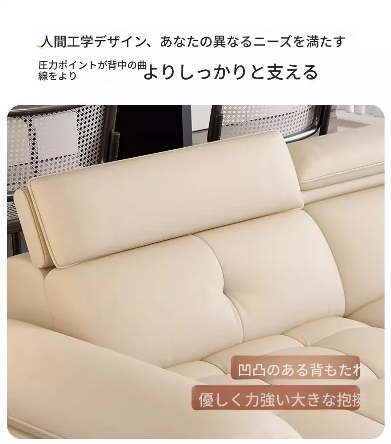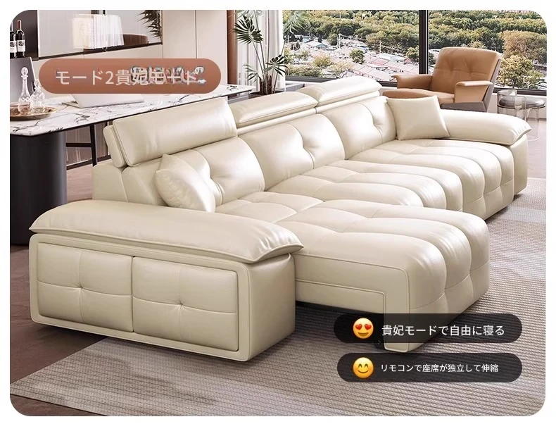 グーフェイ レトロクリーム風 電動本革ソファ リビング用 モダンシンプル 機能的 伸縮式2WAYソファベッド - 快適な眠りとおしゃれな空間を実現!