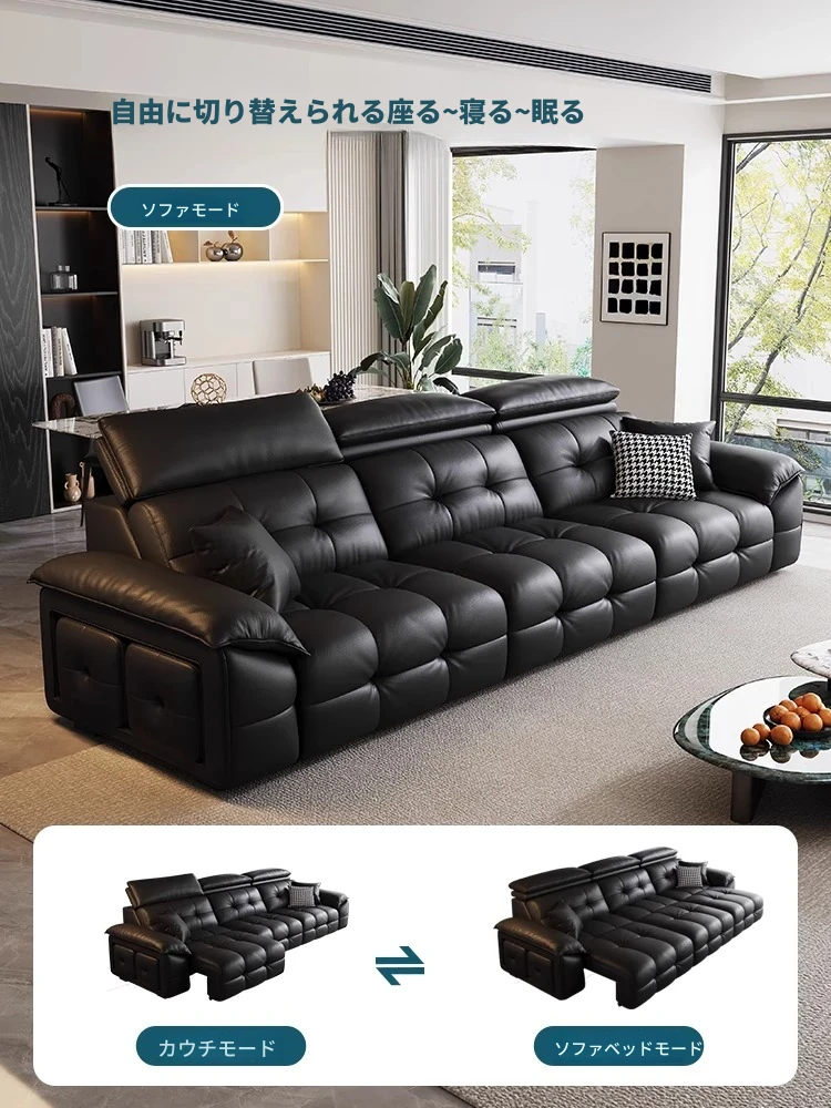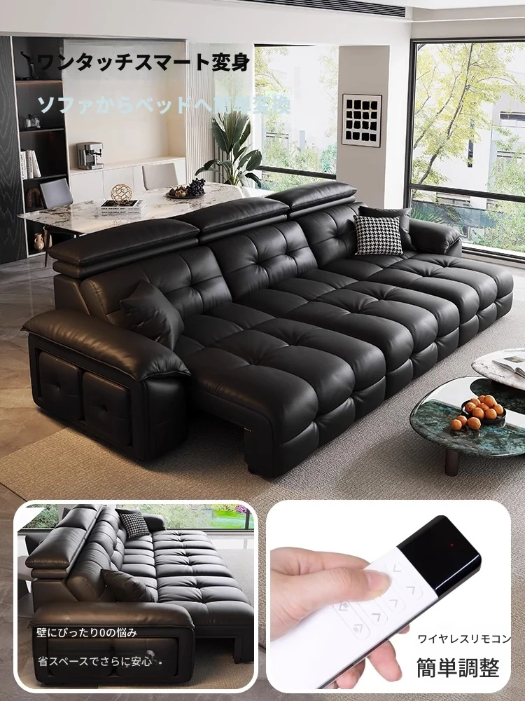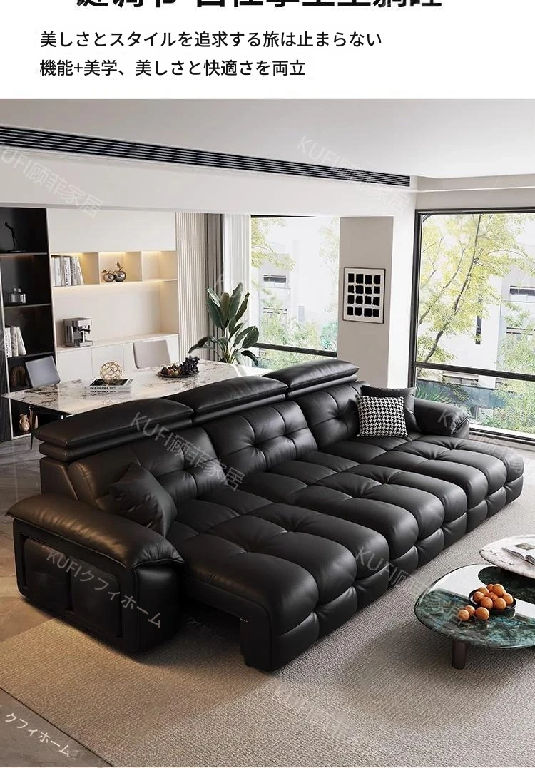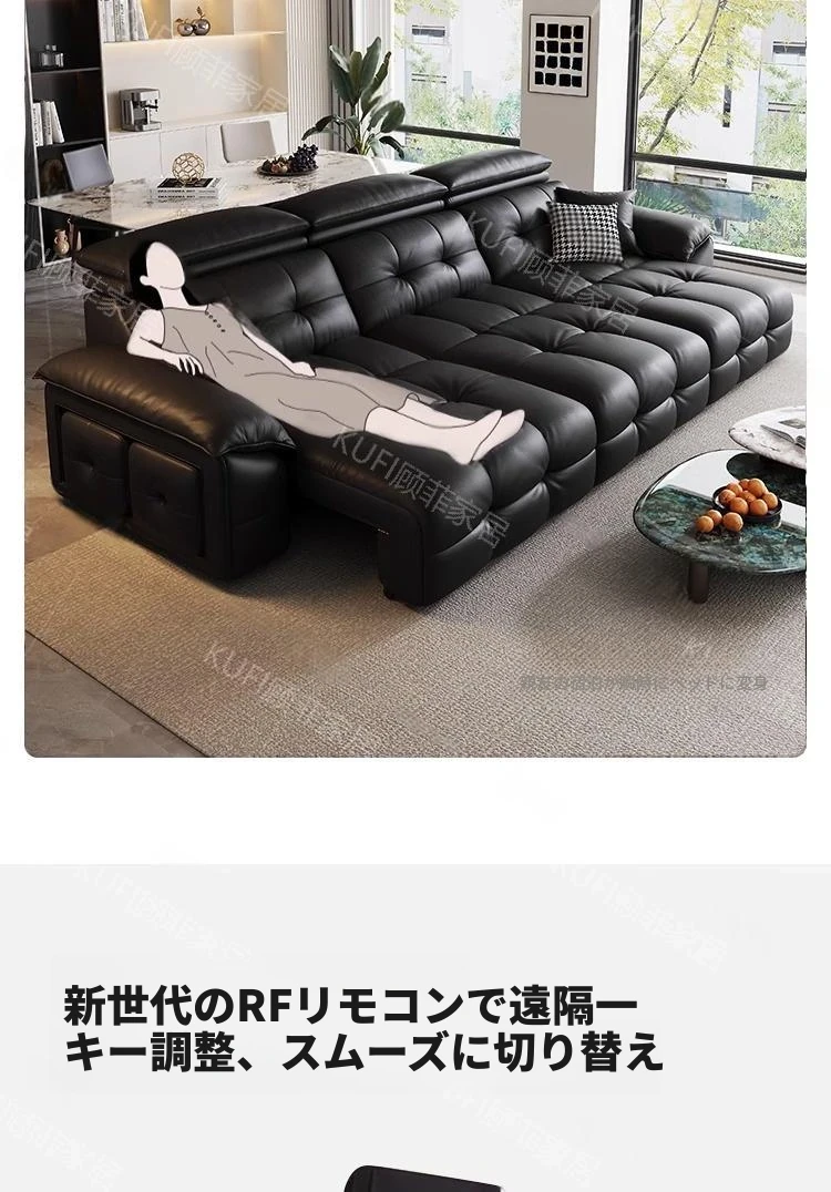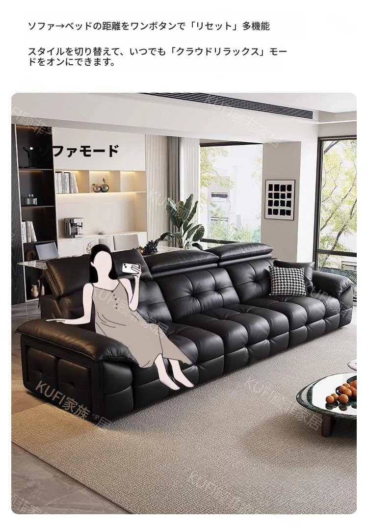 グーフェイ イタリアン ローレンス 本革電動ソファ モダンレトロデザイン 伸縮機能付き 二用ソファベッド - 快適なリビング空間を演出!