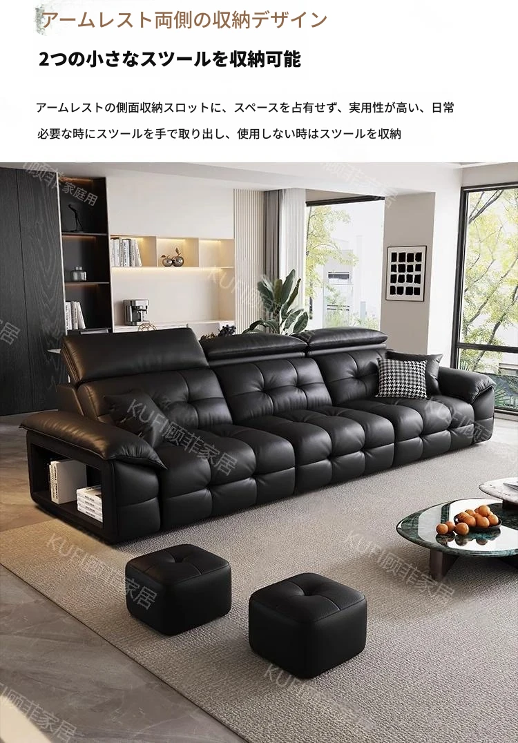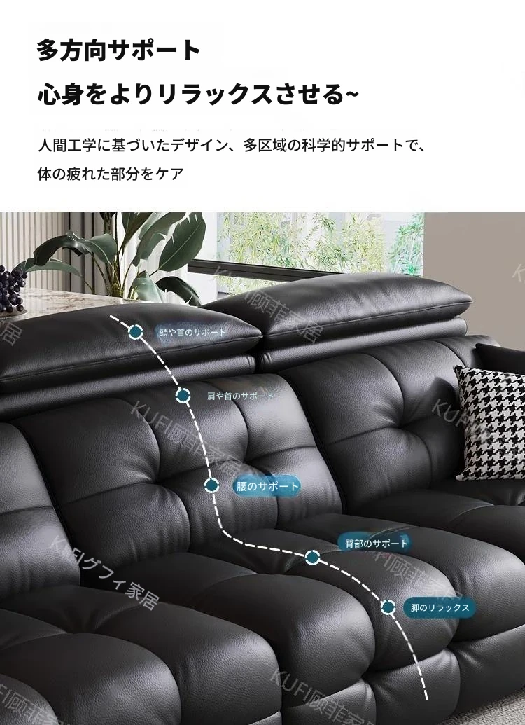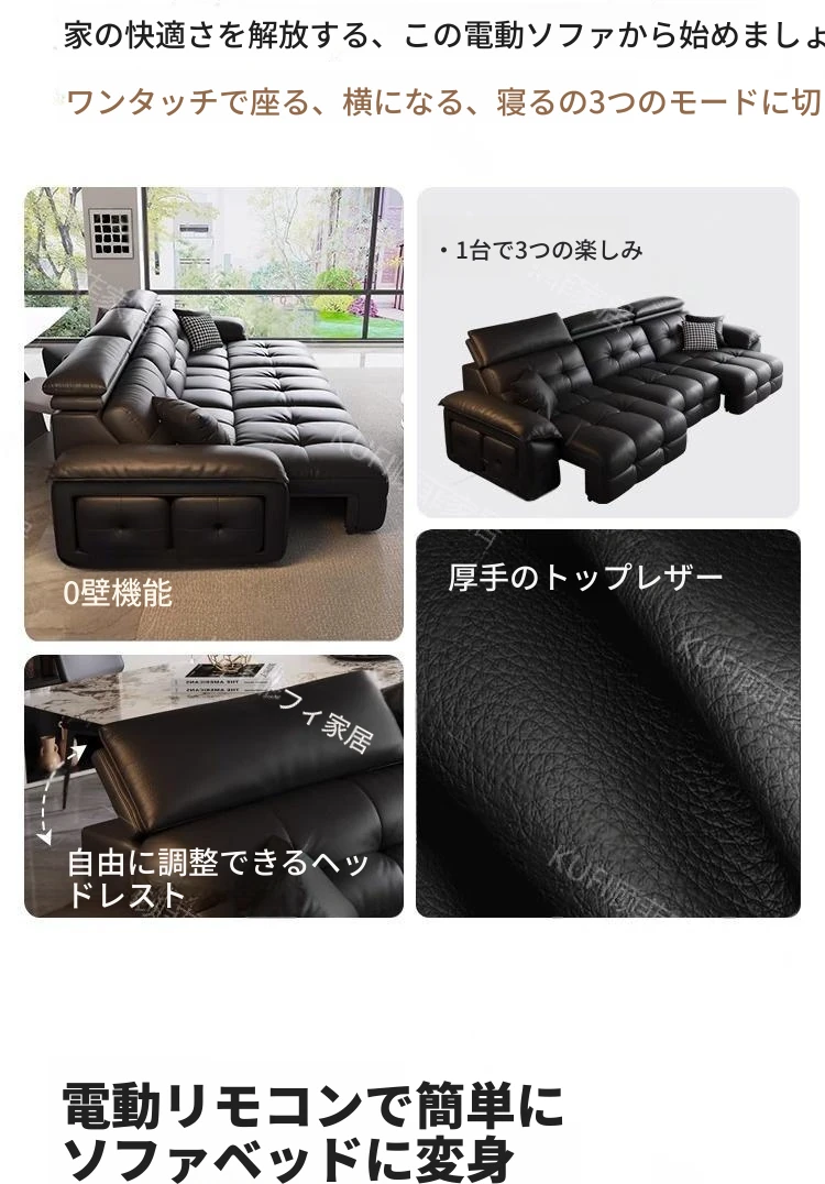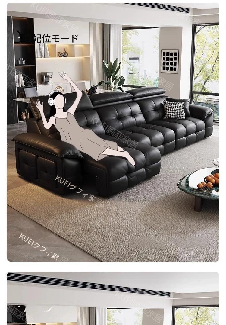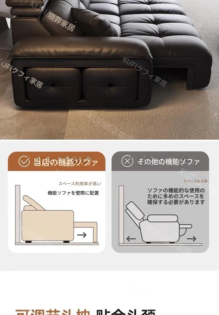 グーフェイ イタリアン ローレンス 本革電動ソファ モダンレトロデザイン 伸縮機能付き 二用ソファベッド - 快適なリビング空間を演出!