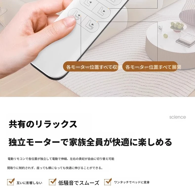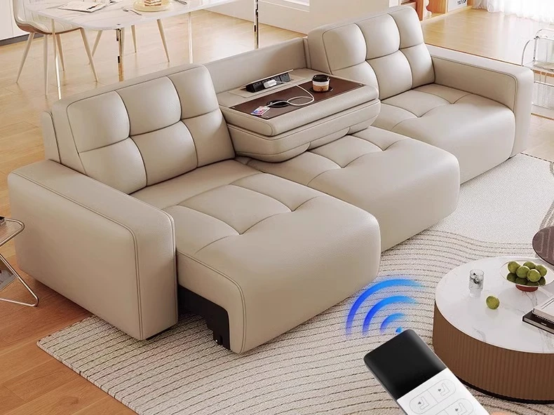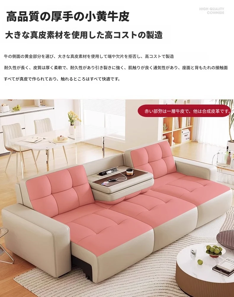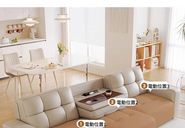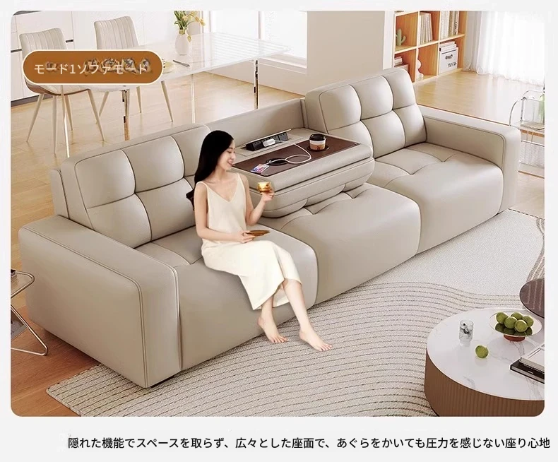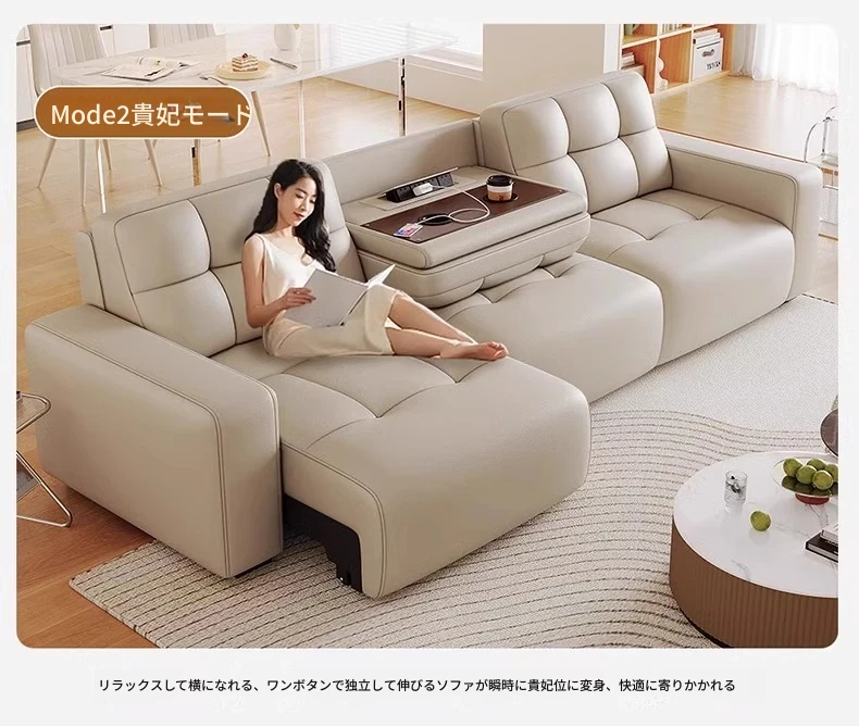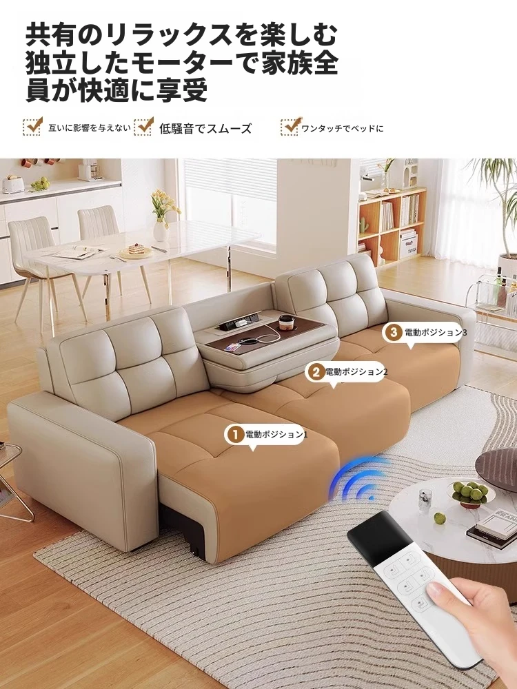 3.78メートル直列四人用ソファ+跳ね上げテーブル【四電動】リモコン1ボタン操作