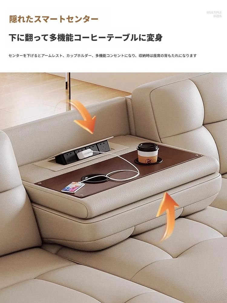 4.46メートル直列四人用ソファ+跳ね上げテーブル【四電動】リモコン1ボタン操作
