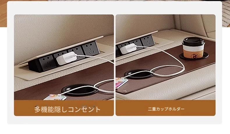 4.18メートル直列四人用ソファ+跳ね上げテーブル【四電動】リモコン1ボタン操作