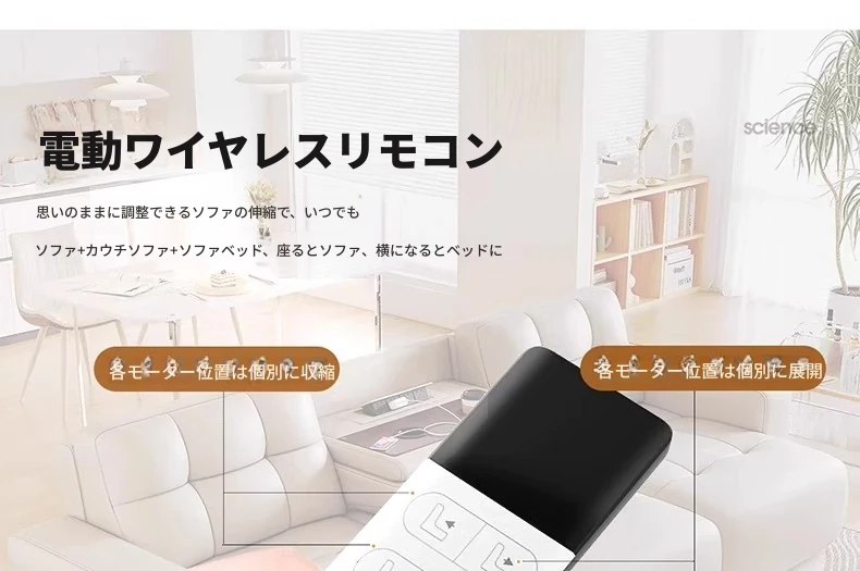 3.46メートル直列三人用ソファ【三電動】リモコン1ボタン操作