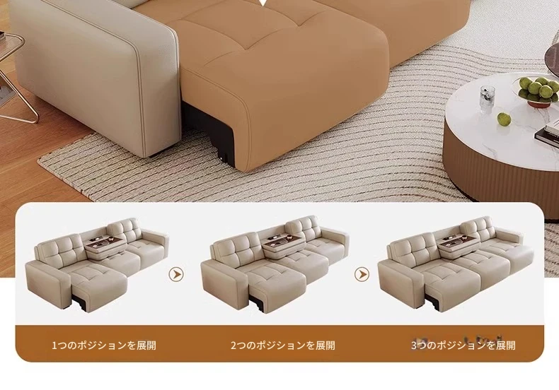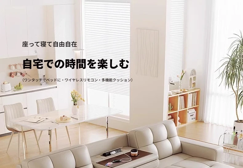2.65メートル直列三人用ソファ+跳ね上げテーブル【三電動】リモコン1ボタン操作