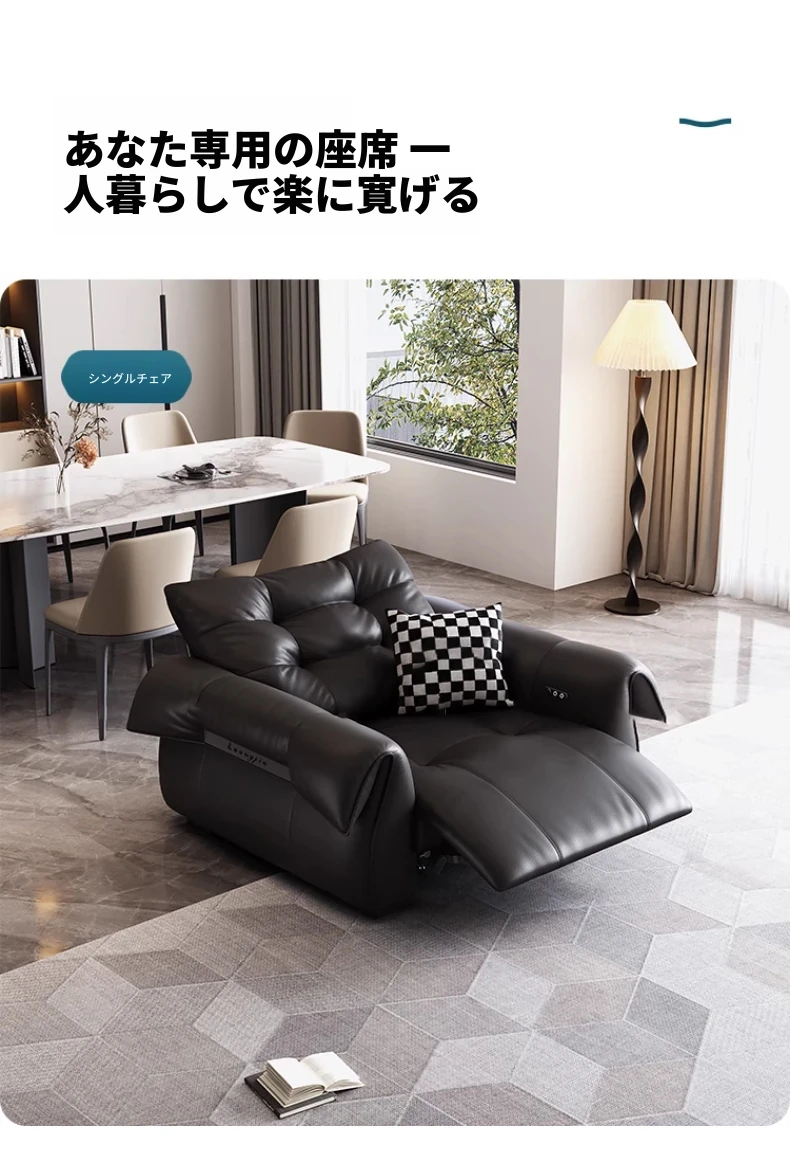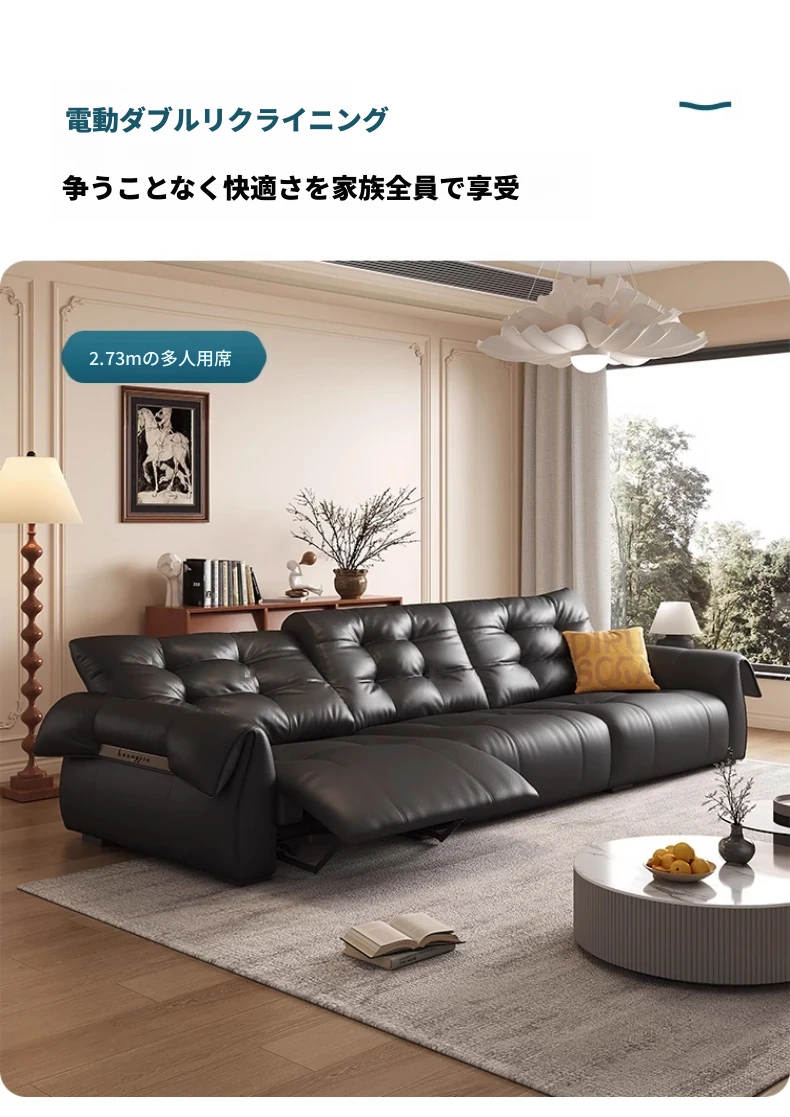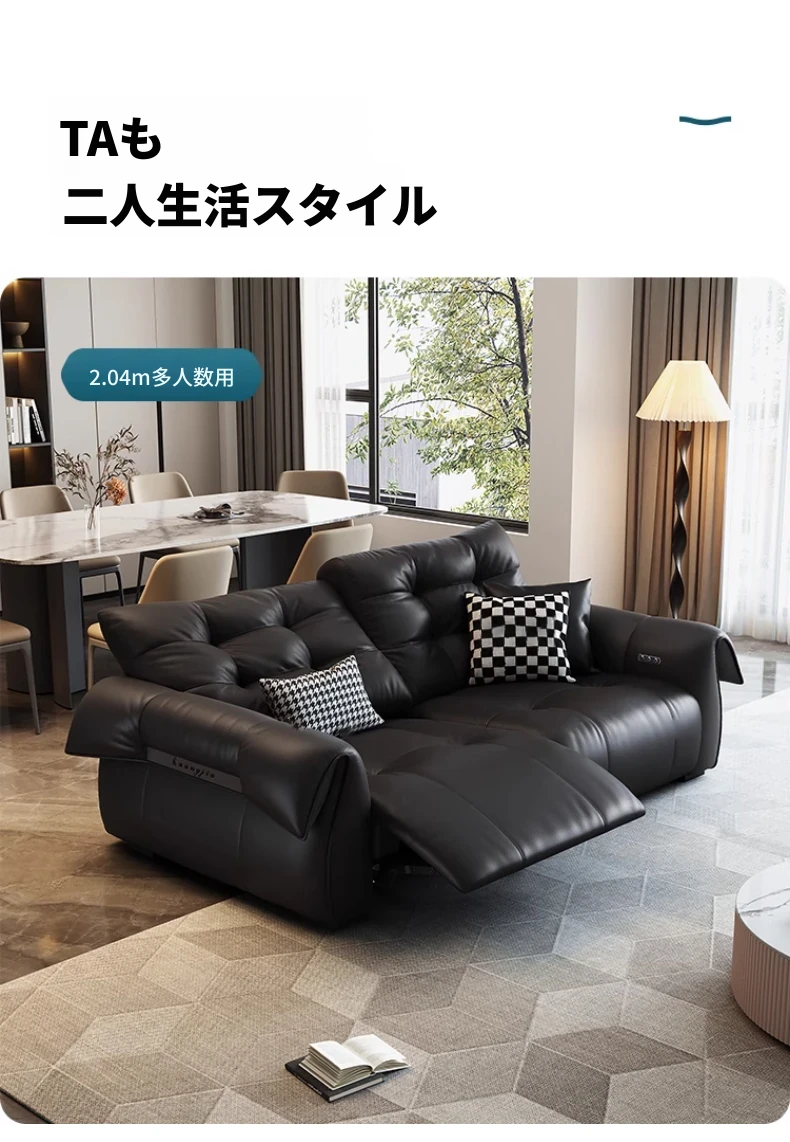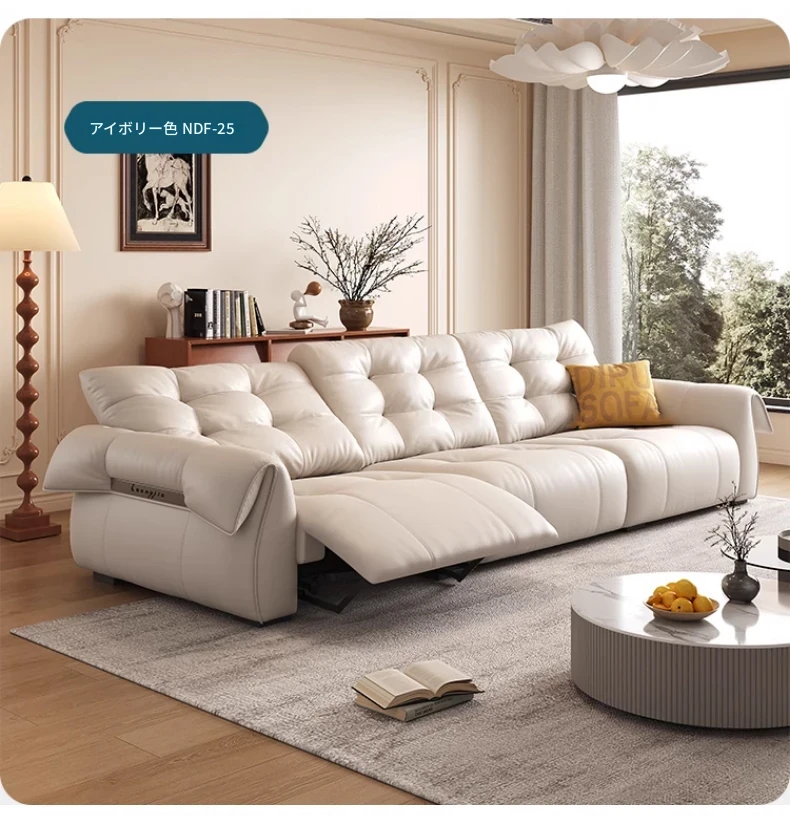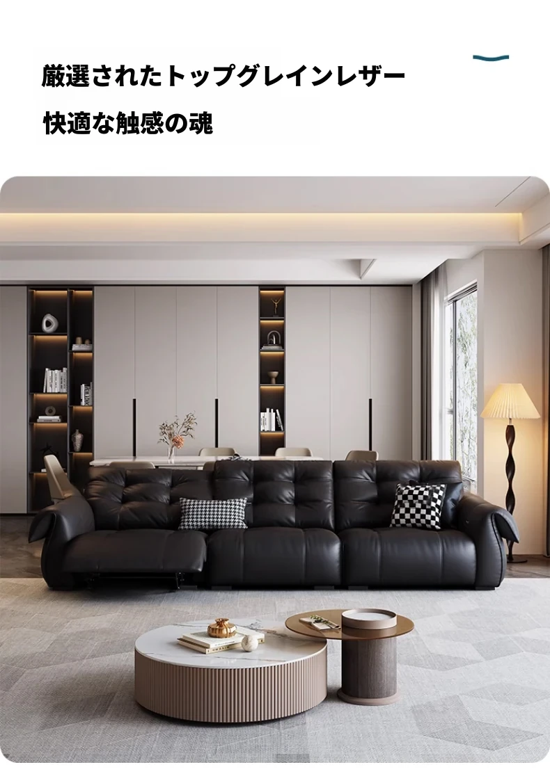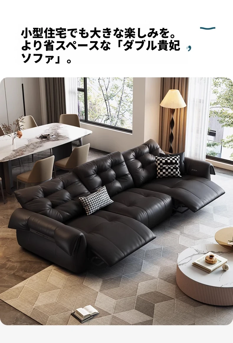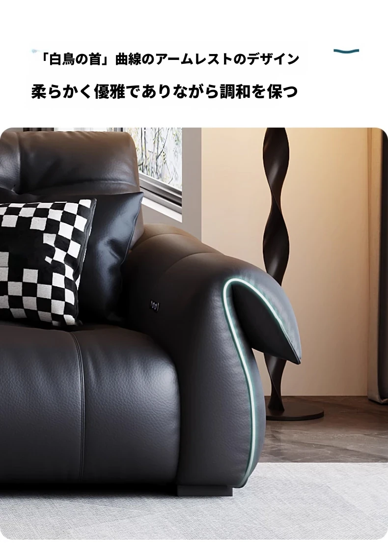 ヘレンシャンヌ 電動多機能ソファ リビング用 イタリアンミニマリズム スワンソファ 伸縮式 調整可能 本革ソファ - 贅沢な快適さとスタイリッシュなデザインで、あなたのリビングを華やかに演出します!