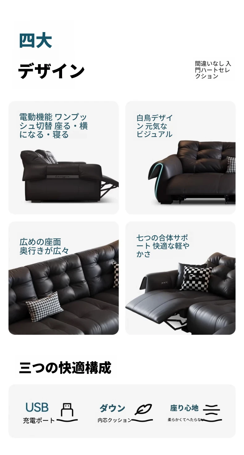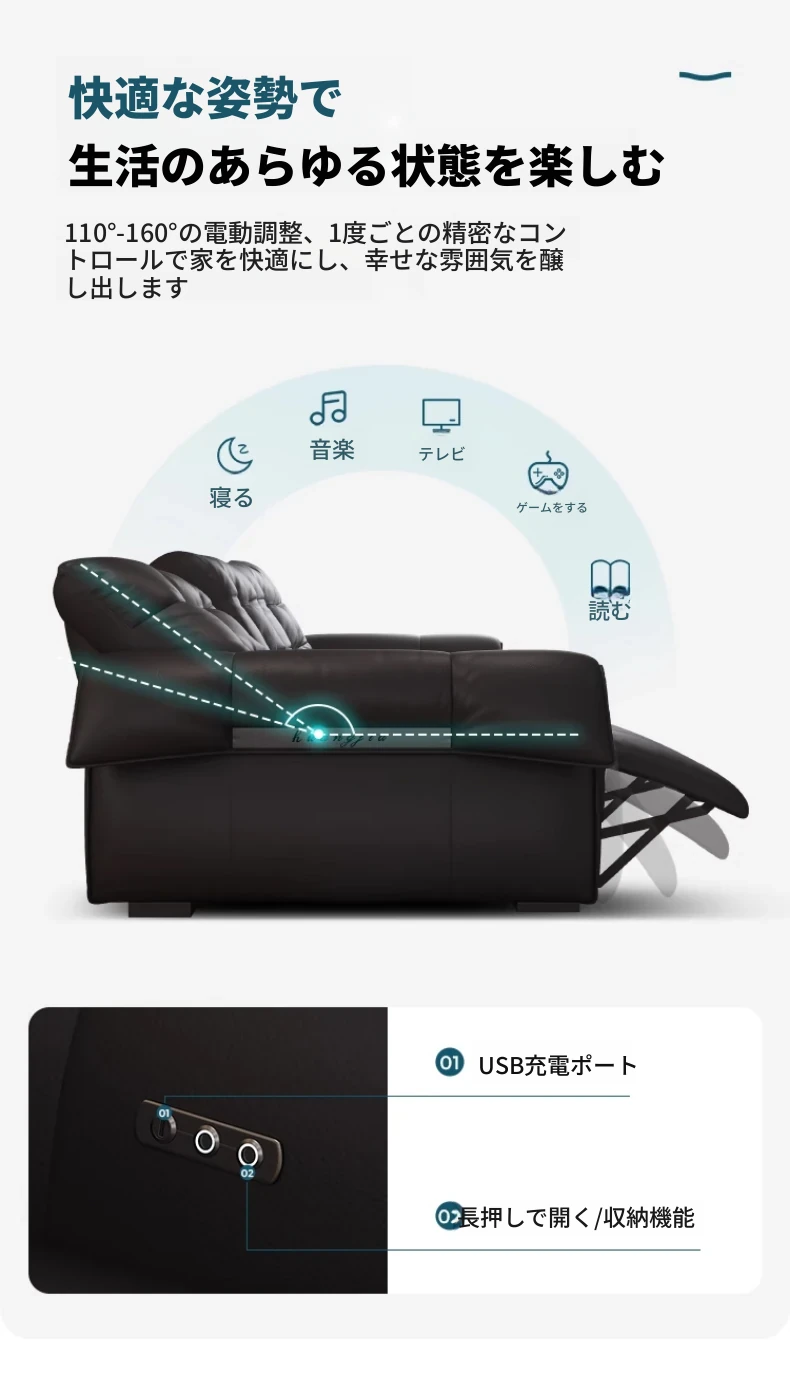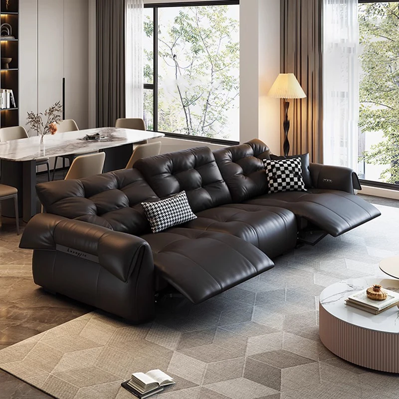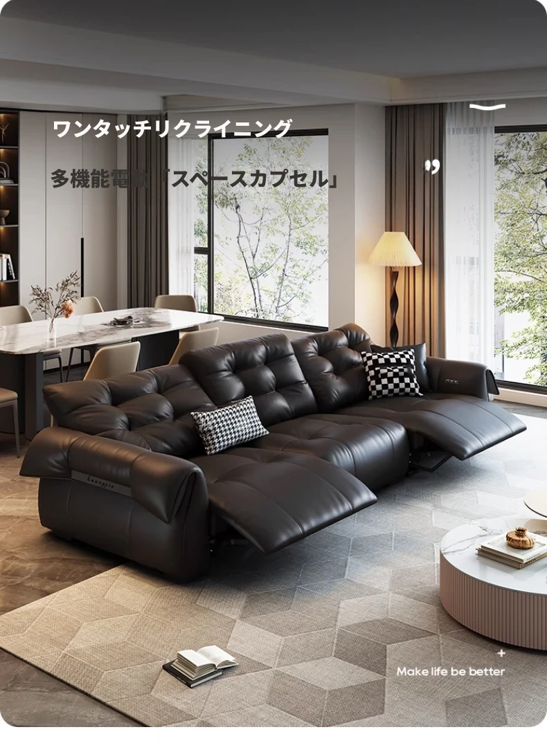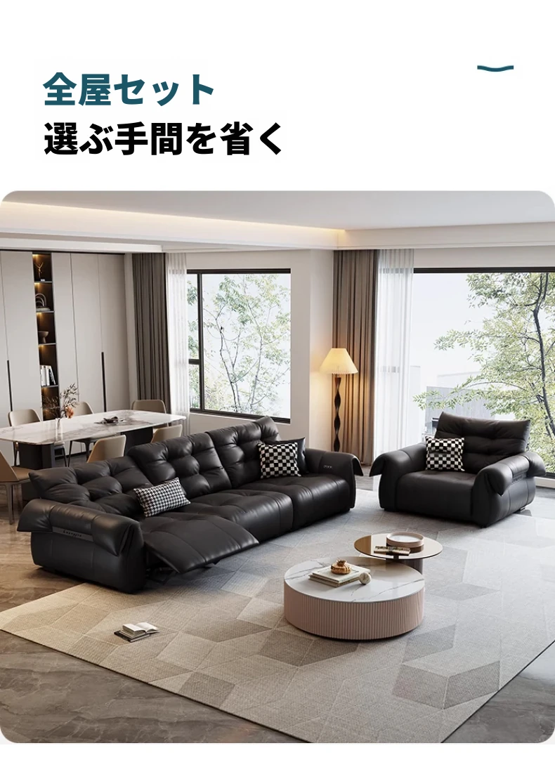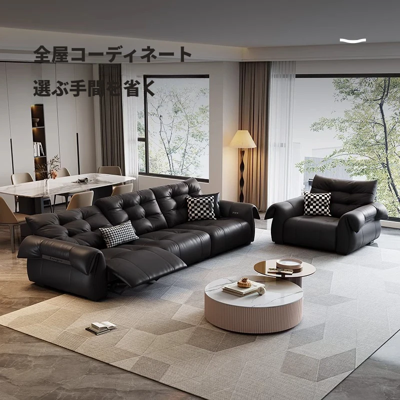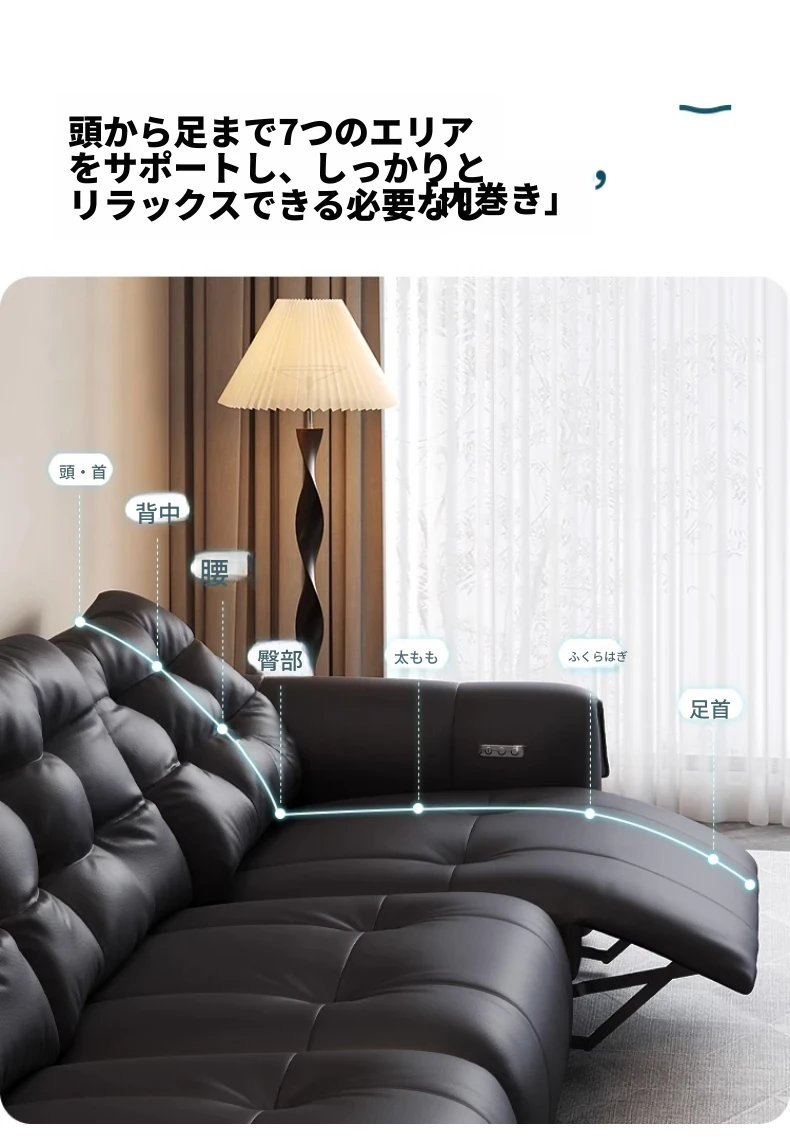 ヘレンシャンヌ 電動多機能ソファ リビング用 イタリアンミニマリズム スワンソファ 伸縮式 調整可能 本革ソファ - 贅沢な快適さとスタイリッシュなデザインで、あなたのリビングを華やかに演出します!