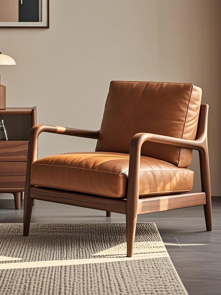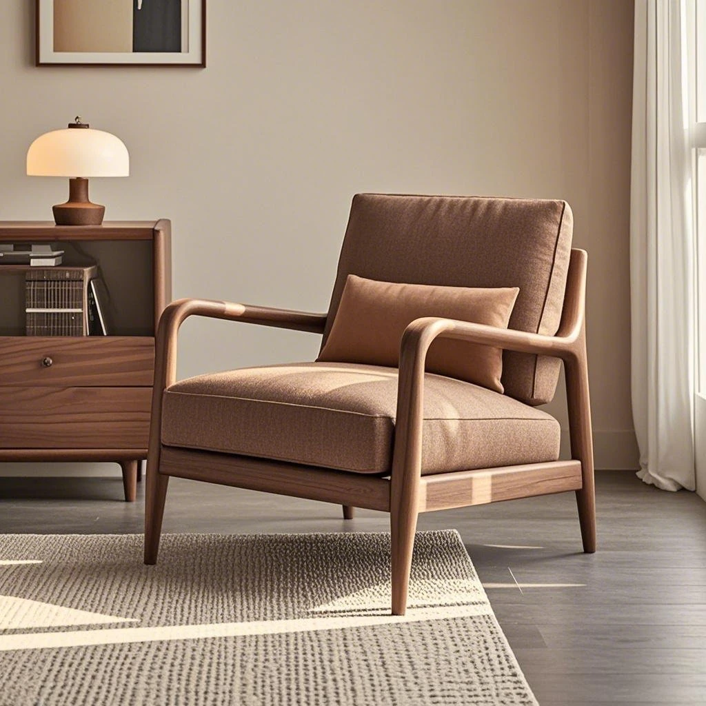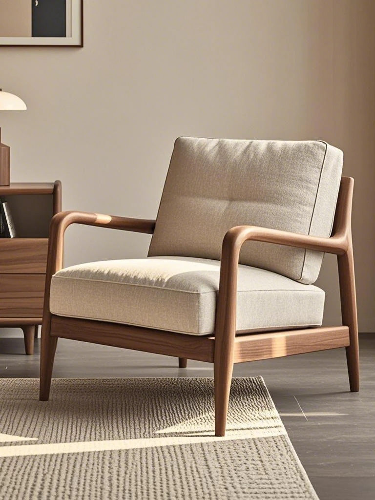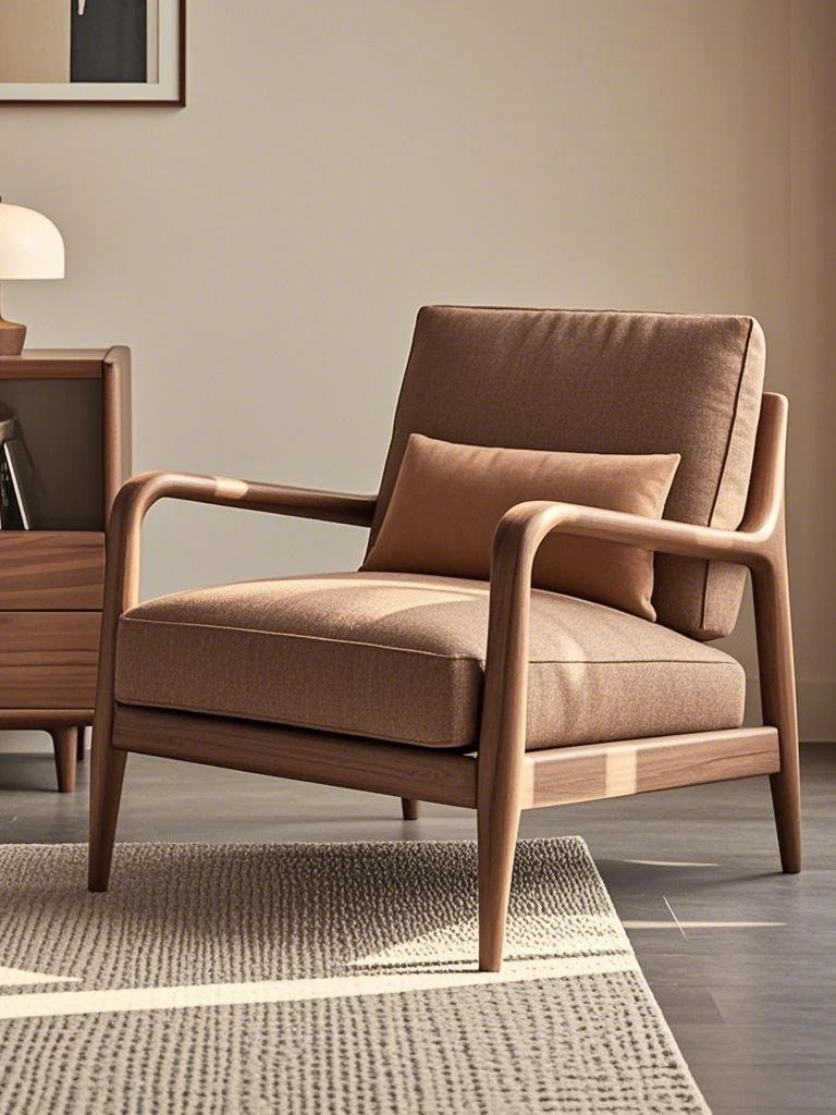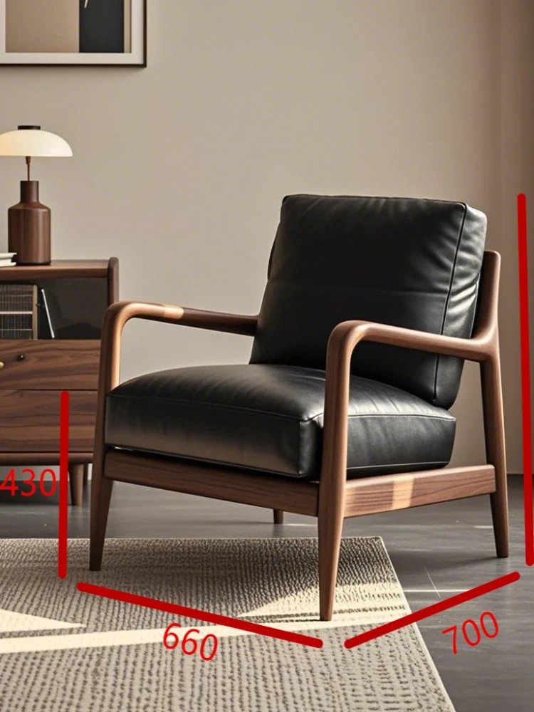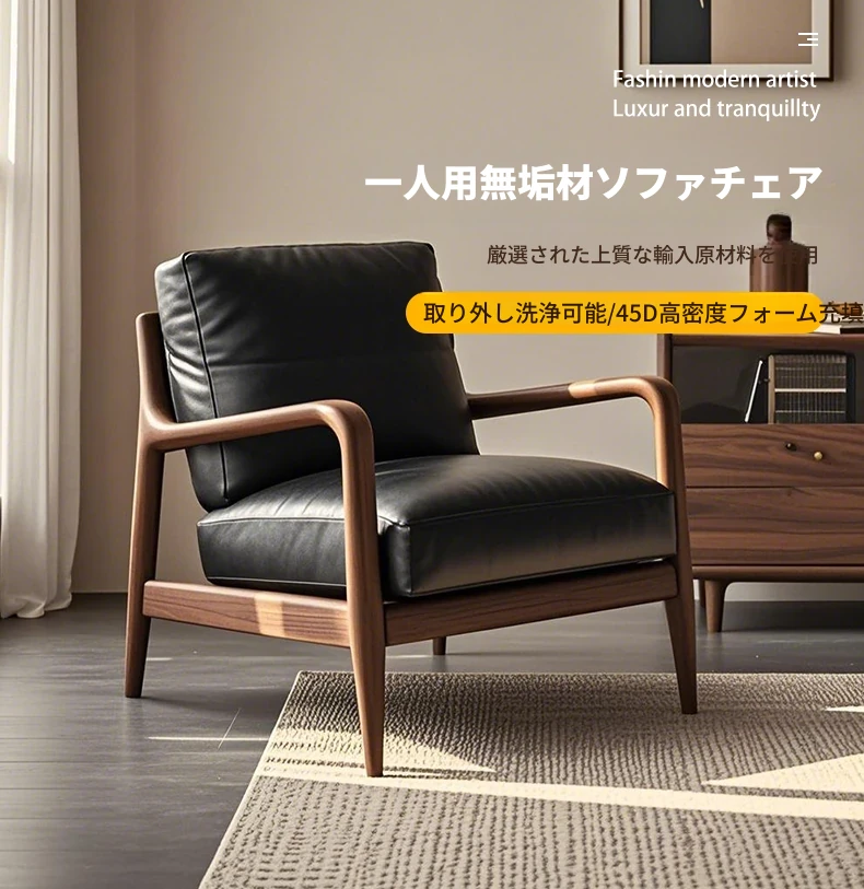 高級デザインの黒胡桃無垢材ソファチェア - モダンでシンプルな家用リラックスチェア。洗練されたスタイルで、居心地の良い空間を演出します!