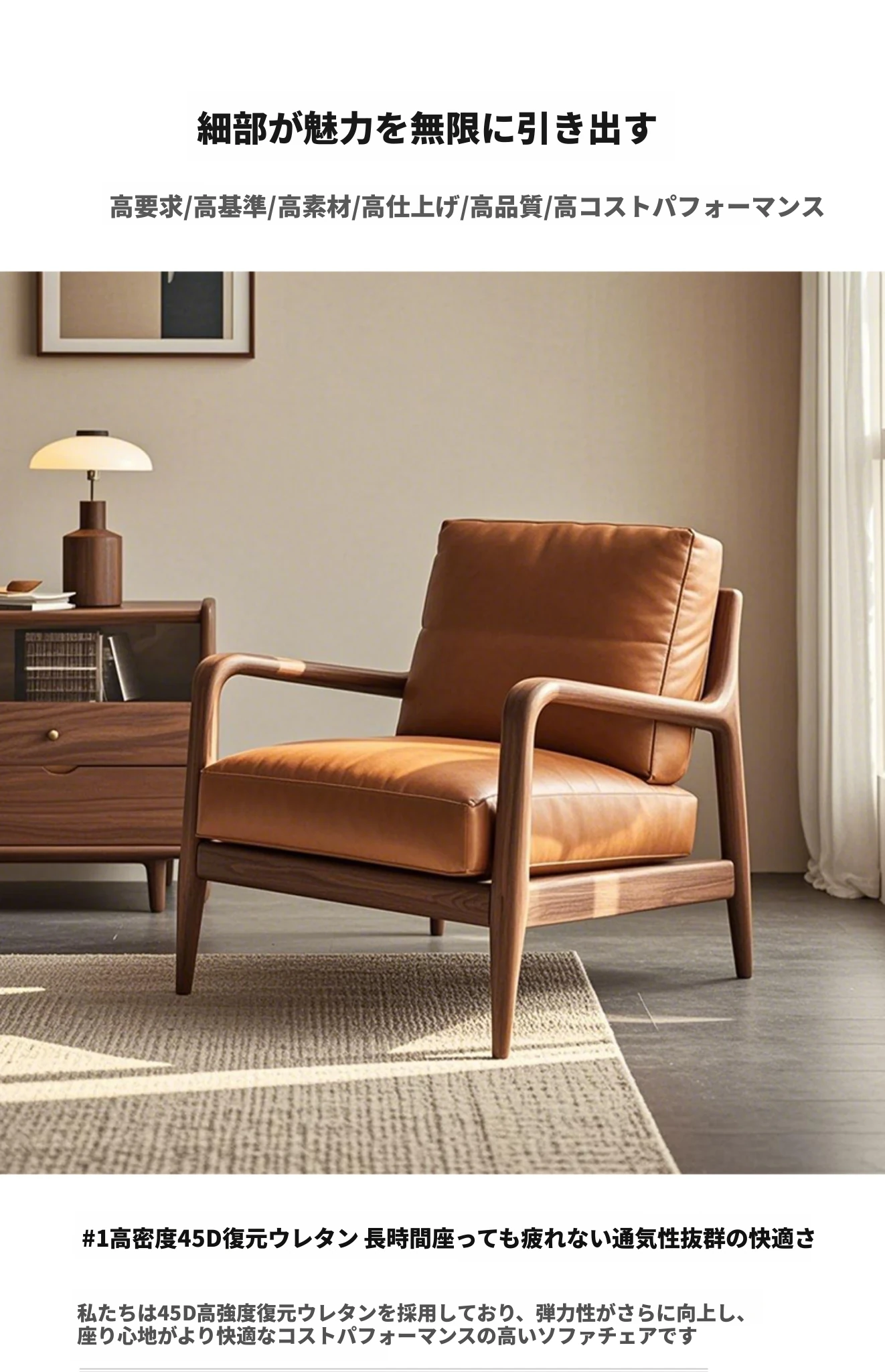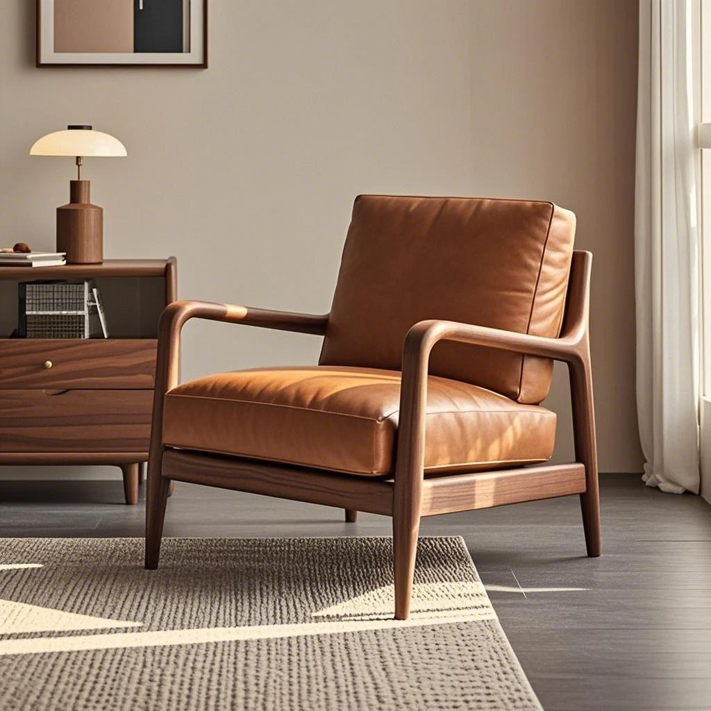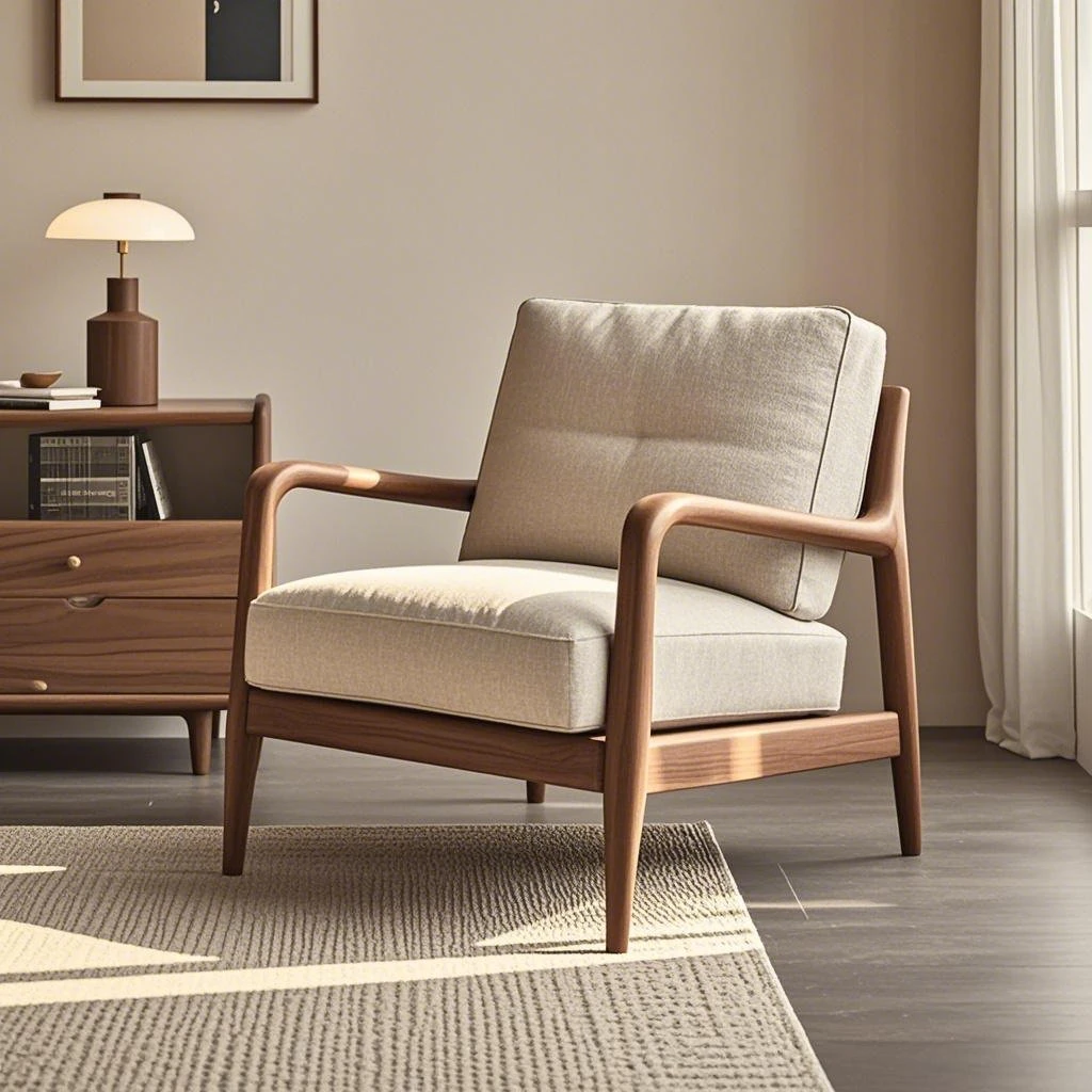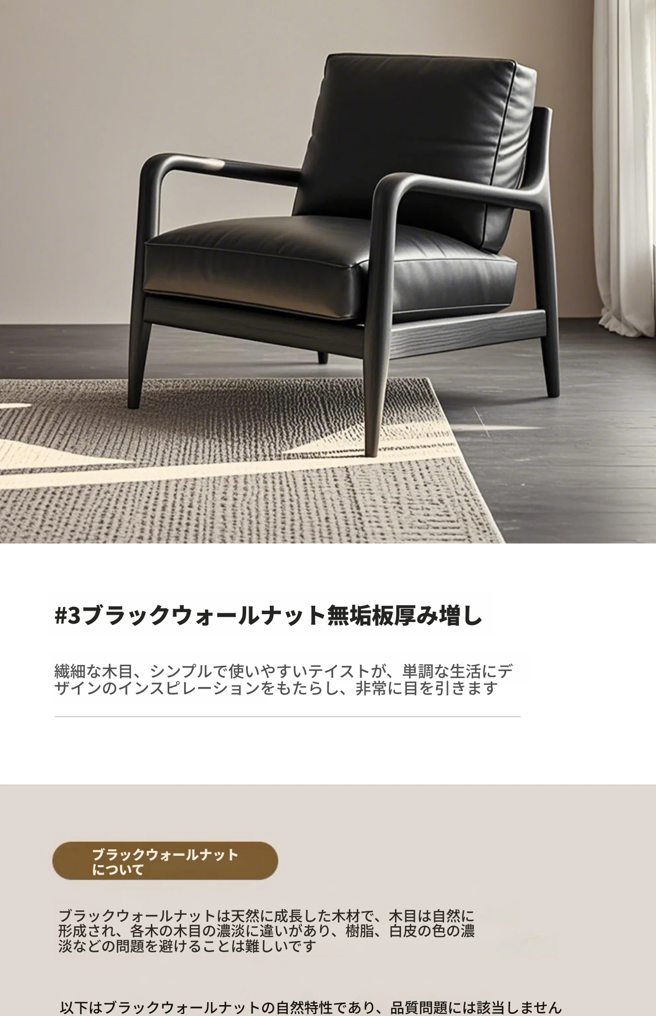 高級デザインの黒胡桃無垢材ソファチェア - モダンでシンプルな家用リラックスチェア。洗練されたスタイルで、居心地の良い空間を演出します!