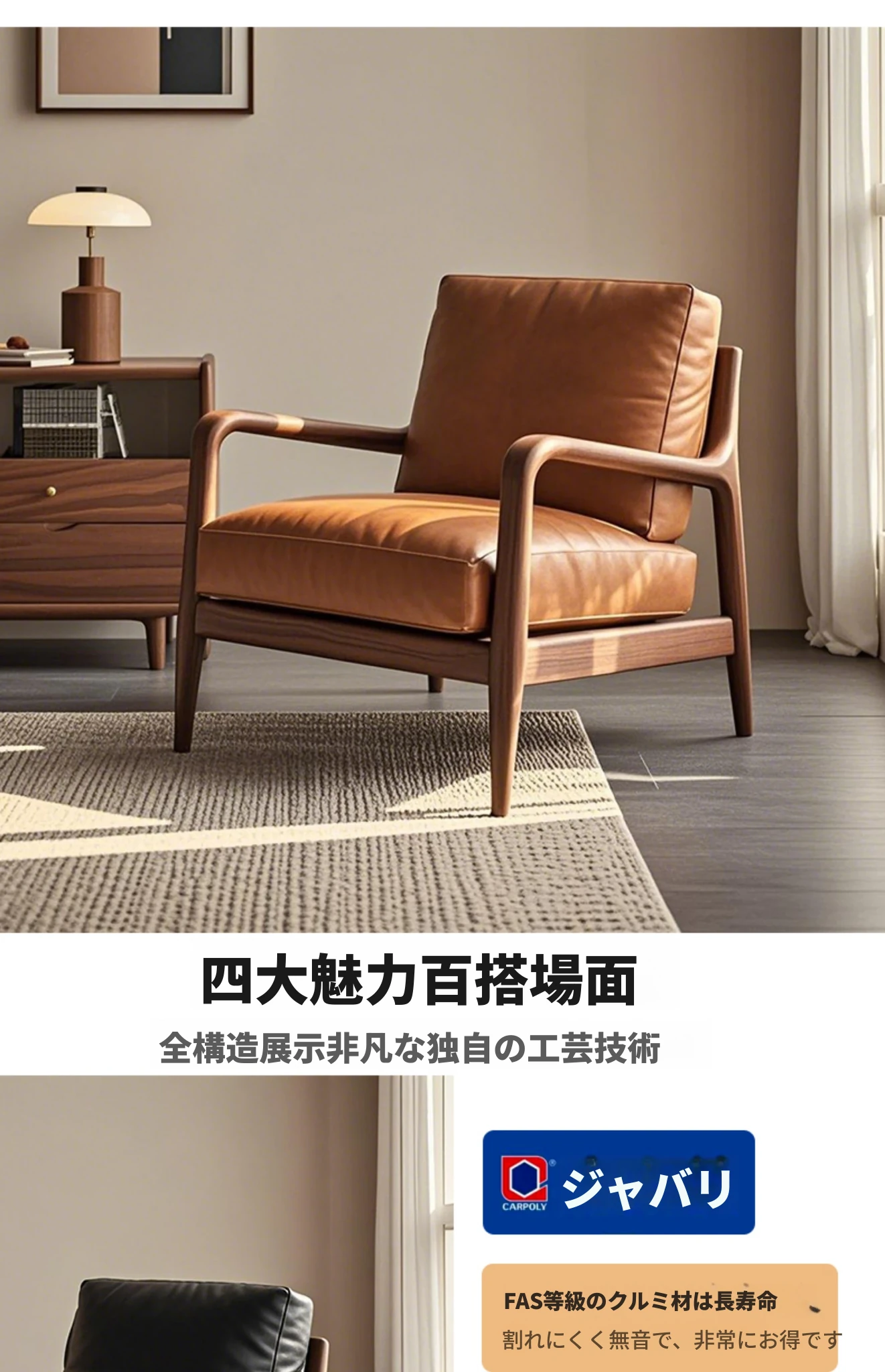 (北米産ブラックウォールナット+黒色トップグレイン牛革)椅子