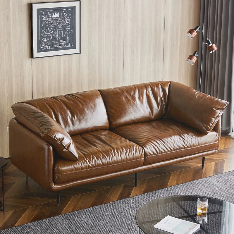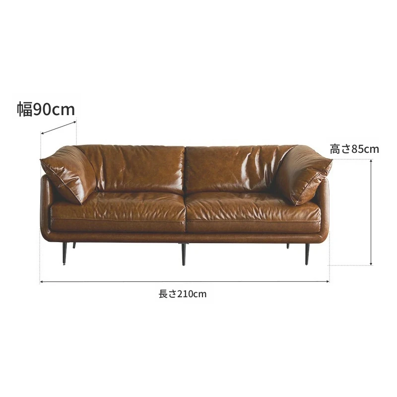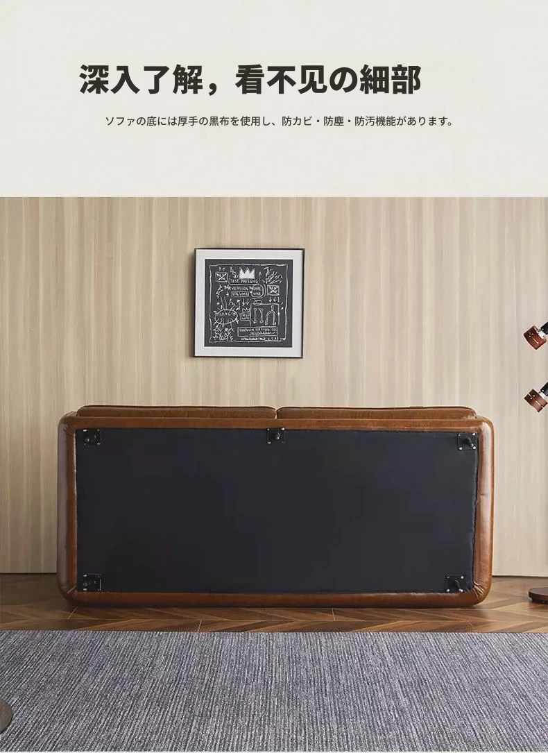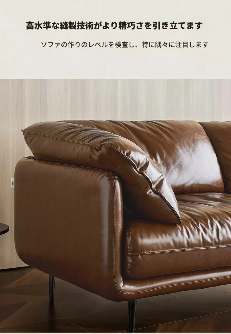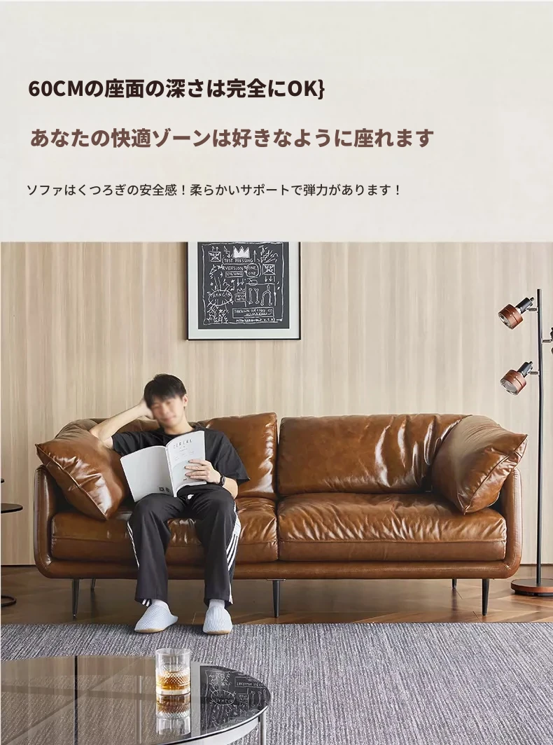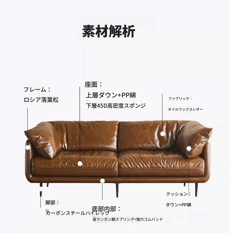 HUG抱き心地よいビンテージオイルワックス本革ソファ、直線デザインの3人掛け、コンパクトなリビングルームにぴったりなレトロスタイル、贅沢なダウンクッションで快適さを追求!