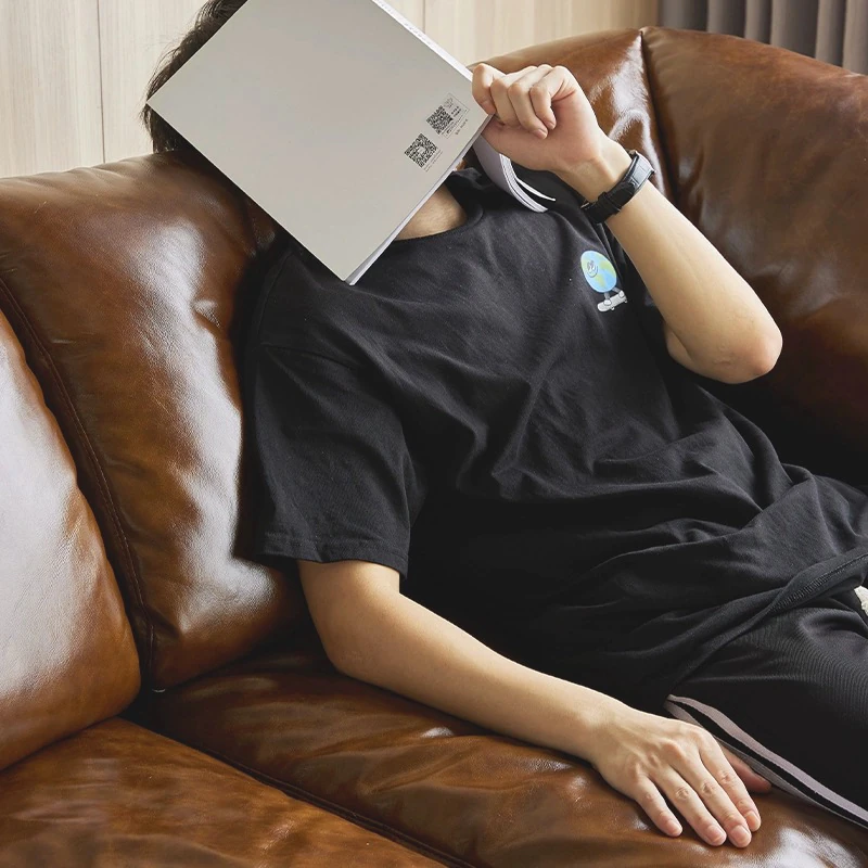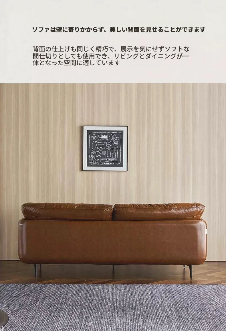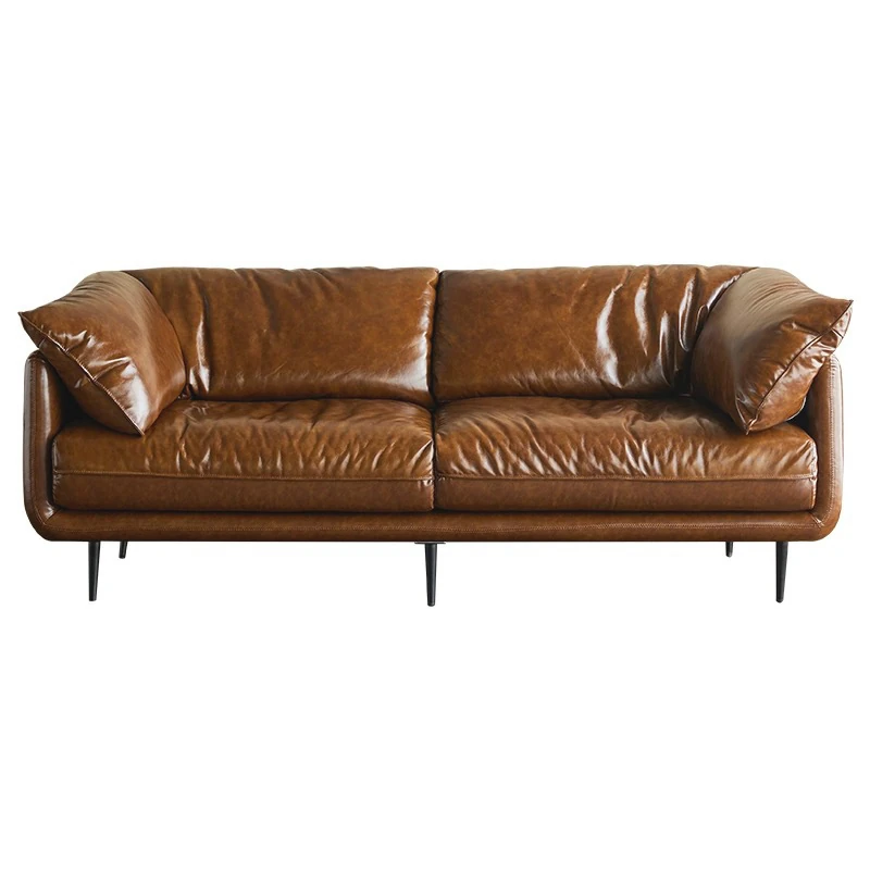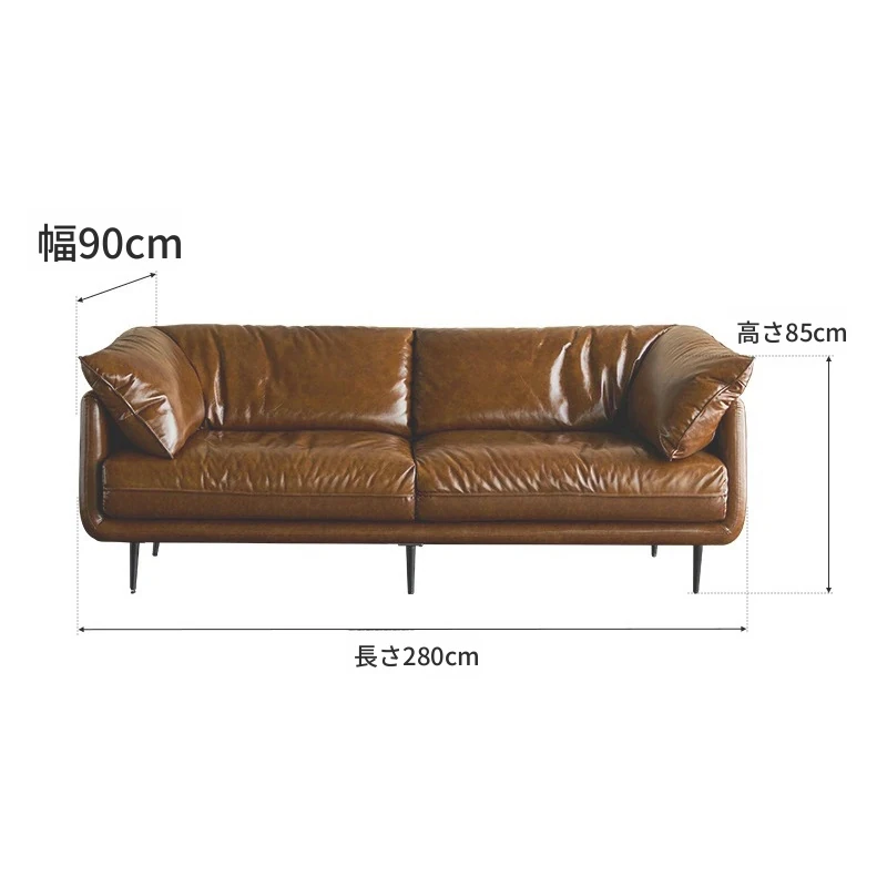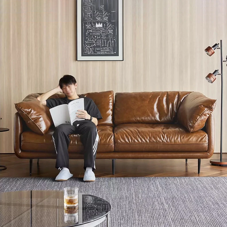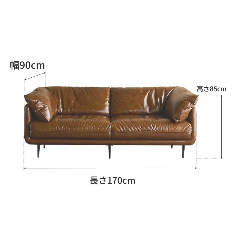 HUG抱き心地よいビンテージオイルワックス本革ソファ、直線デザインの3人掛け、コンパクトなリビングルームにぴったりなレトロスタイル、贅沢なダウンクッションで快適さを追求!