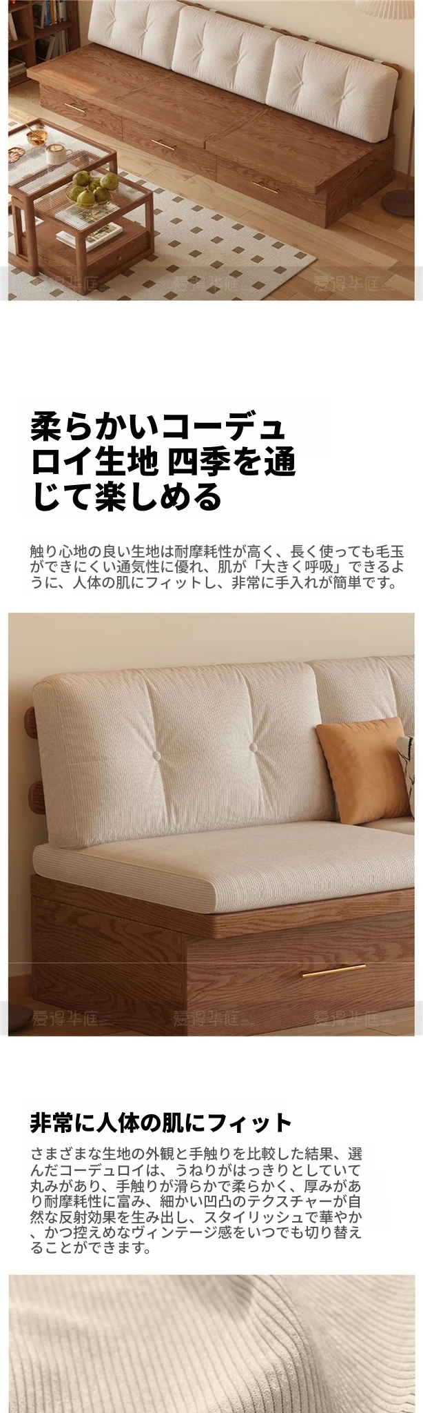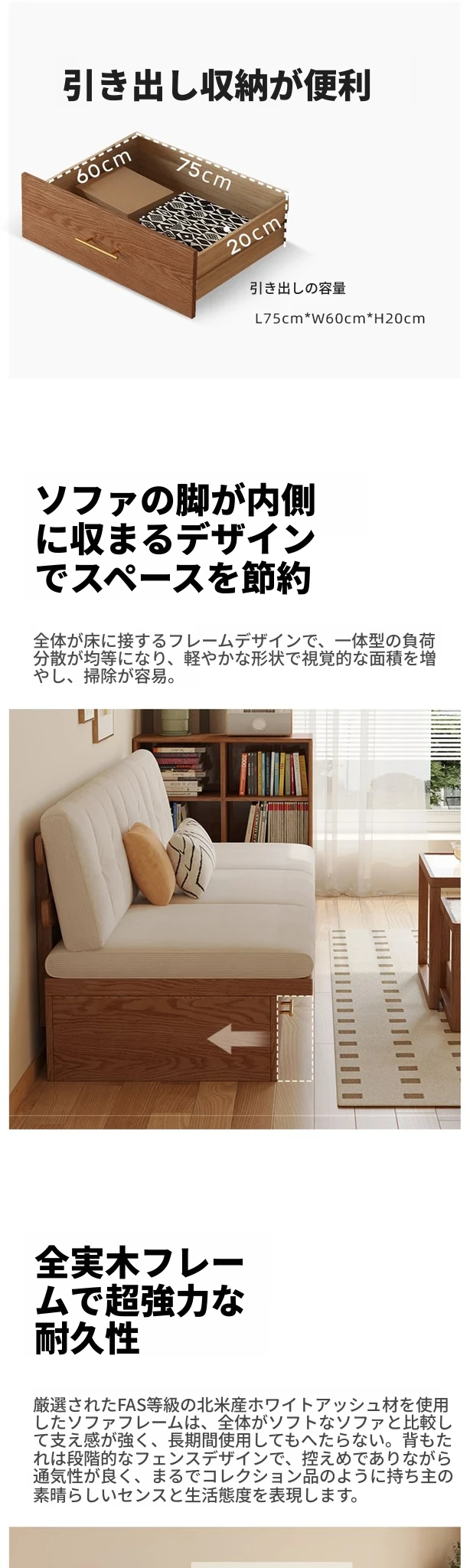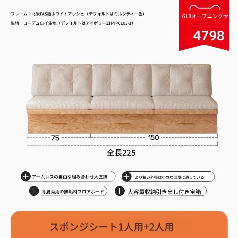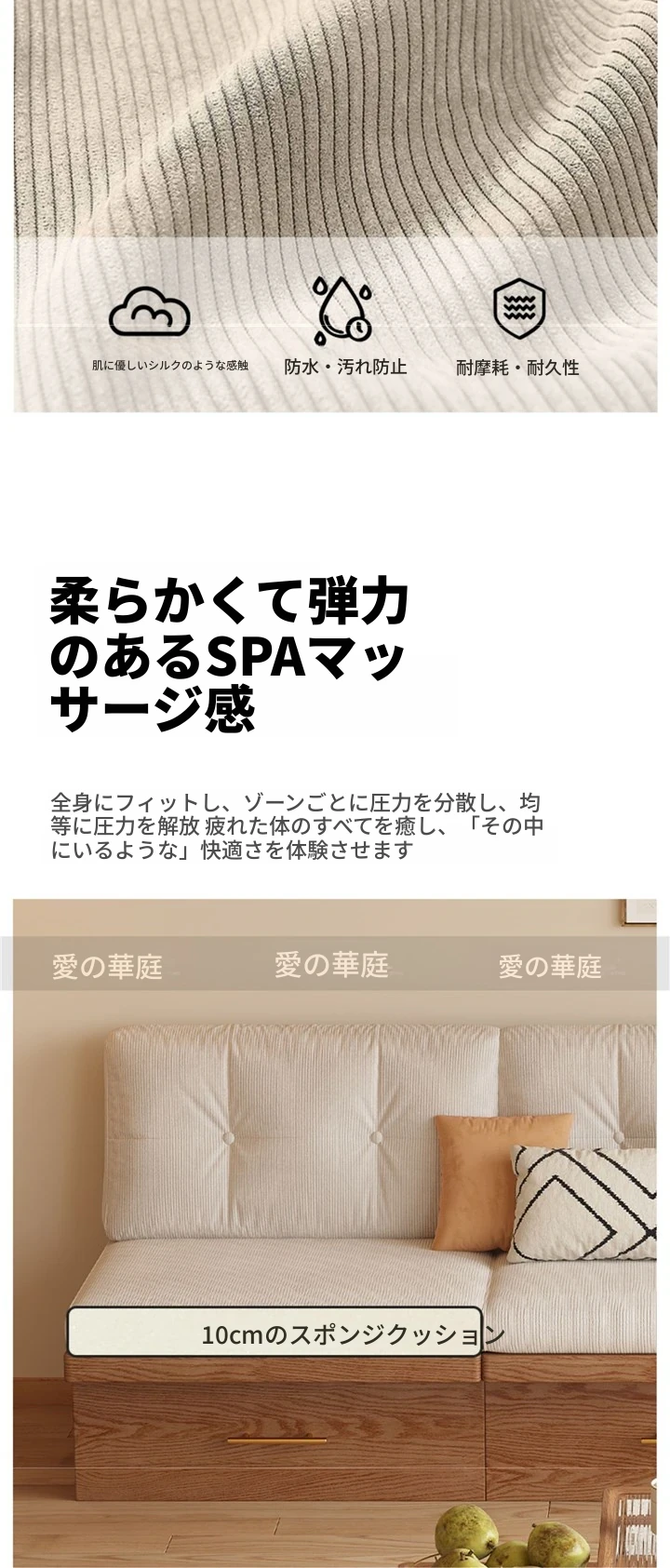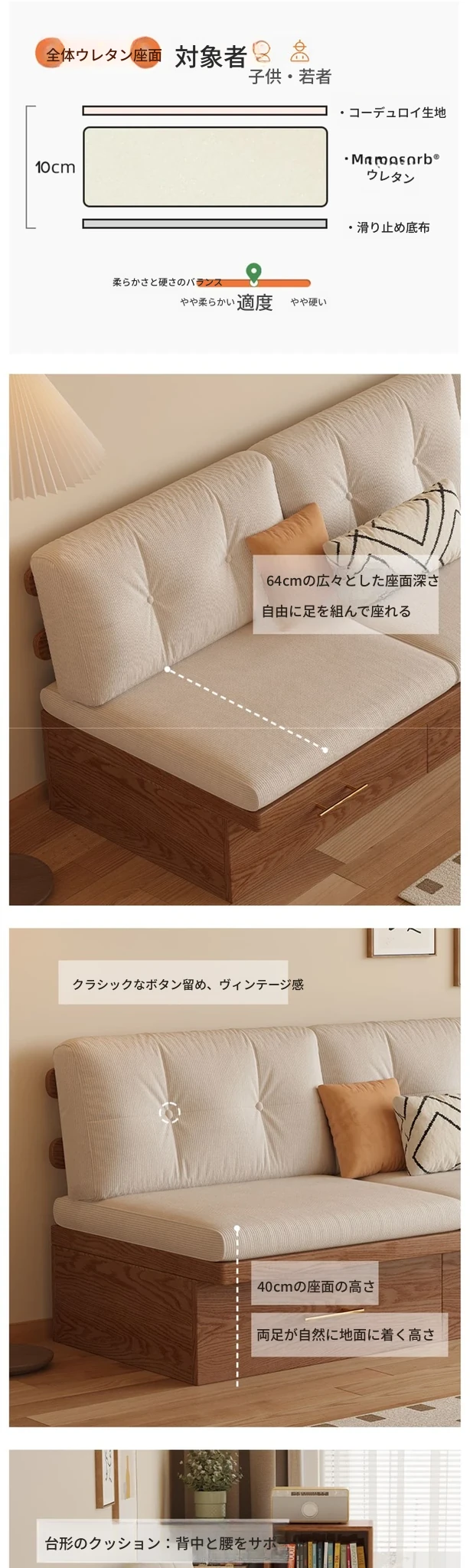 和風実木製ソファ|冬夏兼用|小スペース向け|引き出し収納付き|アームレスデザイン|フラットタイプ|スタイリッシュなリビング空間を演出!