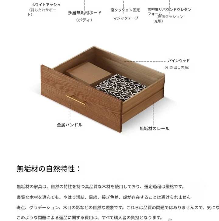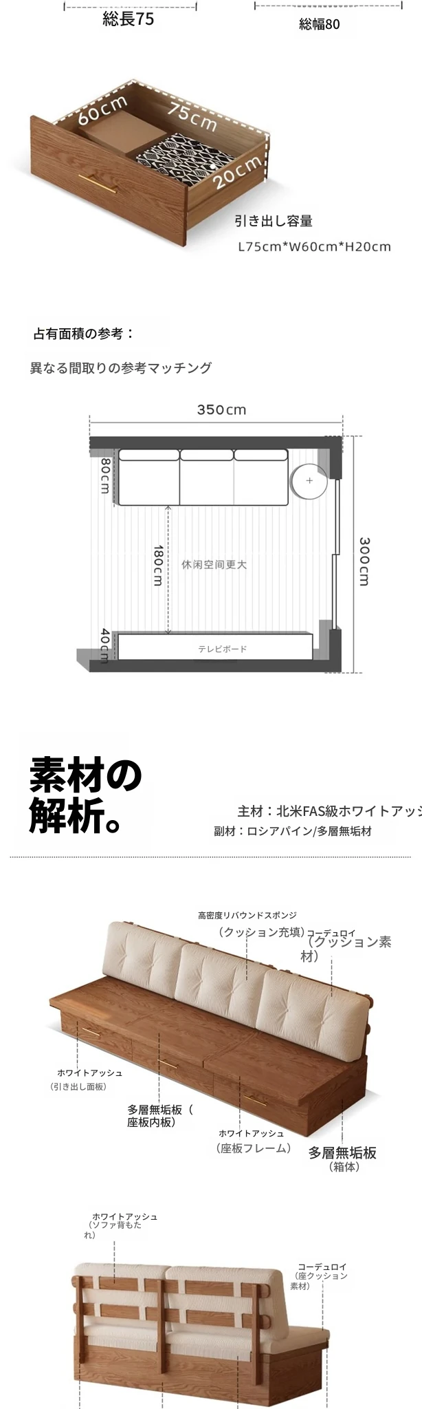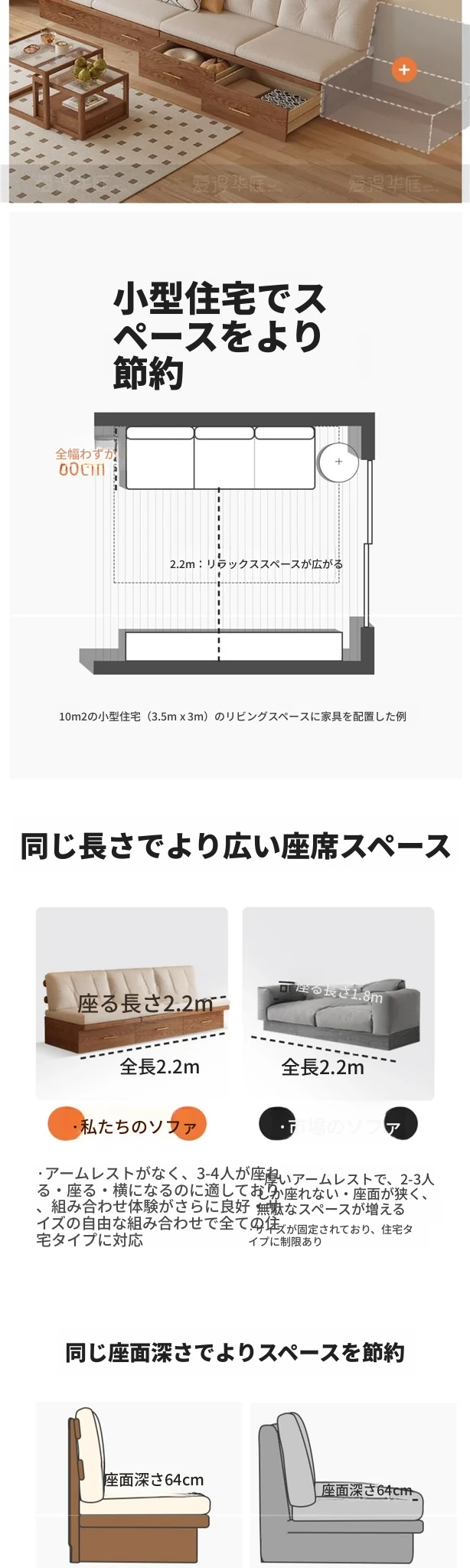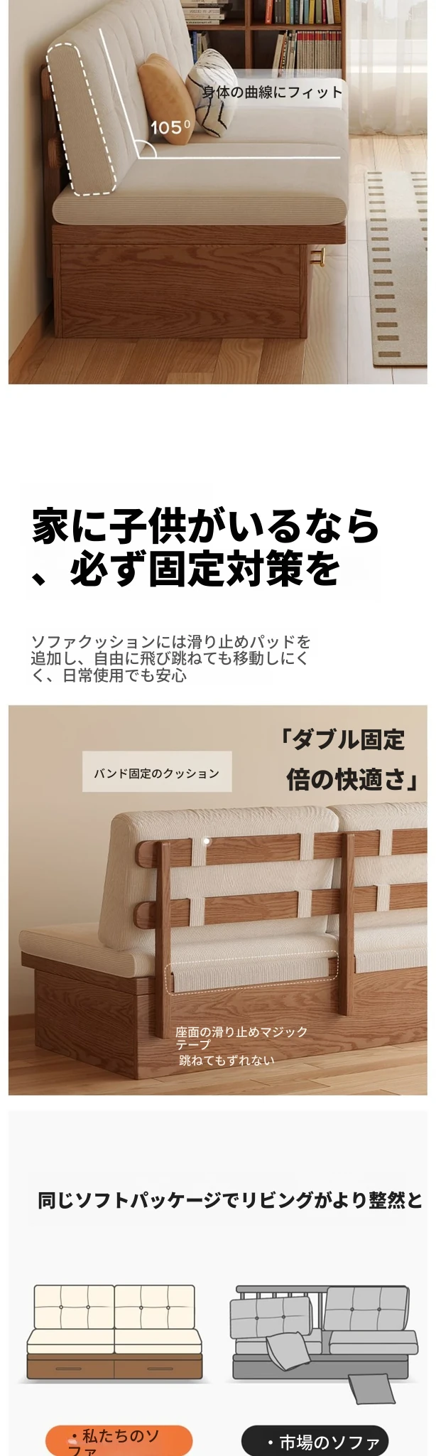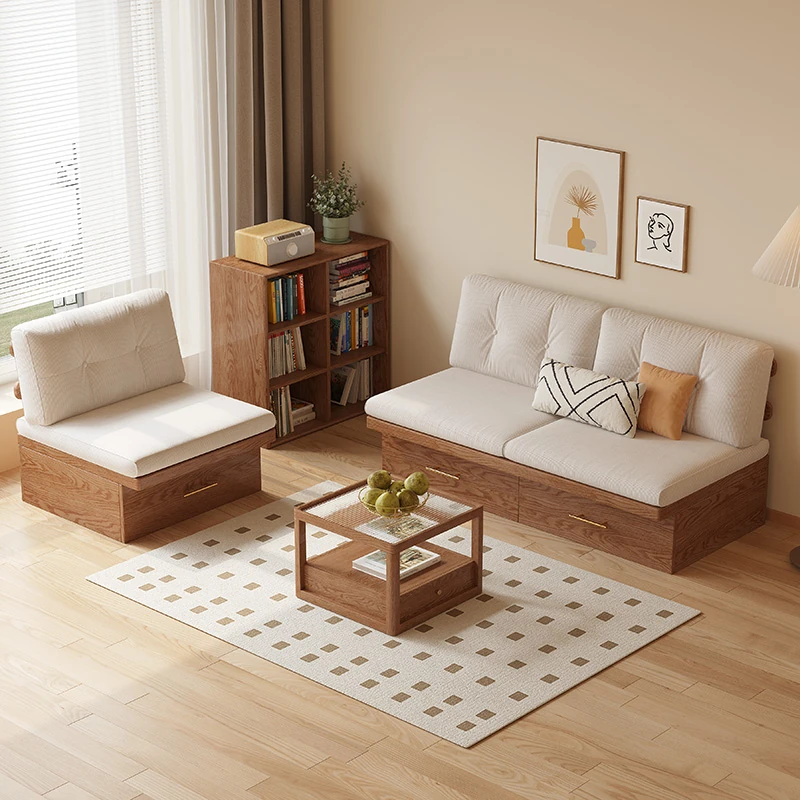 和風実木製ソファ|冬夏兼用|小スペース向け|引き出し収納付き|アームレスデザイン|フラットタイプ|スタイリッシュなリビング空間を演出!