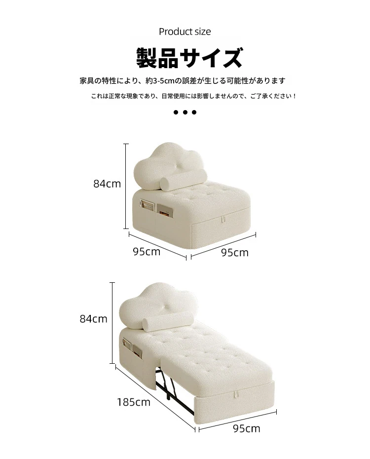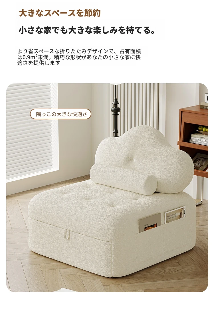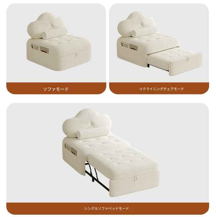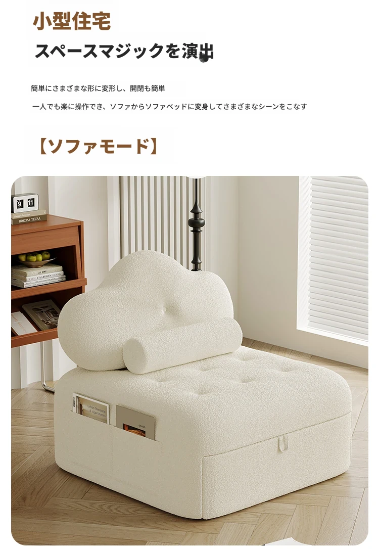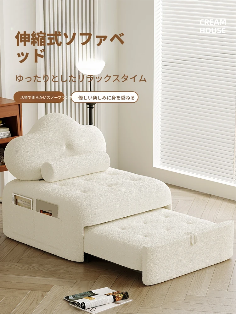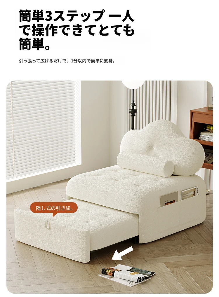 君得喜ソファベッド 折りたたみ式・伸縮可能 フランス風クリーム色 多機能リビング用 小型住宅向け 2023年新作!おしゃれで機能的なデザインで、狭いスペースを有効活用!お客様の快適な生活をサポートします!