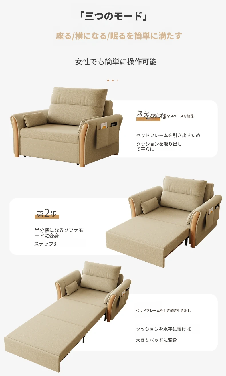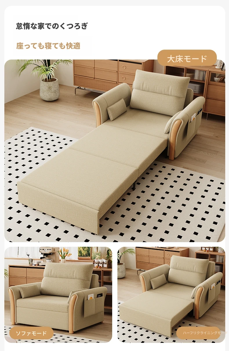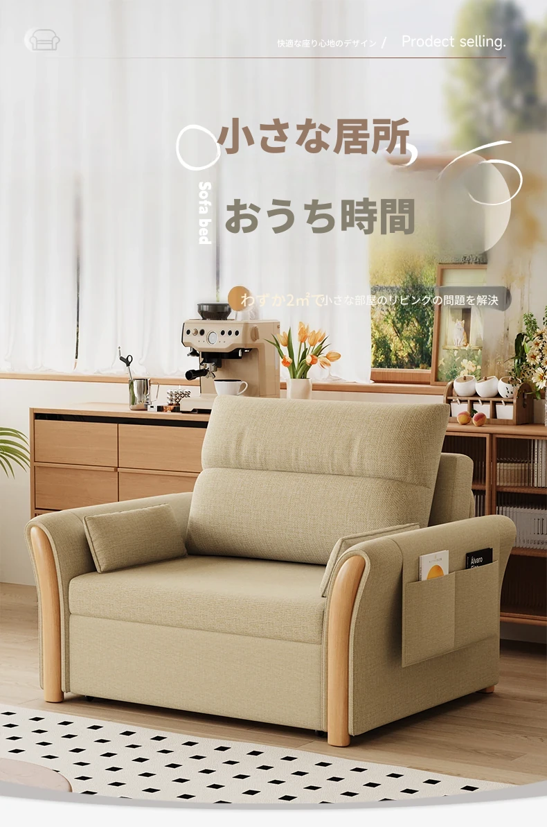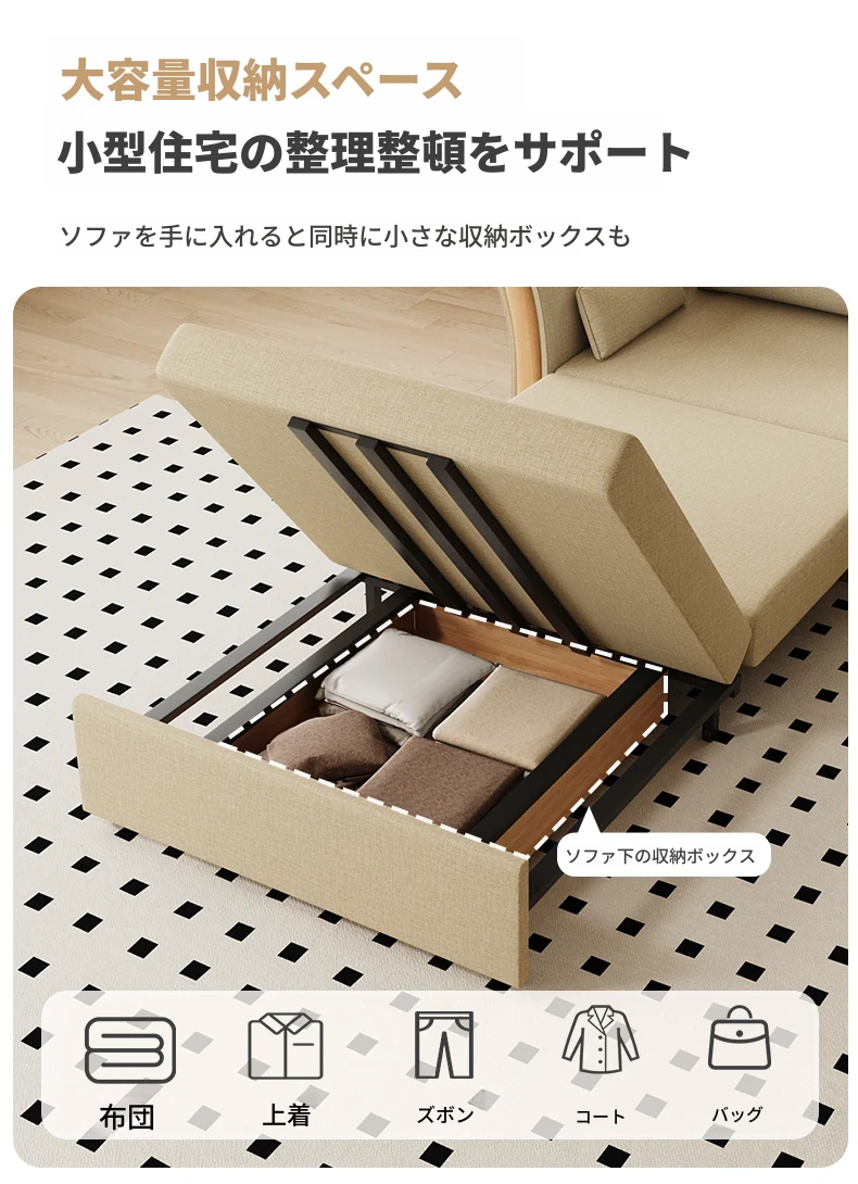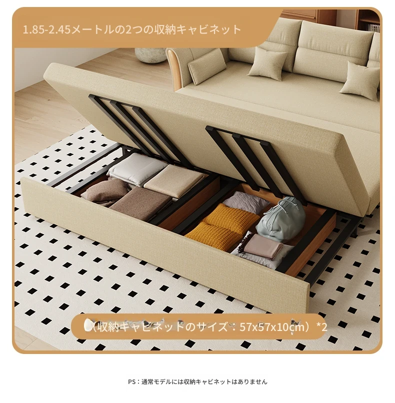 ケイライシン 折りたたみソファベッド クリームカラー 多機能収納付き コンパクトな小型住宅向け ラクラク引き出し式ソファベッドで、リラックス空間を実現!