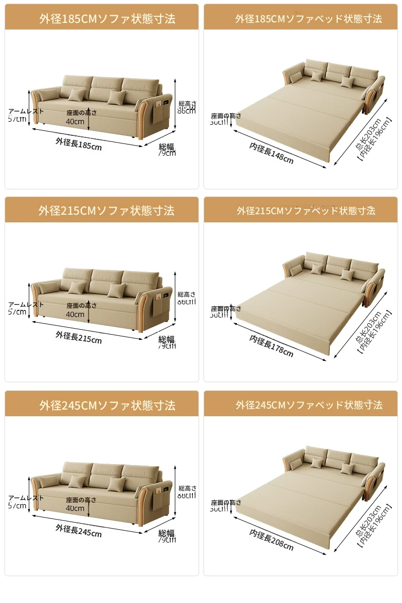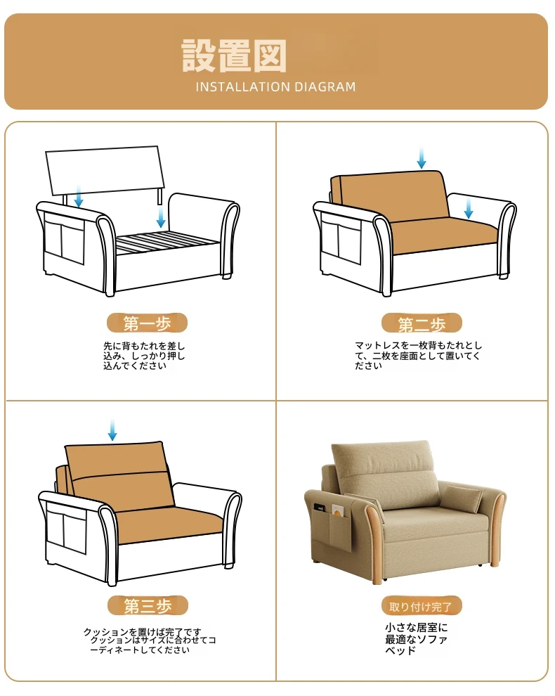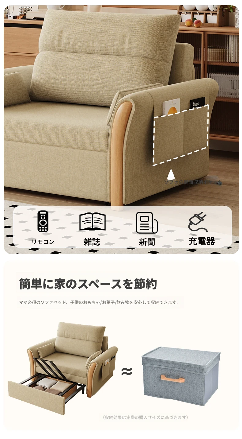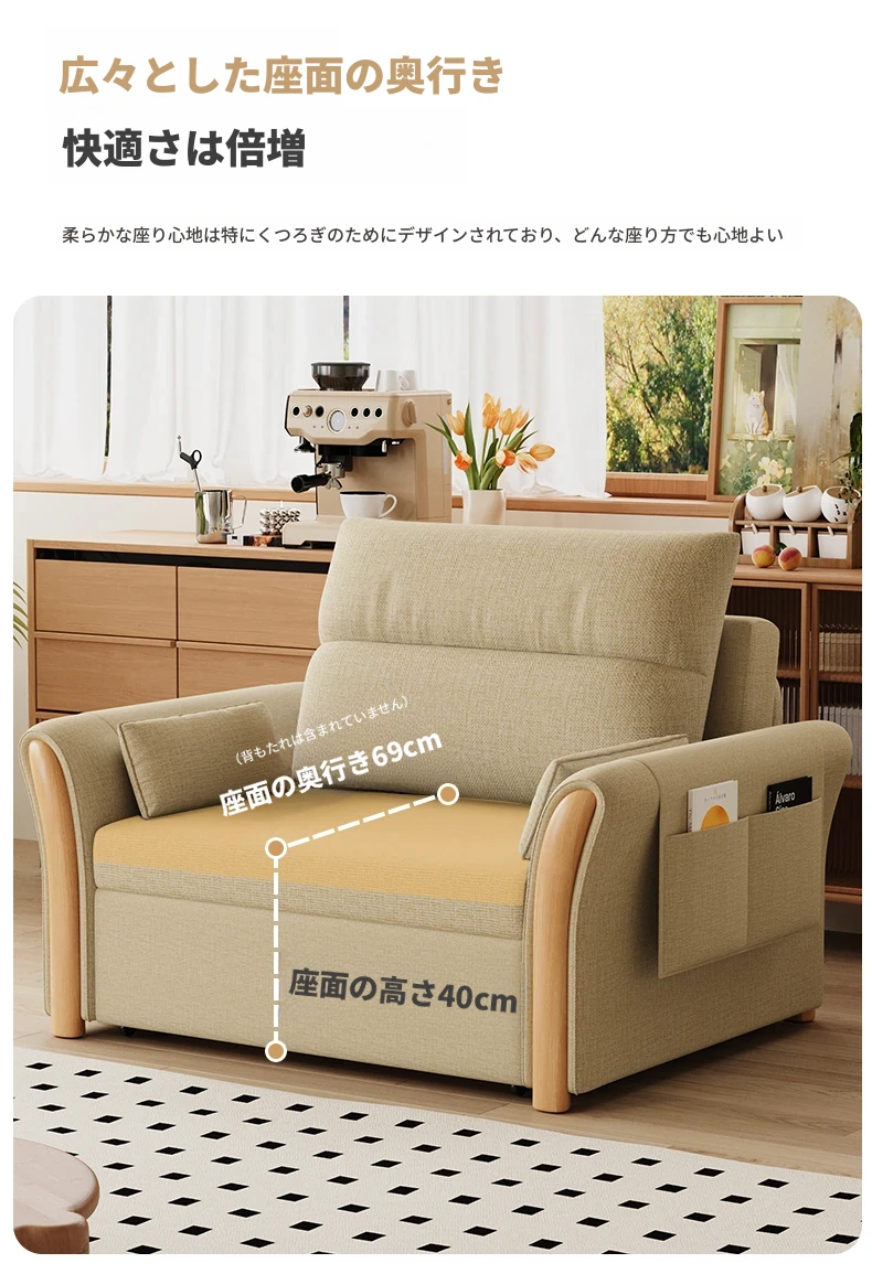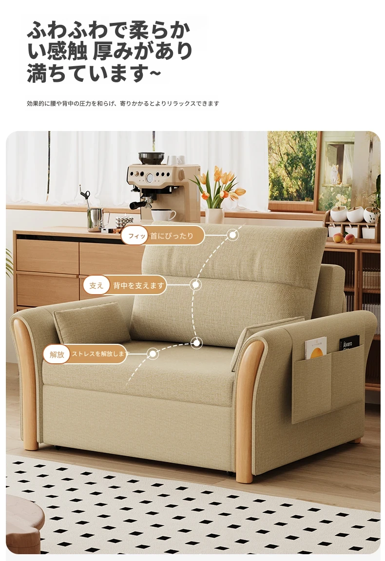 ケイライシン 折りたたみソファベッド クリームカラー 多機能収納付き コンパクトな小型住宅向け ラクラク引き出し式ソファベッドで、リラックス空間を実現!