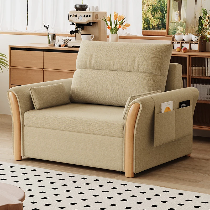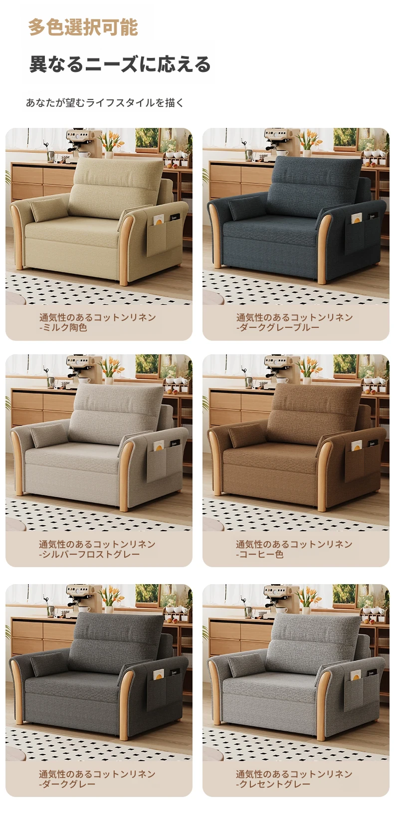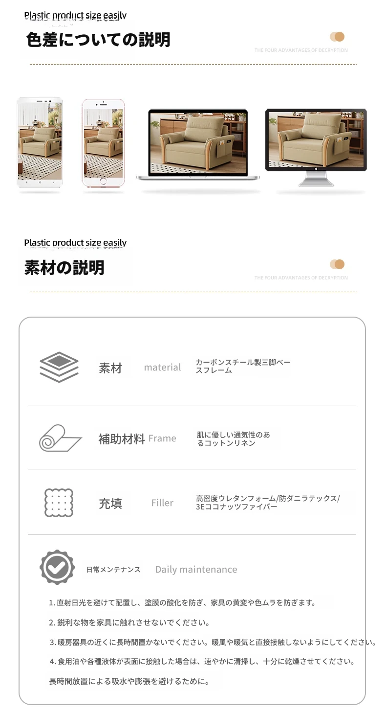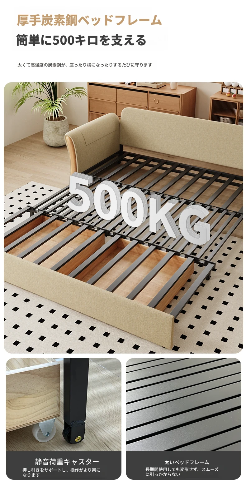ケイライシン 折りたたみソファベッド クリームカラー 多機能収納付き コンパクトな小型住宅向け ラクラク引き出し式ソファベッドで、リラックス空間を実現!