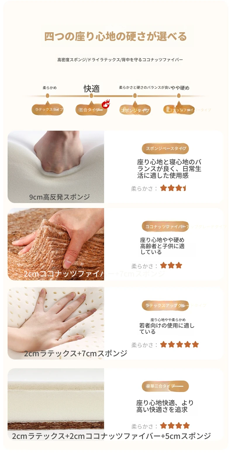 【スポンジ+ラテックス+ココナッツ】収納あり