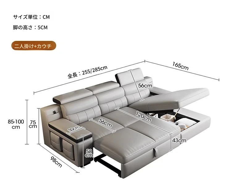 カイメイソン一級本革電動多機能リビング折りたたみ2WAYモダンミニマル小型ソファで、スタイリッシュな空間を演出!コンパクトながらも快適さを追求したデザインで、あなたのリビングを格上げします。